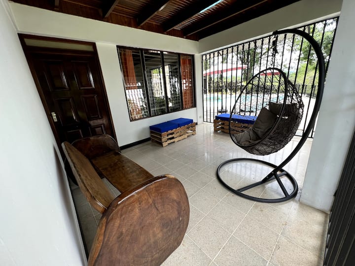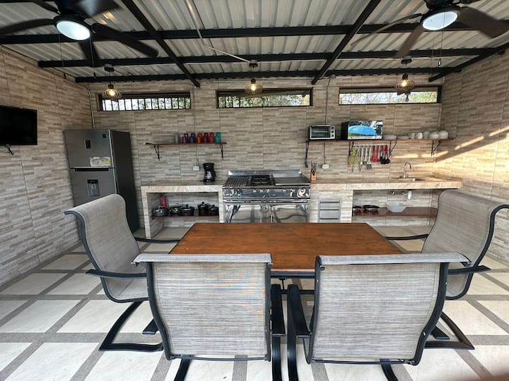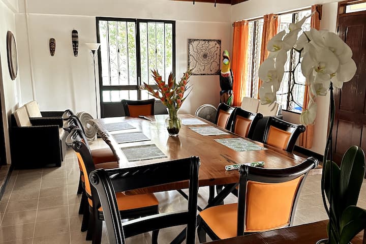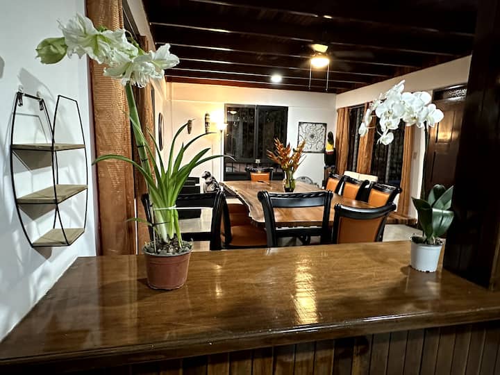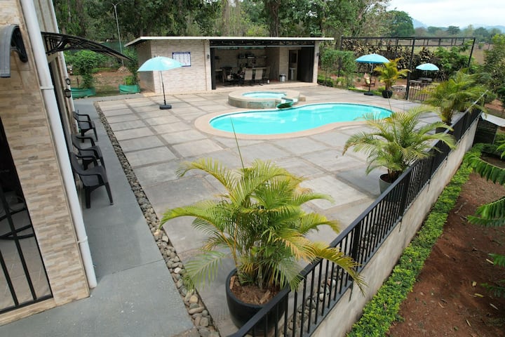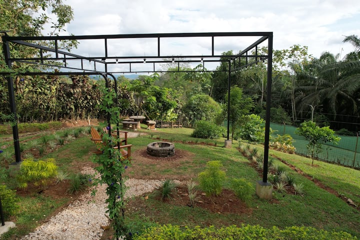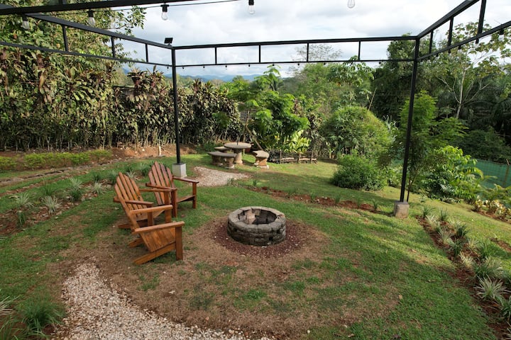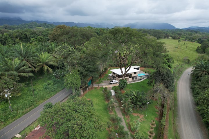 House for Sale in Quepos, Puntarenas Location: Located in a quiet and safe area of Quepos, close to beaches and Manuel Antonio National Park. The house has a hall, kitchen with wooden furniture, breakfast bar integrated into the large dining room, overlooking the gardens. Second floor: Master bedroom with private bathroom, closet, access to balcony with beautiful views, air conditioning. Three spacious secondary bedrooms with closet, air conditioning each, sharing a full bathroom. The bathrooms have modern finishes, offering privacy and comfort. Terrace, barbecue area and fire pit; ideal for enjoying social gatherings, celebrations or moments of tranquility, making the most of the tropical climate of Quepos. A true paradise for lovers of outdoor life! Large gardens, with fruit trees, tropical plants, ideal for relaxing and enjoying nature. Private pool and jacuzzi perfect for cooling off and enjoying the sun. Parking for 5 vehicles. Additionally, there is an apartment attached to the guest house, with its own separate entrance, with its own bathroom, bedroom and kitchen. Opportunity: This property is ideal for both permanent residences and vacation rental investments, given its proximity to tourist attractions.