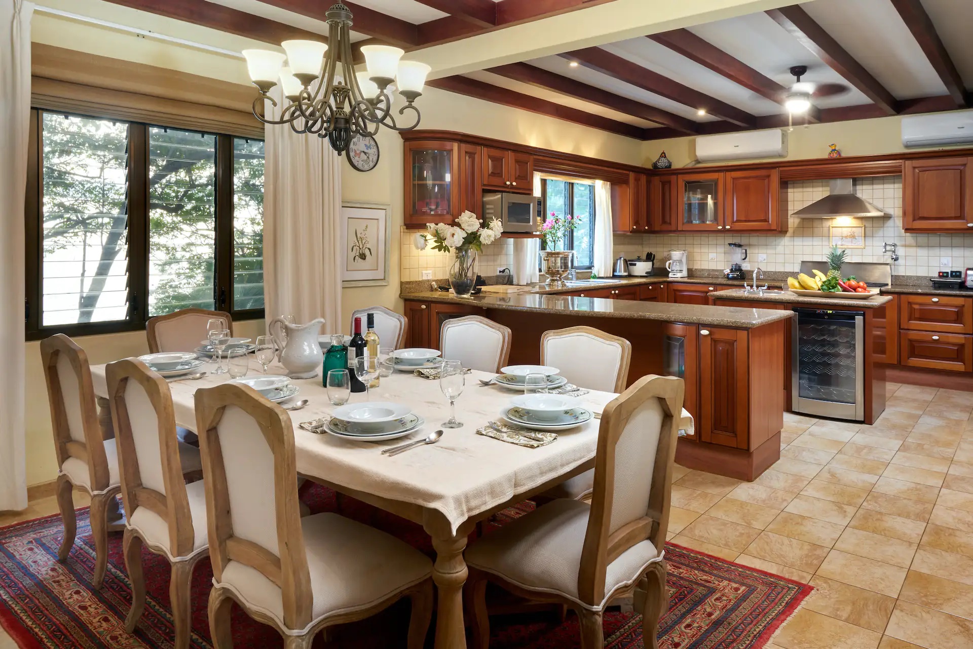 This home additionally features living quarters for on site staff and caretakers. Or if not needed the space can be converted to an attached apartment for additional guests.