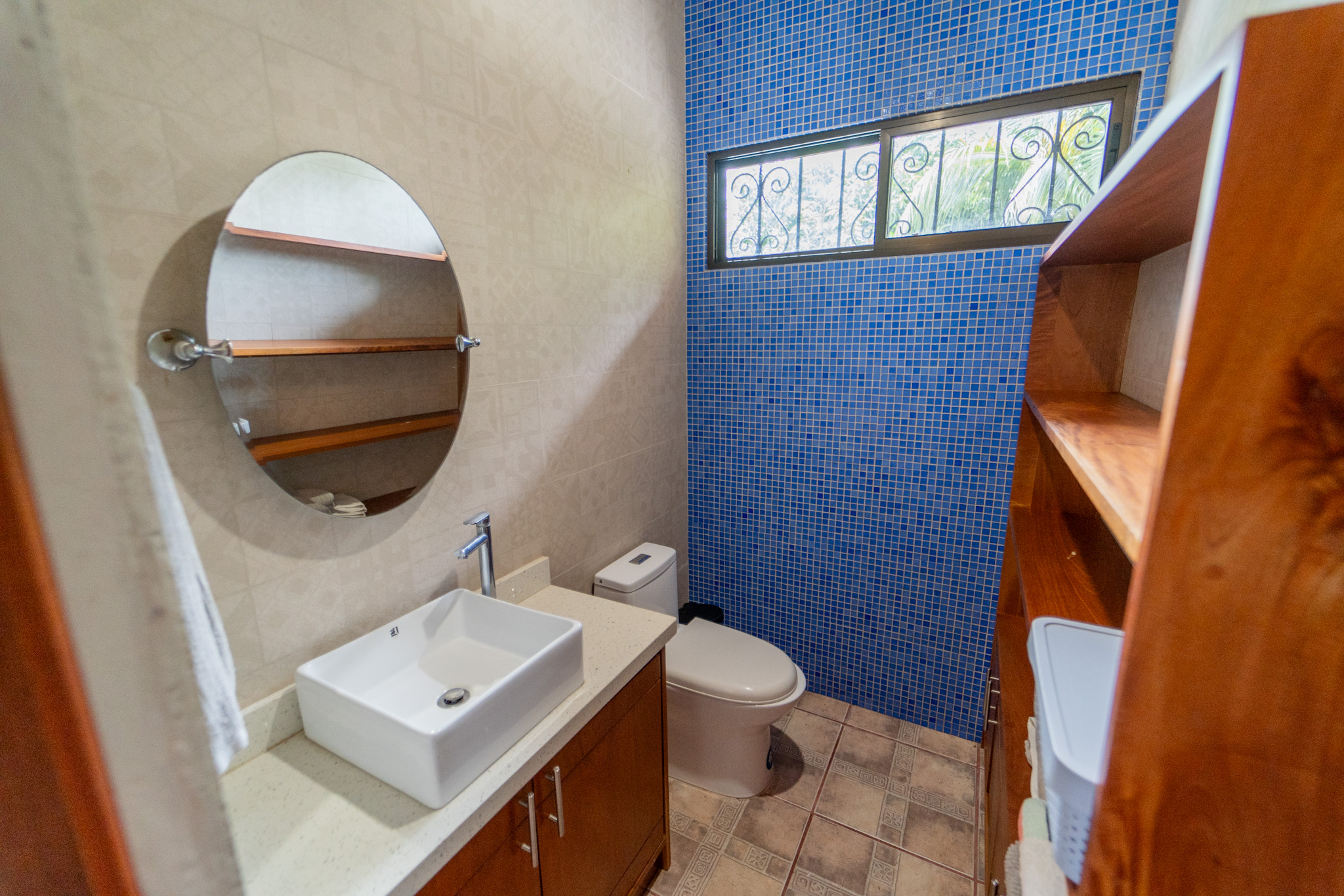 The two-story guest house offers endless possibilities—use it as a rental property for additional income, or as a private retreat for friends and family. The ground floor features a comfortable living room with an open kitchen and a full bathroom. A staircase leads to the second level, where you'll find 2 bedrooms and a bathroom accessible from both rooms.