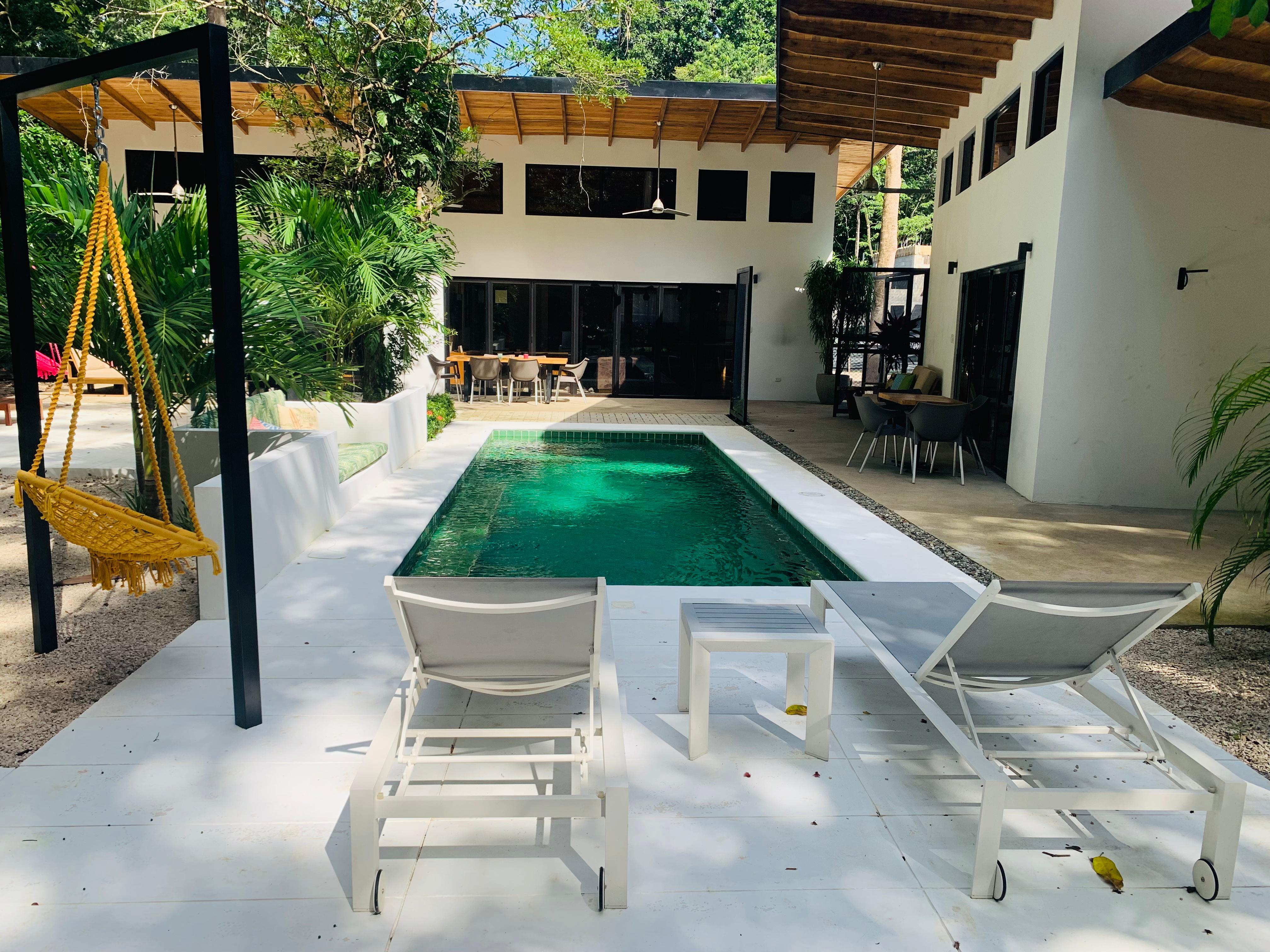 Step into a world where modern comfort blends effortlessly with wild tropical beauty. This property is a masterclass in laid-back luxury—high ceilings, airy living spaces, and walls of glass that dissolve the line between home and jungle.