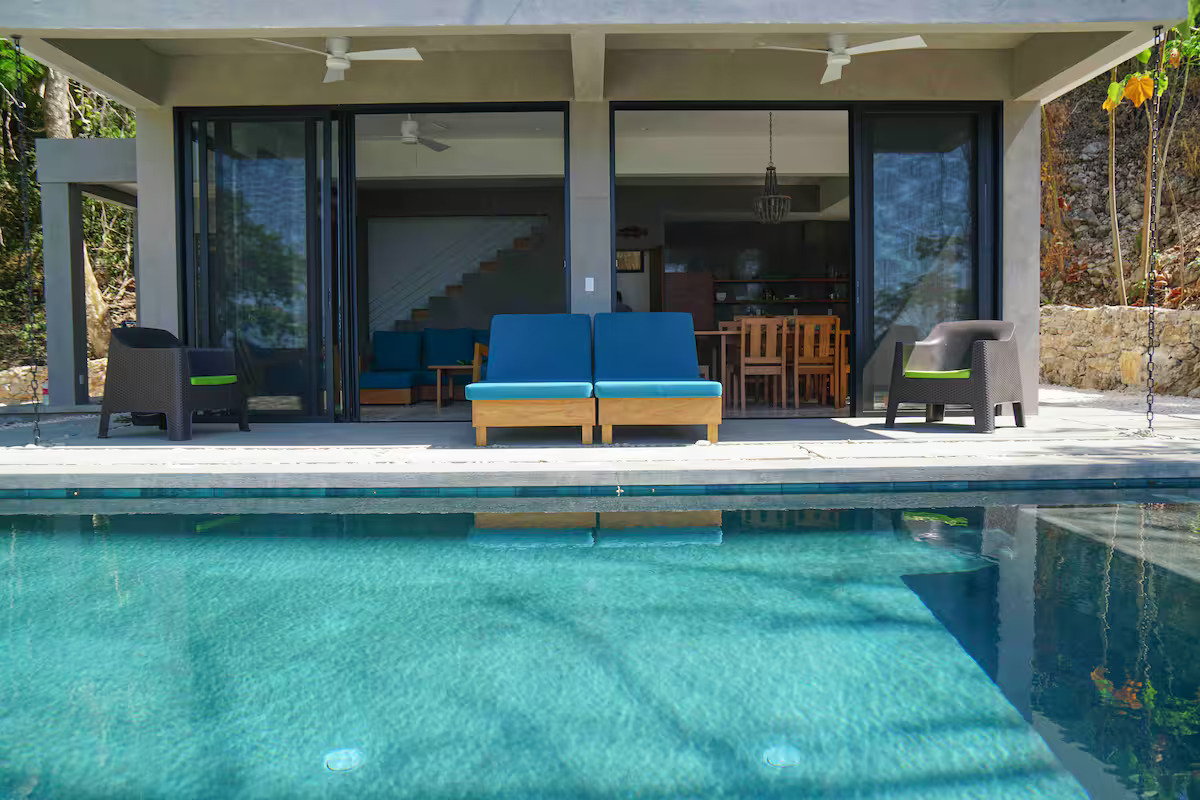 This stunning two-bedroom, two-bathroom ocean-view home in Santa Teresa offers the perfect blend of comfort, privacy, and potential. Nestled in a peaceful setting, the property feels secluded yet is just minutes from town and the beach—giving you the best of both worlds. It features two spacious bedrooms with king-size beds and en suite bathrooms, along with an open-concept kitchen and living area that flows seamlessly out to a beautiful pool and outdoor lounge space. The home is perfectly suited for full-time living or use as a vacation rental. It’s already generating consistent income on Airbnb, giving you the opportunity to start earning from day one.