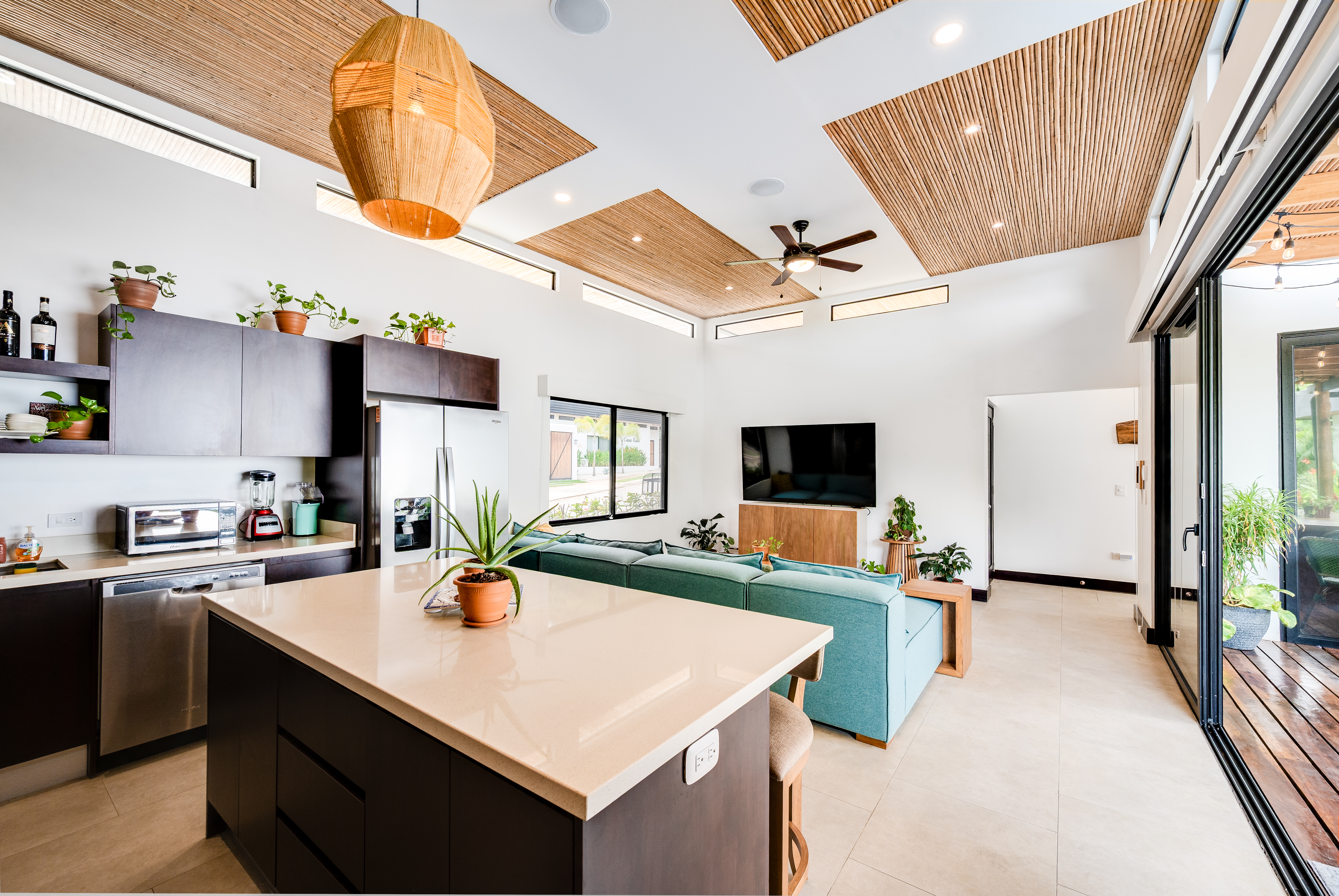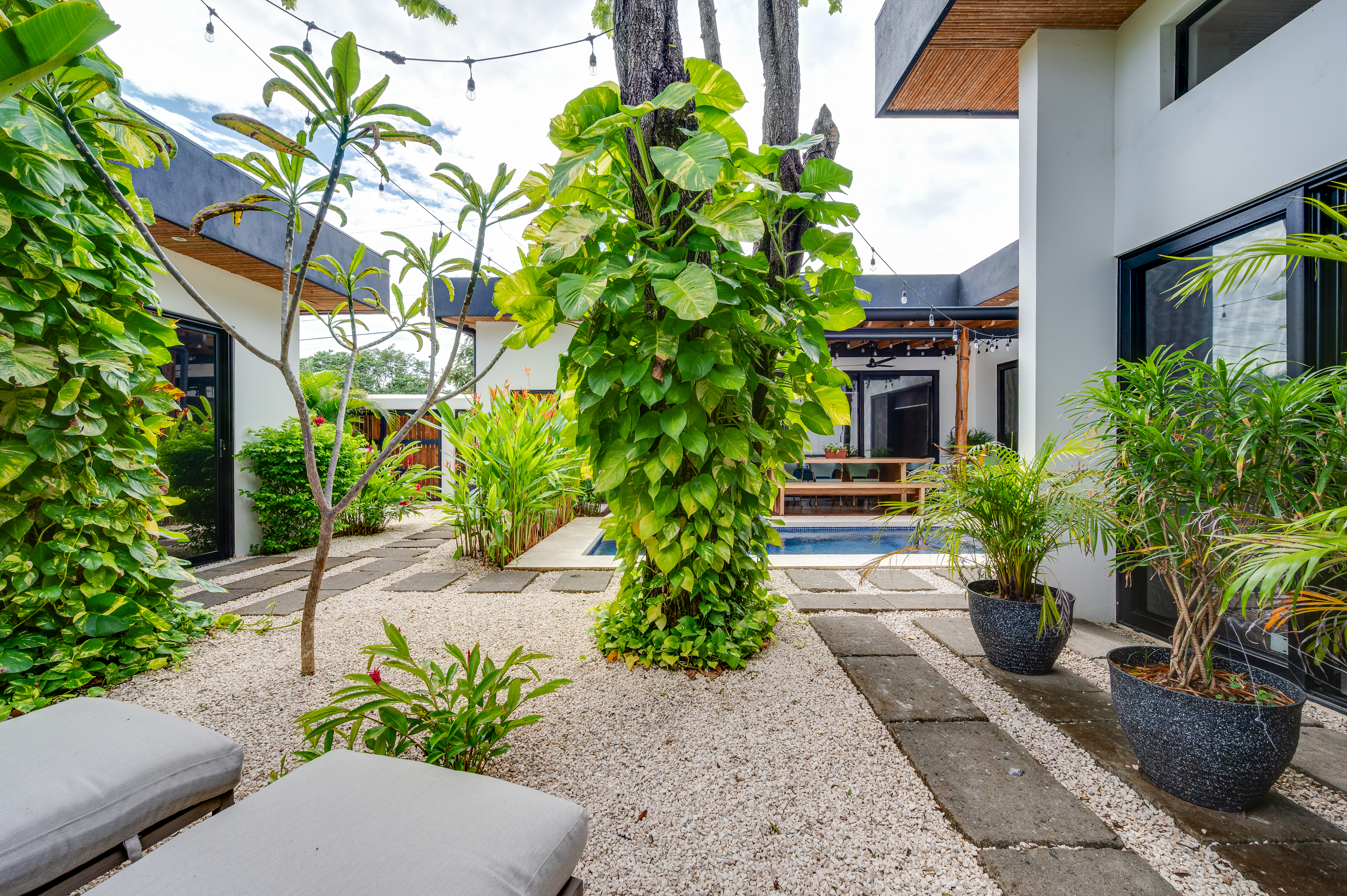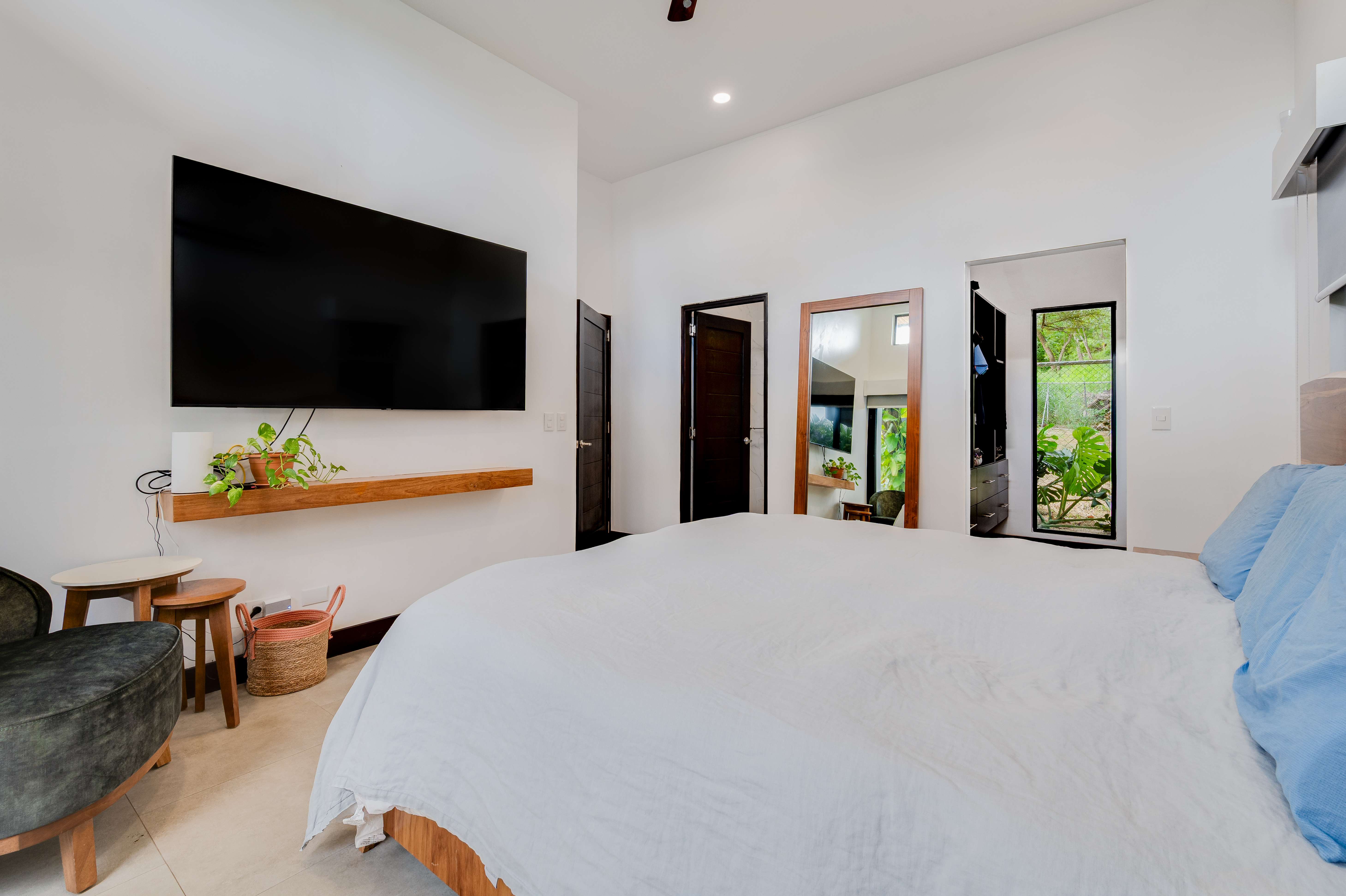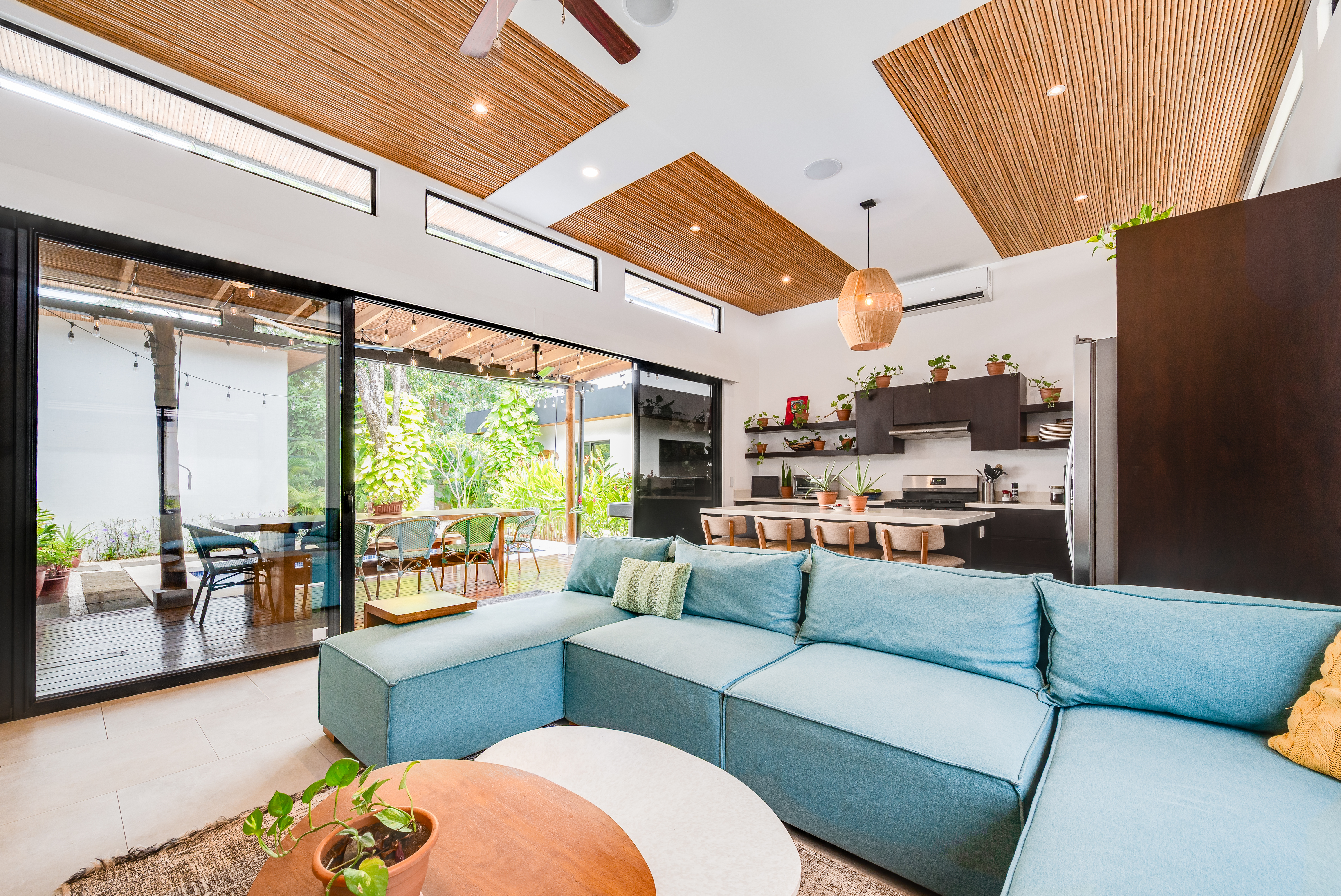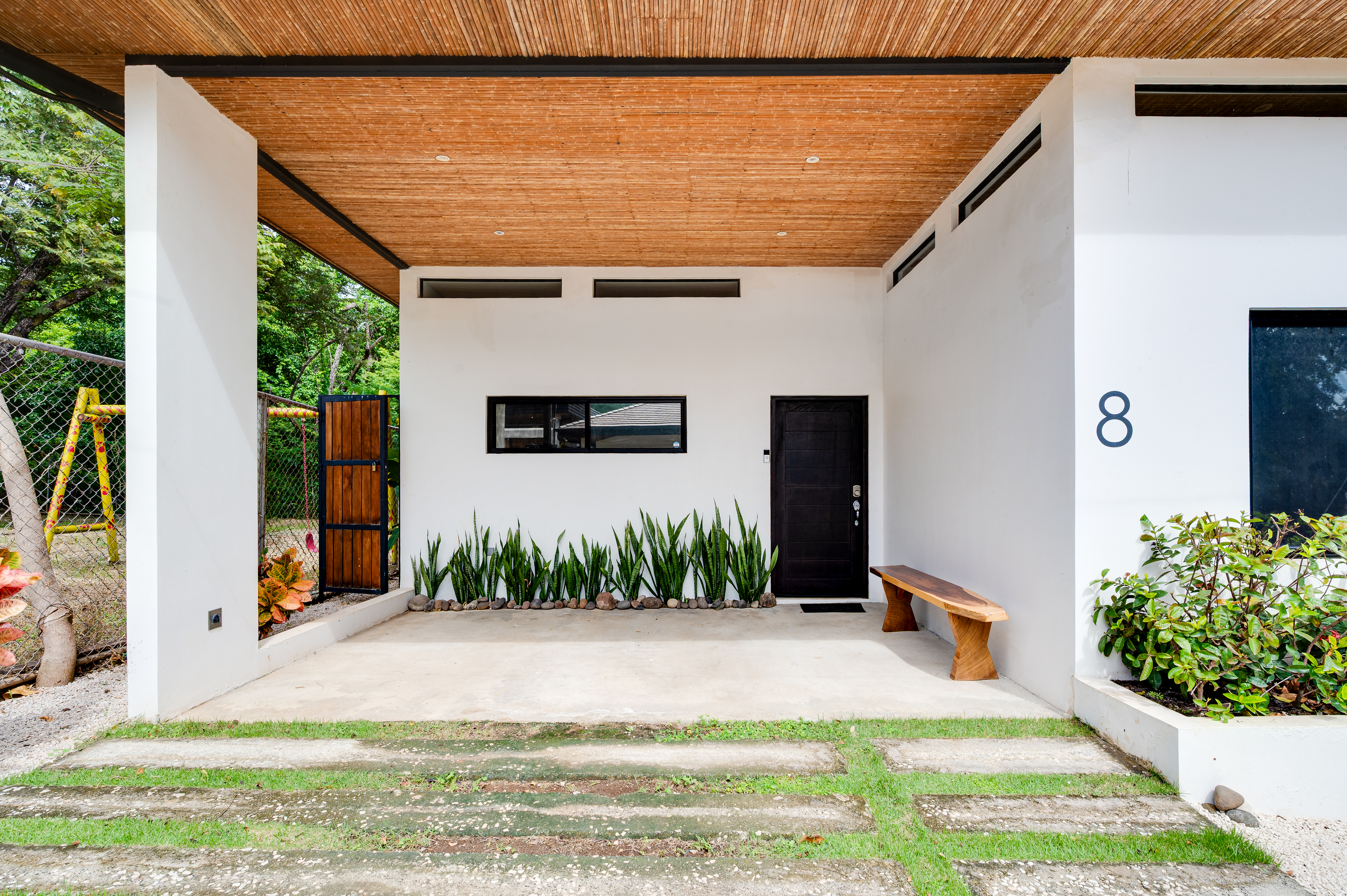 This 3 year old home has been impeccably maintained and never rented out. The distribution is great, around a swimming pool with lush vegetation, and looking out over mature trees. The teak deck has been recently treated and is in great condition. The location is perfect- just far enough out from Tamarindo to be peaceful and surrounded by nature. But not forgetting that just a short car ride (or golf cart ride!) away are the beautiful sandy beaches of Tamarindo, and all the restaurants and shops. Owner financing available.
