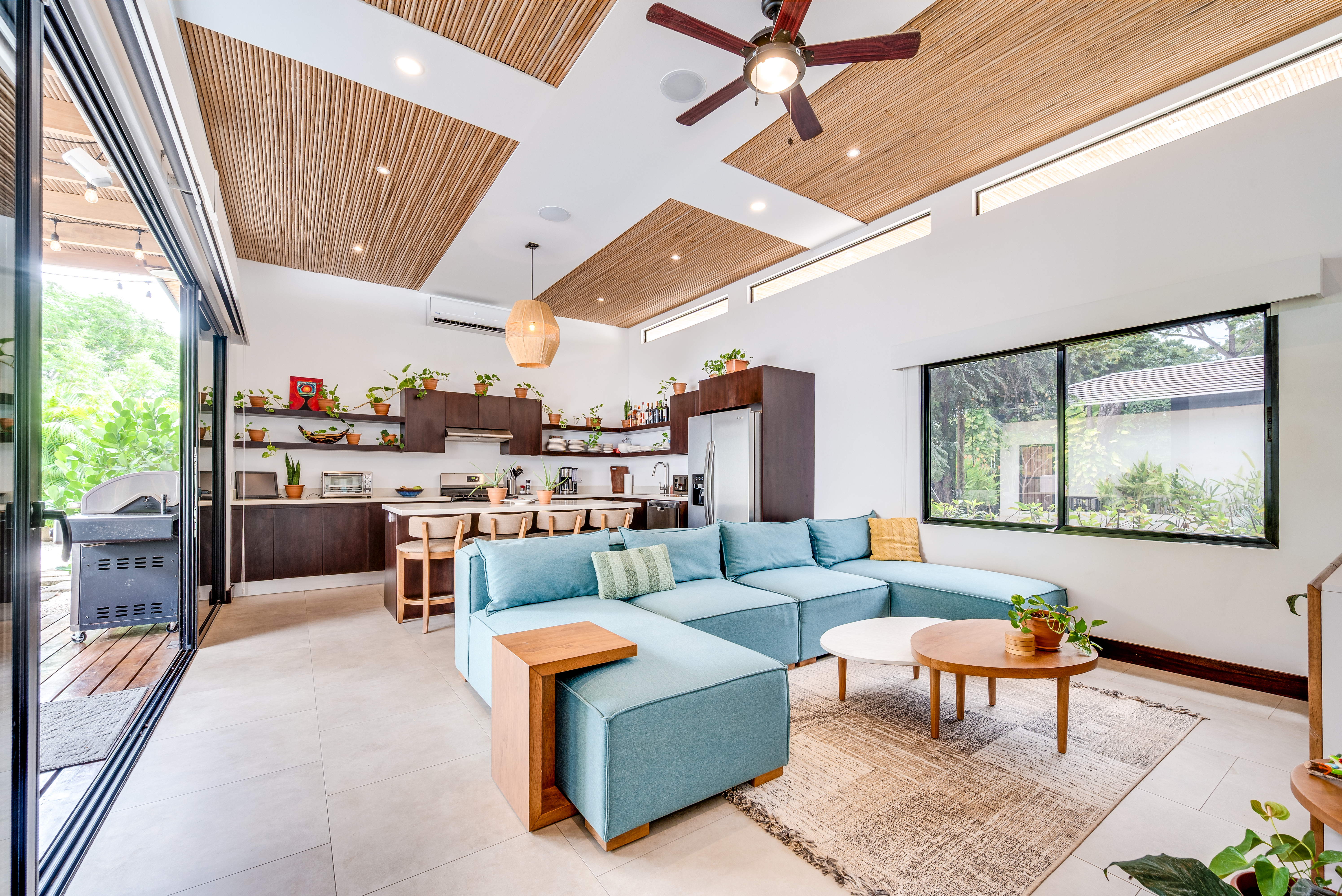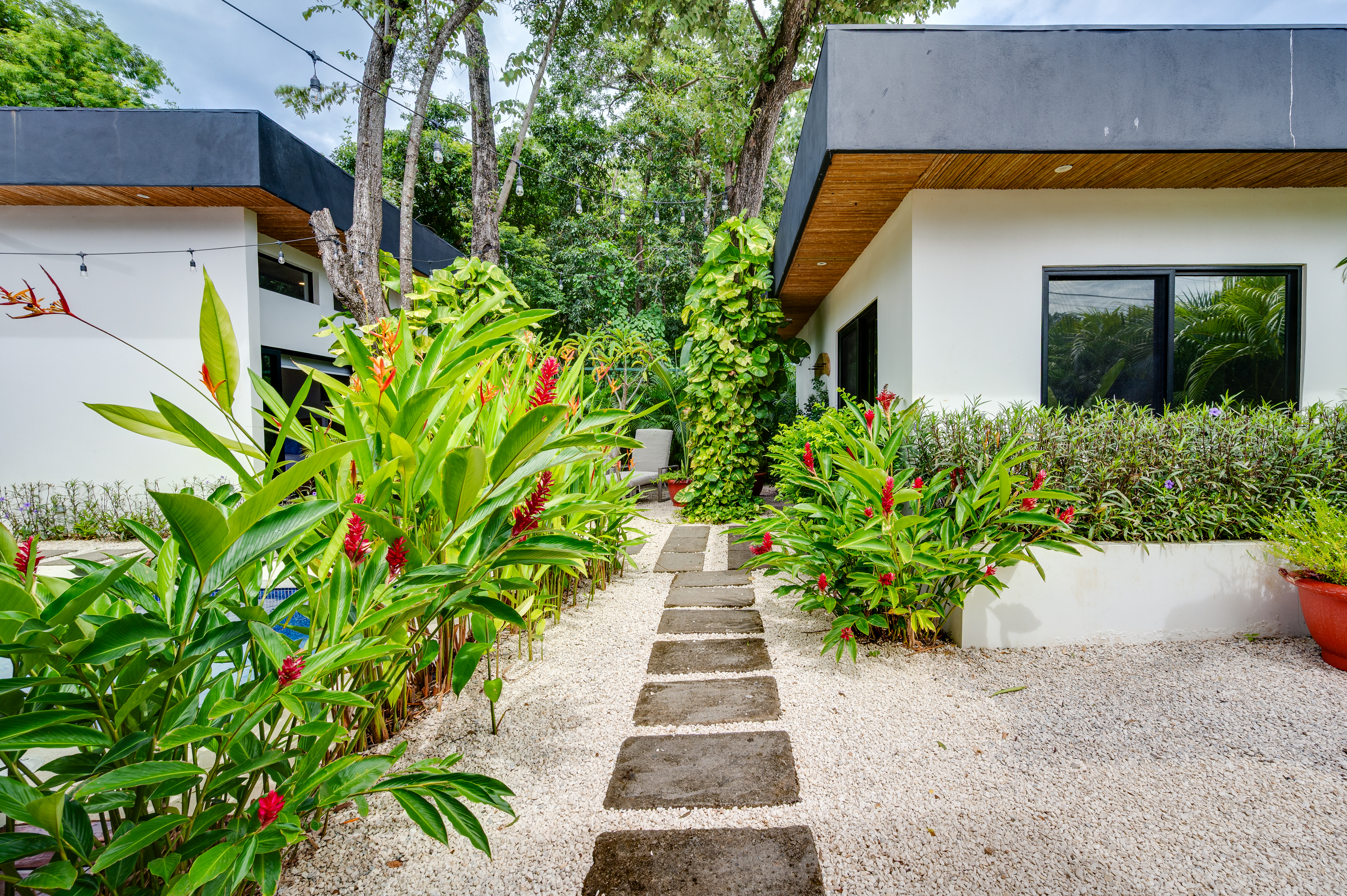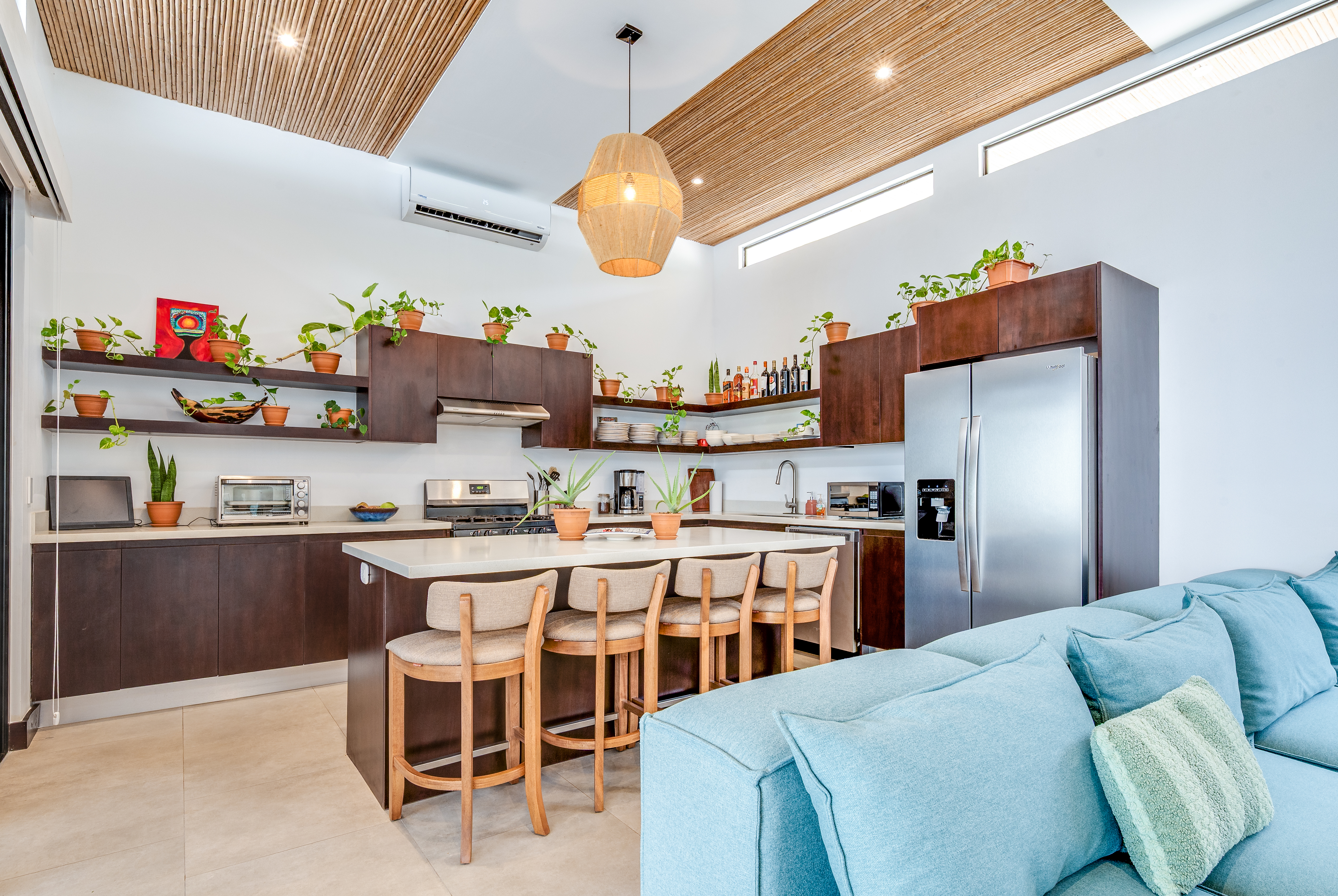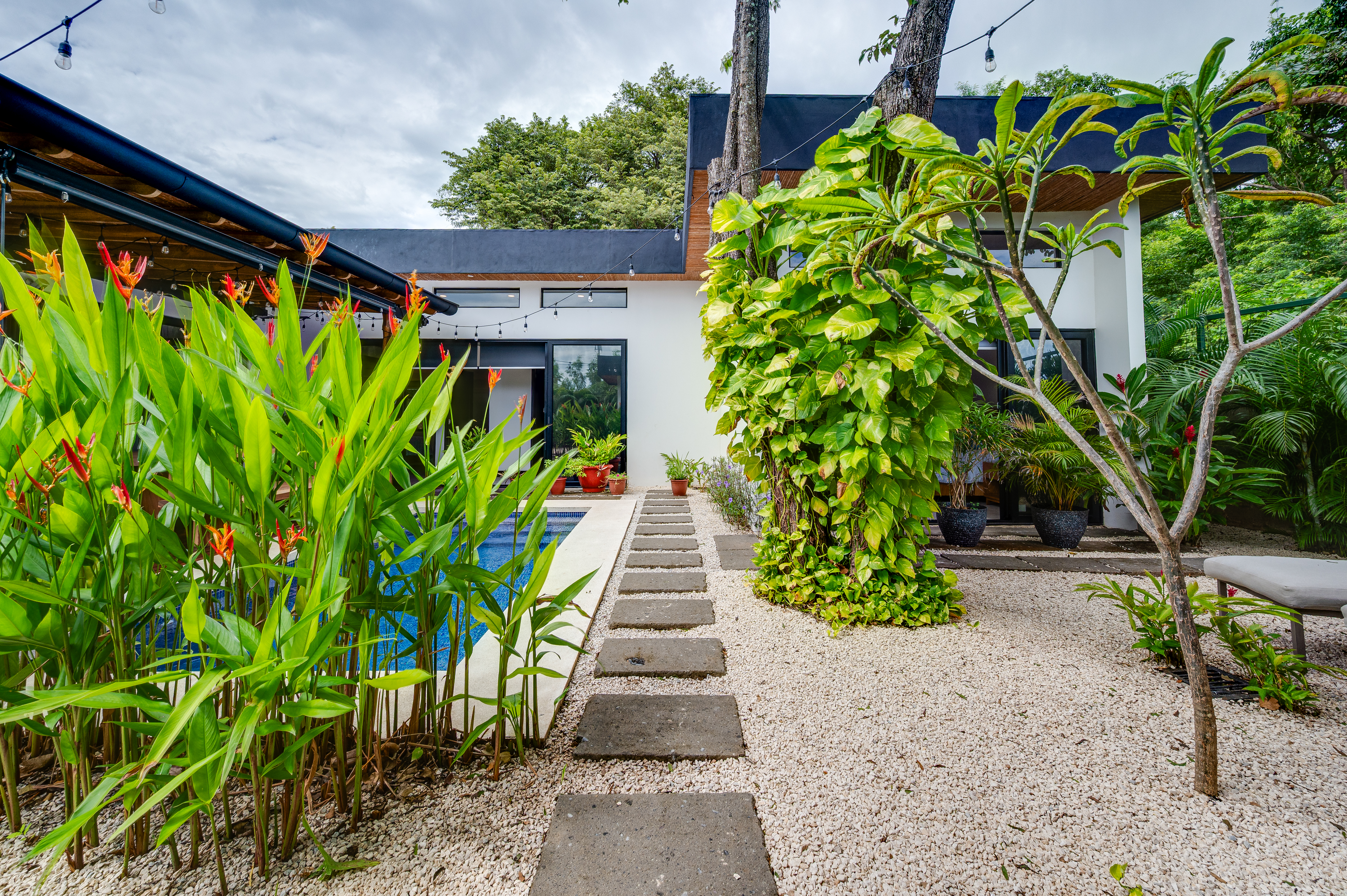 This 3 year old home has been impeccably maintained and never rented out. The distribution is great, around a swimming pool with lush vegetation, and looking out over mature trees. The teak deck has been recently treated and is in great condition. The location is perfect- just far enough out from Tamarindo to be peaceful and surrounded by nature. But not forgetting that just a short car ride (or golf cart ride!) away are the beautiful sandy beaches of Tamarindo, and all the restaurants and shops. Owner financing available.