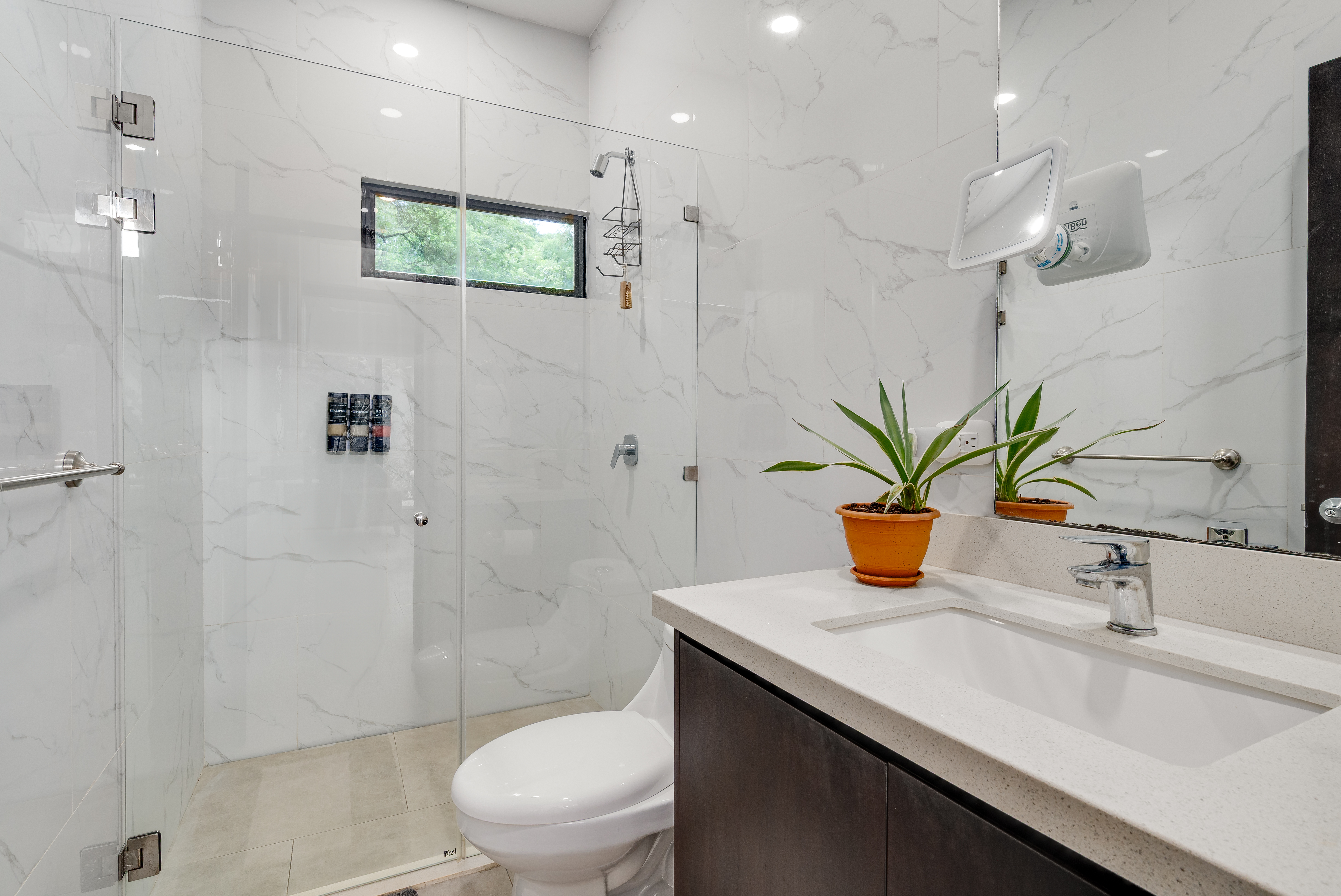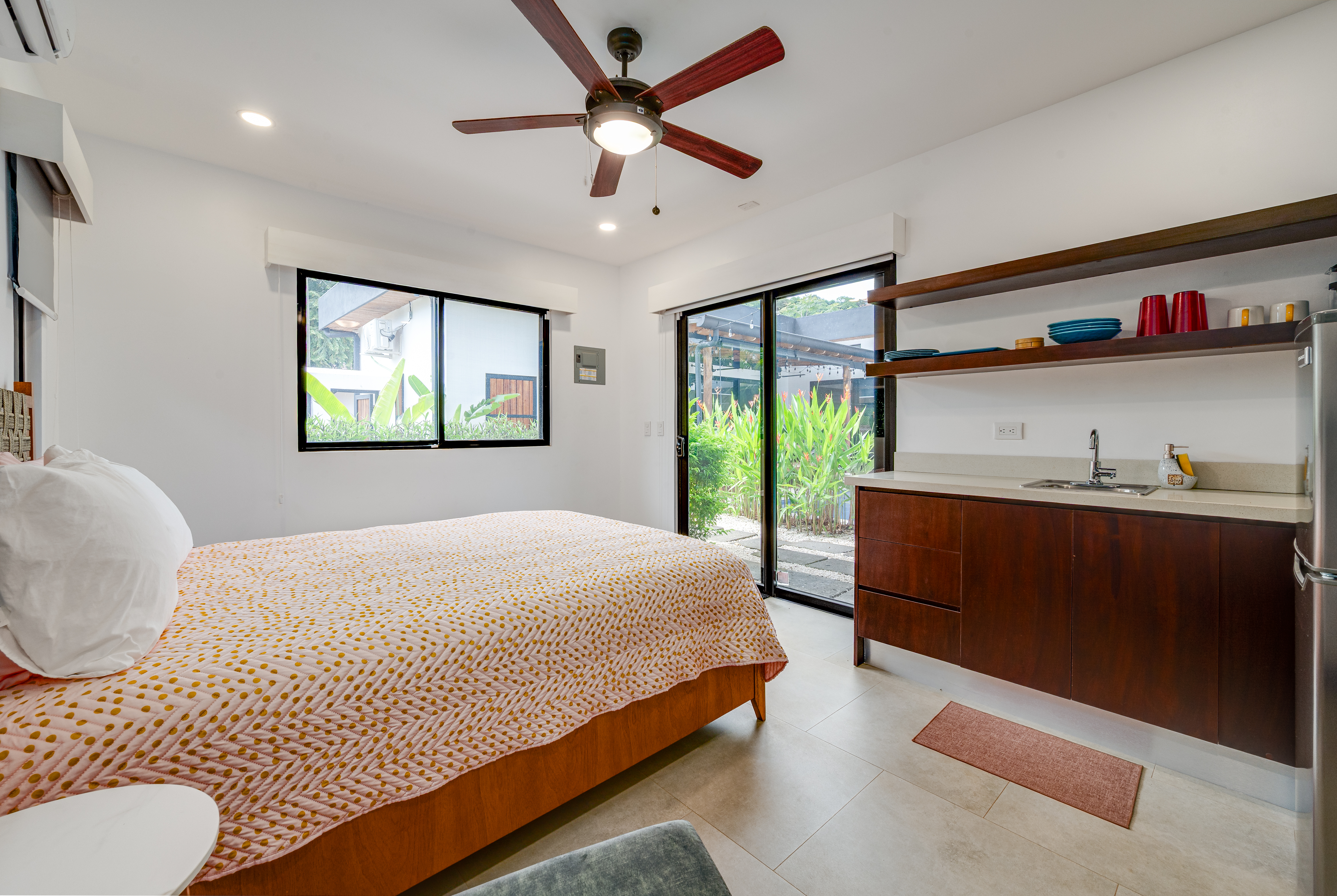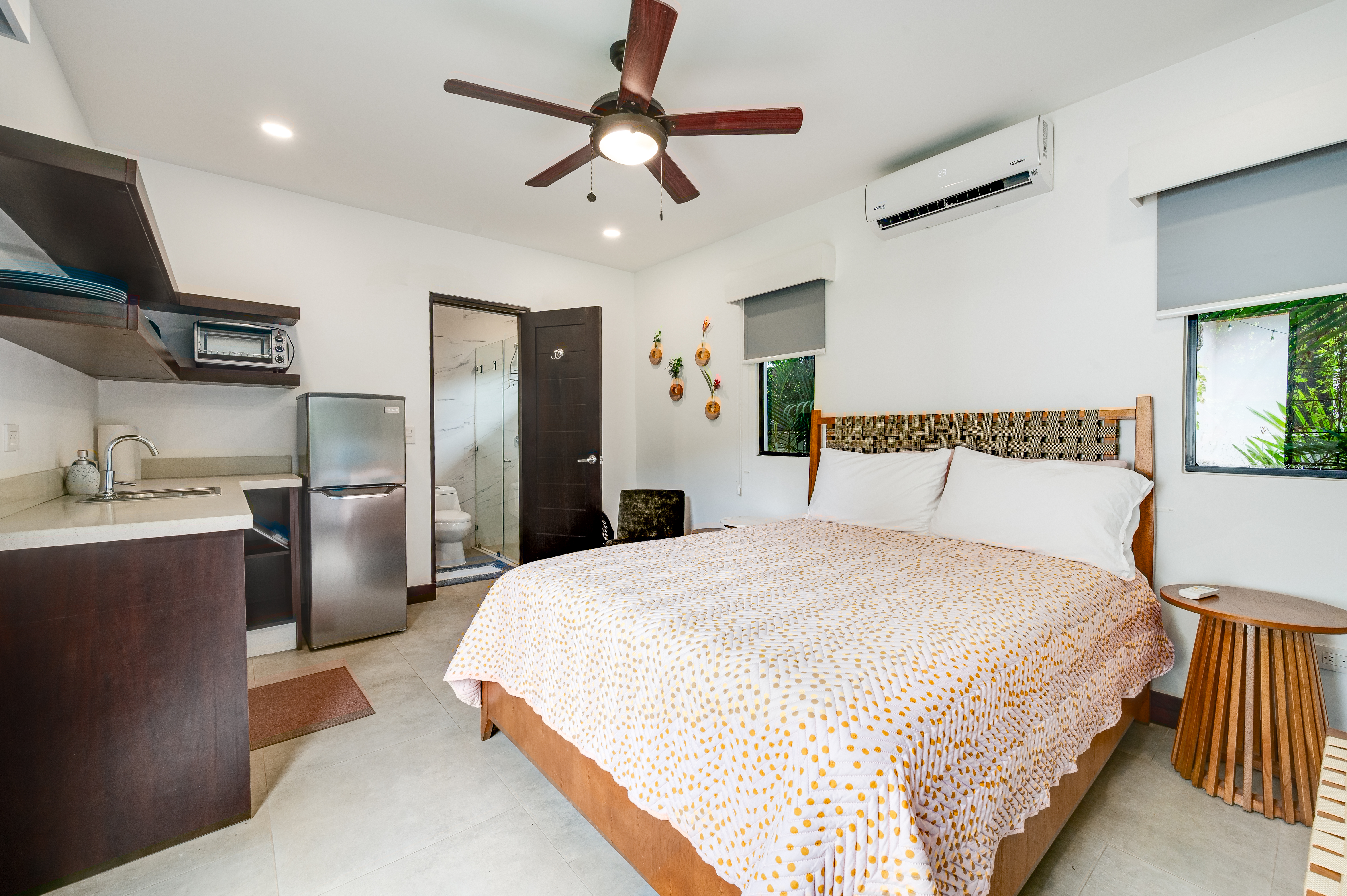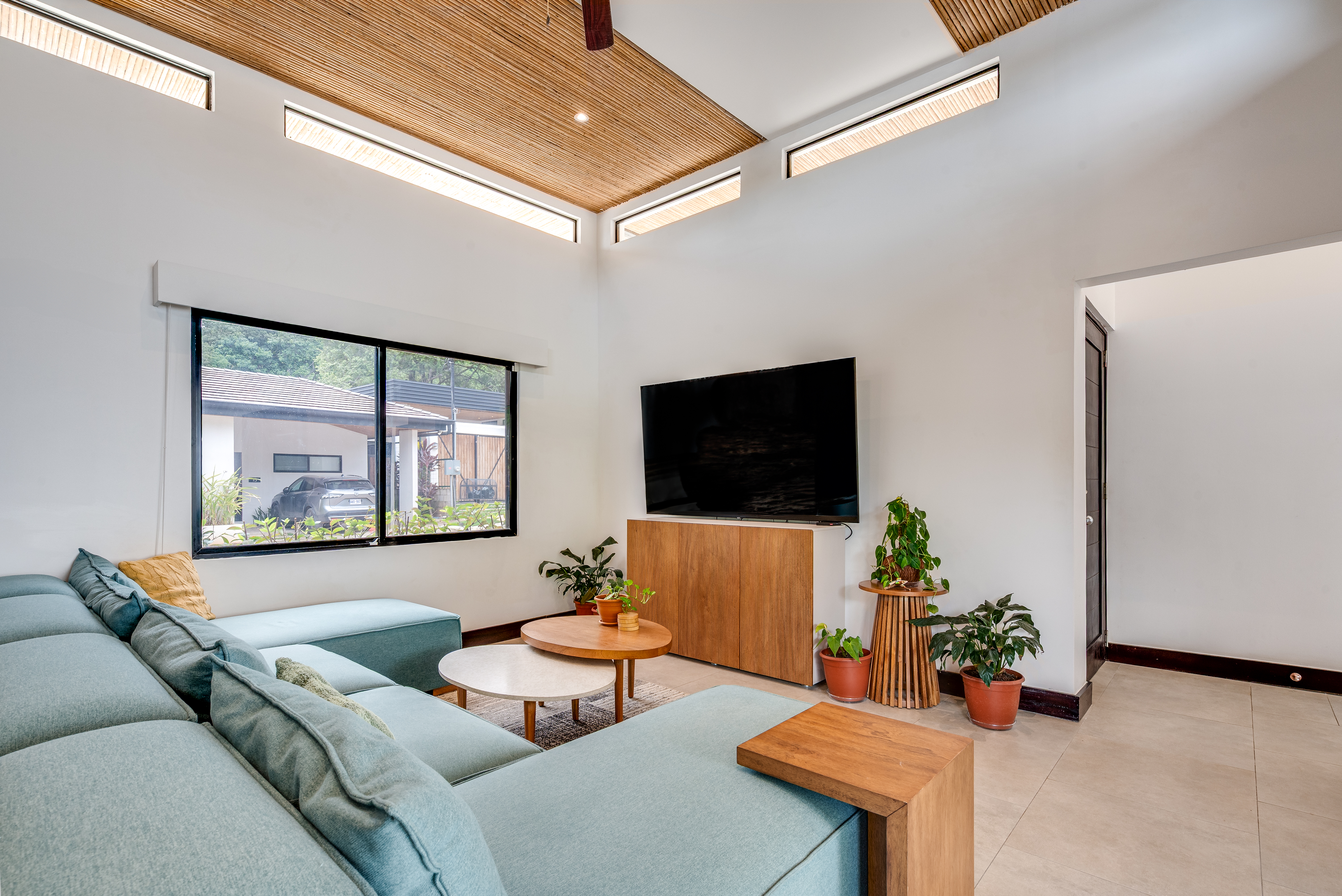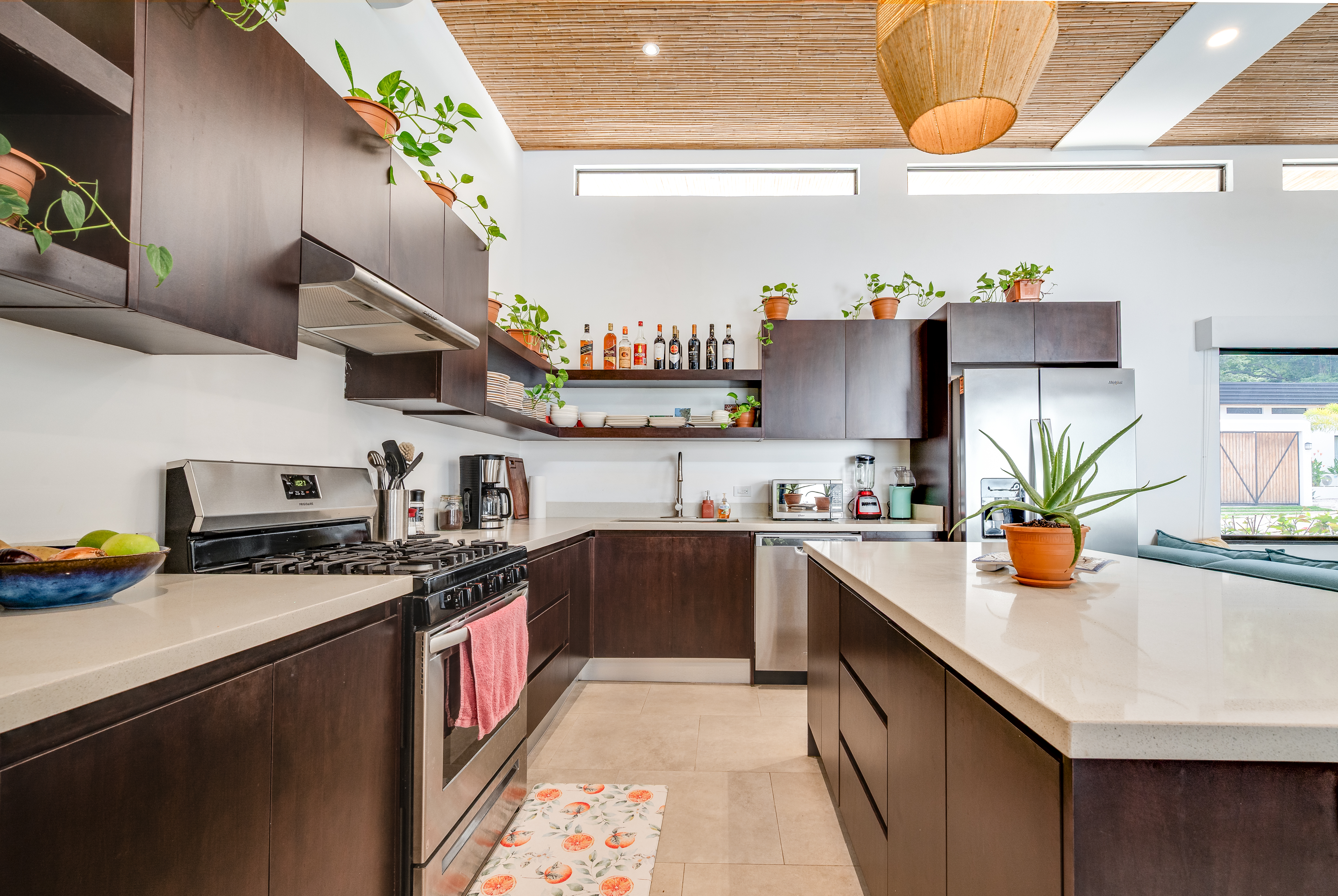 This 3 year old home has been impeccably maintained and never rented out. The distribution is great, around a swimming pool with lush vegetation, and looking out over mature trees. The teak deck has been recently treated and is in great condition. The location is perfect- just far enough out from Tamarindo to be peaceful and surrounded by nature. But not forgetting that just a short car ride (or golf cart ride!) away are the beautiful sandy beaches of Tamarindo, and all the restaurants and shops. Owner financing available.