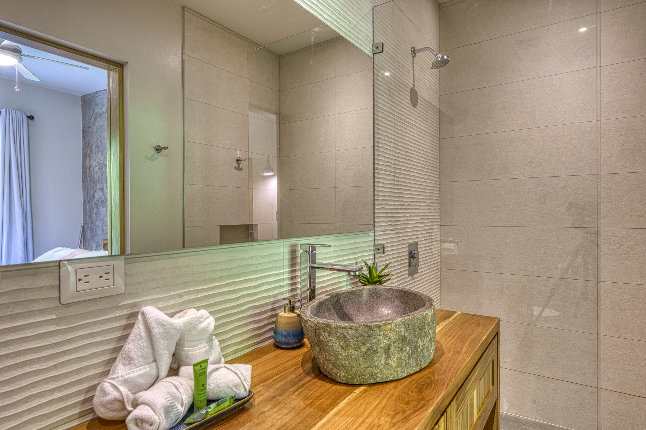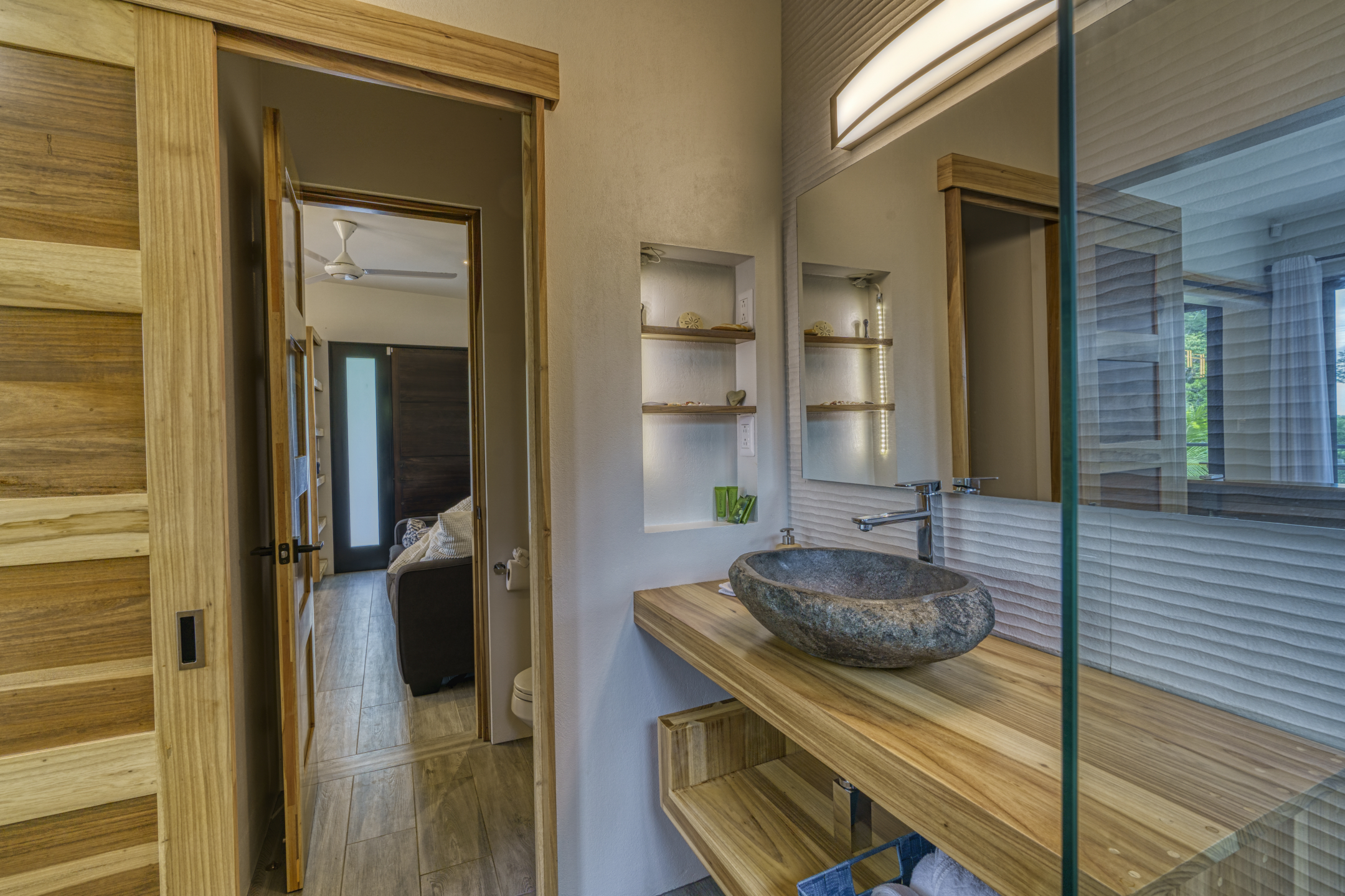The main house at Villa Cosara is a masterpiece of comfort and elegance. It features four expansive bedrooms, each with a private en-suite bathroom and an additional guest bathroom for convenience. The fully equipped kitchen is the home's heart, perfect for casual and gourmet cooking. Outside, the private pool offers a serene escape, surrounded by the sounds and beauty of the Costa Rican landscape. Thoughtful touches such as laundry facilities make Villa Cosara a practical yet luxurious choice for long-term living or an unforgettable vacation retreat.