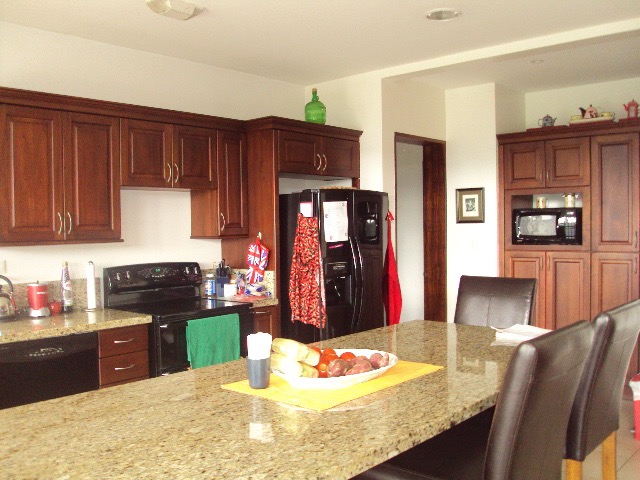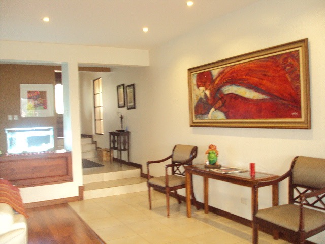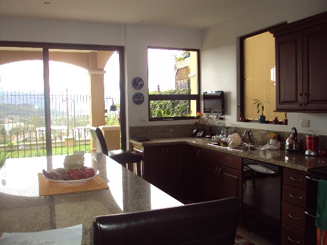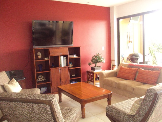 Hermosa Casa en Condominio en Curridabat. This cozy and comfortable condo is distributed over three floors as follows: First Floor: Lobby, guest bathroom, large living room with fireplace and wine cellar area, large kitchen with granite countertops and wooden furniture, in a single environment next to a family TV room, pantry, laundry area, hanging patio and service room with full bathroom. Nice terrace, back garden with beautiful views of the central valley. Second Floor: Large living room that can function as a TV room, a secondary bedroom with a complete bathroom with marble countertops, a large master bedroom with a balcony, a full bathroom with a double sink, a shower, two walk-in closets for her and for him. This floor goes up a half level to two secondary bedrooms with a closet, a bathroom with a double shower room and a sink with a marble top to share. Third Floor: Large bedroom with closet and bathroom, with beautiful views, this floor can also be used as a game room, study. The condominium has a garage for two vehicles, a cellar and a front garden. The condominium complex has 24/7 security, A BBQ AREA, the maintenance fee is 185 thousand colones, pets are accepted.