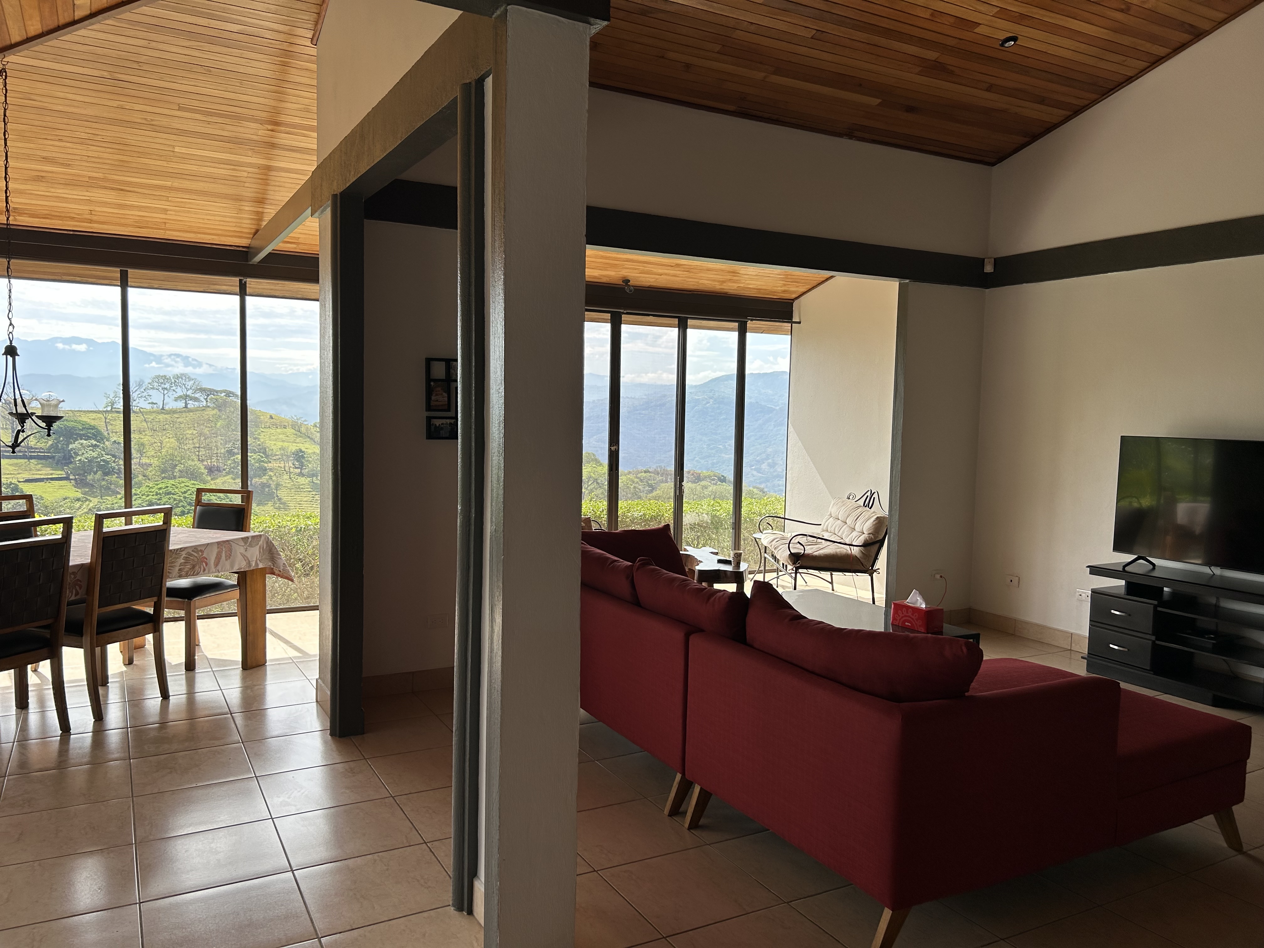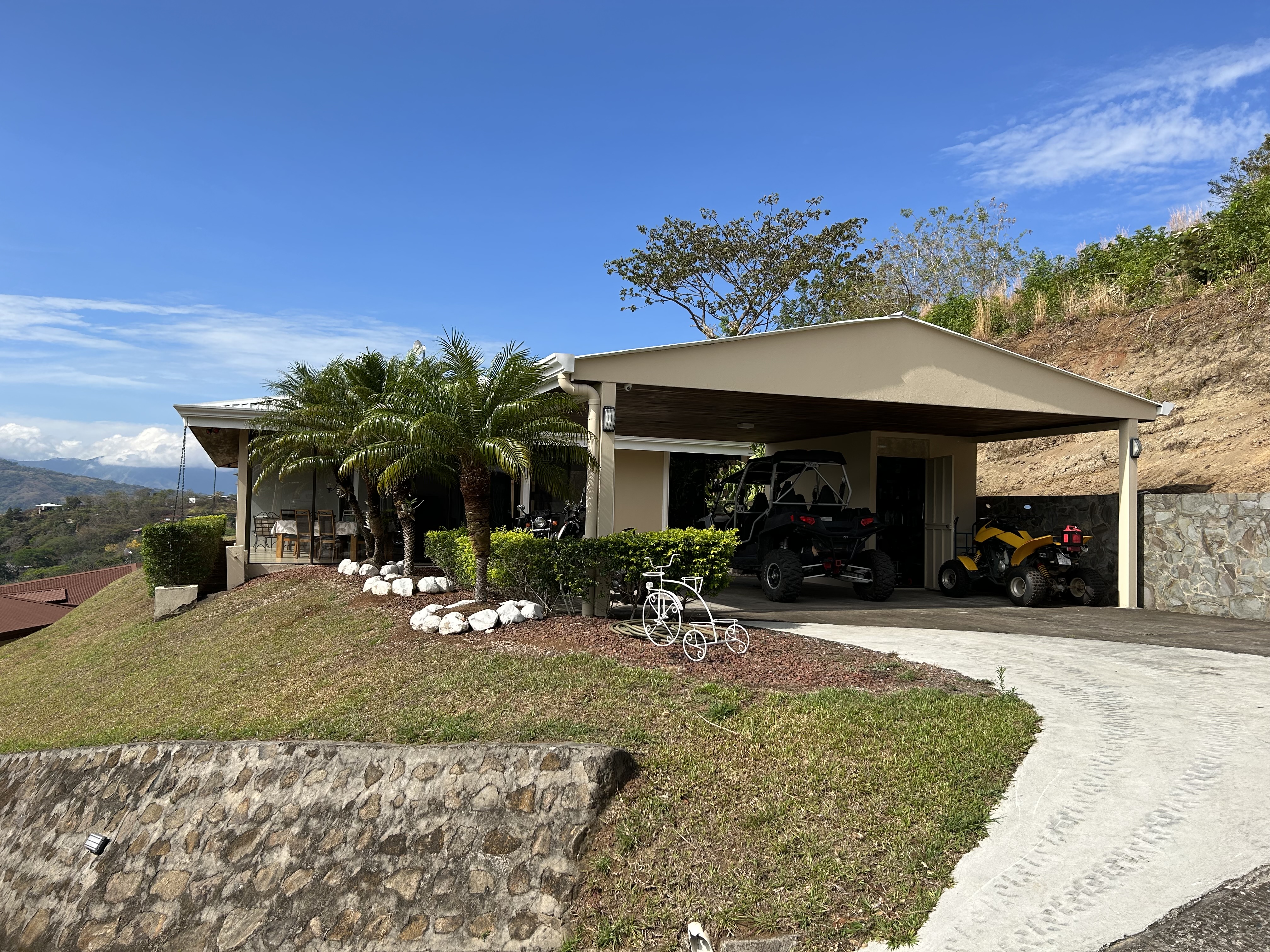 Great House plus Guest House in Escobal This is a real bargain; we have two houses: One main 2260 SQFT with 3 bedrooms and 2 bathrooms and a guest house 810 SQFT with 2 bedrooms and a bathroom. Both houses fully equipped and fully furnished. The main house can host 3 cars and the guest house at least 2. The complete property is behind an electrical gate. The views from both houses over the mountains are totally breath taking. Water, electricity and Internet fully available and functional. The cherry on the cake or la crème de la creme, we have a community pool and an equipped pool house inclusive at zero HOAs! Located near Atenas (15 min), in Escobal, half an hour to the San Jose international airport, in a peaceful environment. Do not hesitate to contact me for further information or let me know if you wish to schedule a visit.