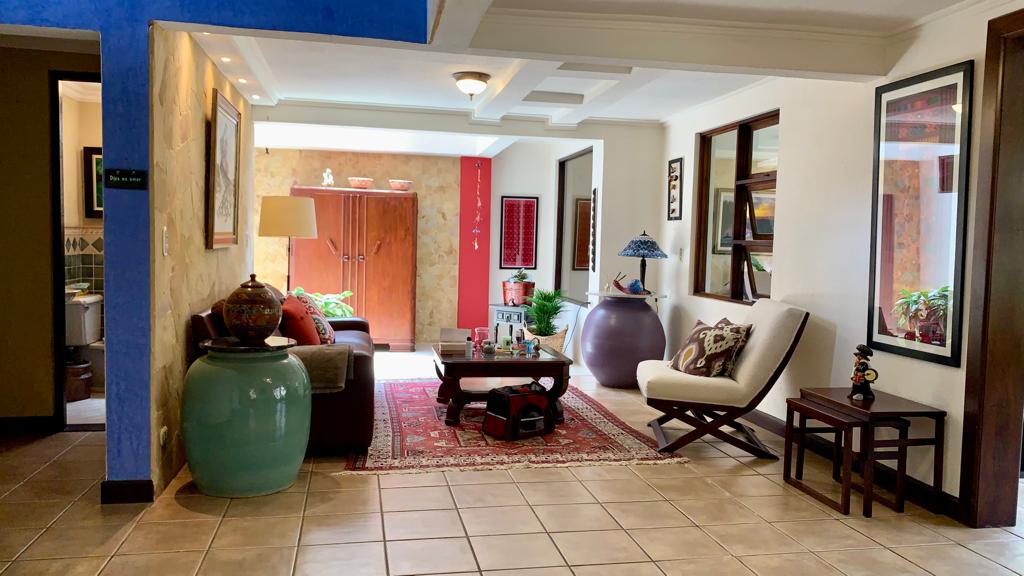Propiedad en Cariari, una casa independiente de dos niveles, ideal para una familia grande. Este hogar ofrece una excelente iluminación natural y cuenta con una casa de huéspedes de una recámara con baño privado y closet. Además, presenta un hermoso jardín con una encantadora fuente y una amplia terraza perfecta para reuniones de barbacoa o relajantes tardes de café.