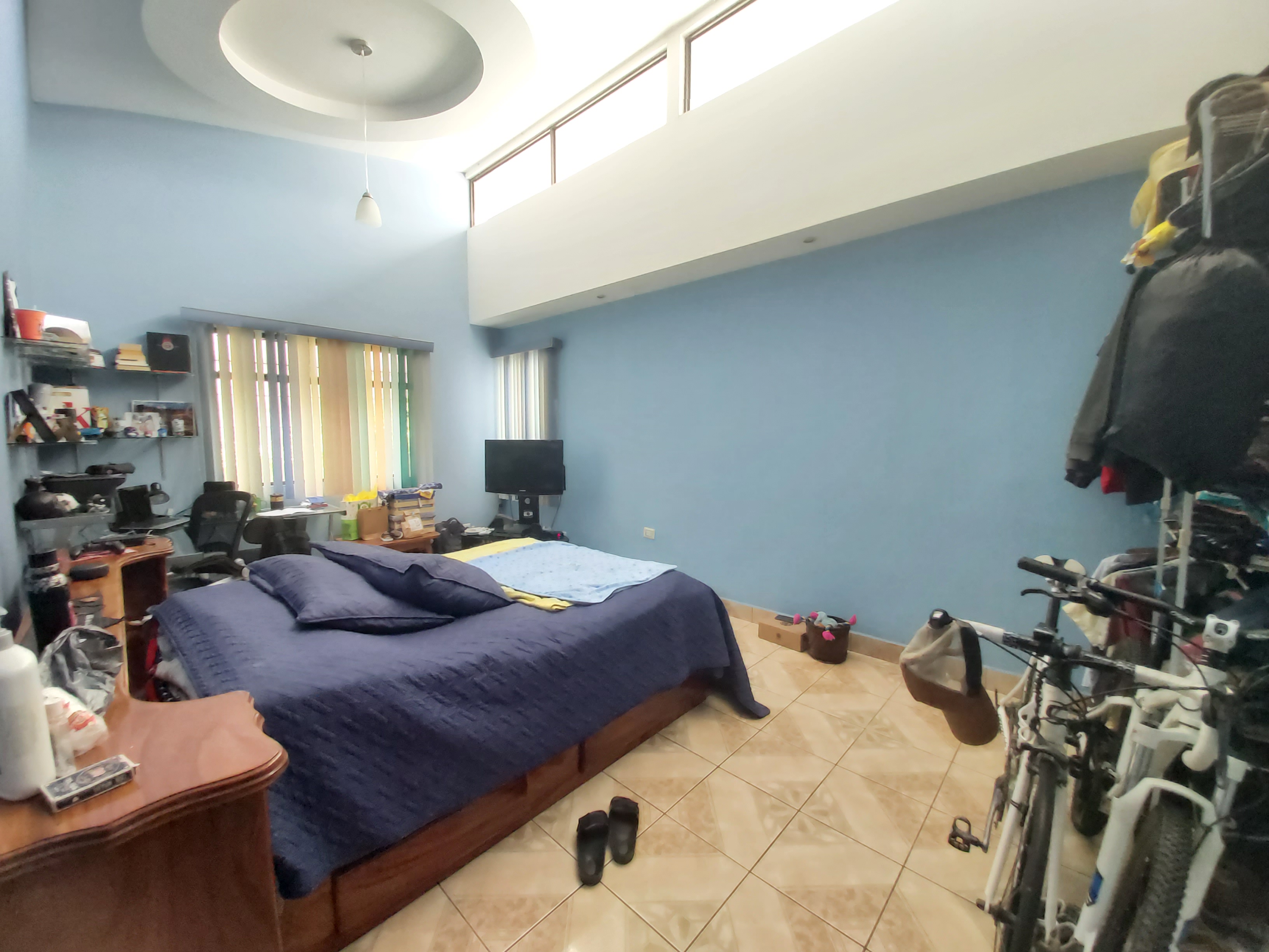 One floor house. It is an independent house. It consists of a spacious living room, dining room and private kitchen. Large terrace for activities and large garden. TV room or Office 5 large bedrooms with closet, the main one with walk in closet. 3 full bathrooms Space for 4 cars. High ceilings. Close to educational centers and close to bus stops.