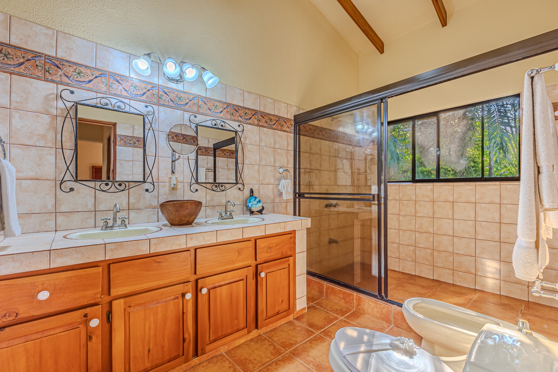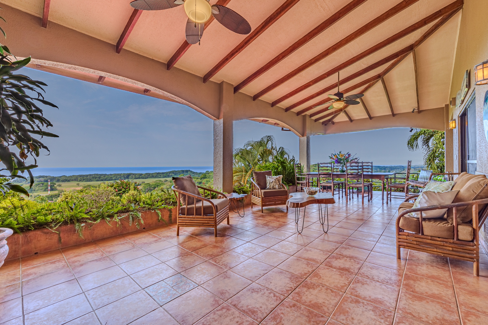 Inside, the ceramic tiles lay a foundation of classic beauty that flows seamlessly from room to room, creating a cohesive and luxurious living space. These tiles are not merely a design choice but a promise of enduring elegance and easy maintenance that compliment the lifestyle of leisure and longevity that Costa Rica is revered for.