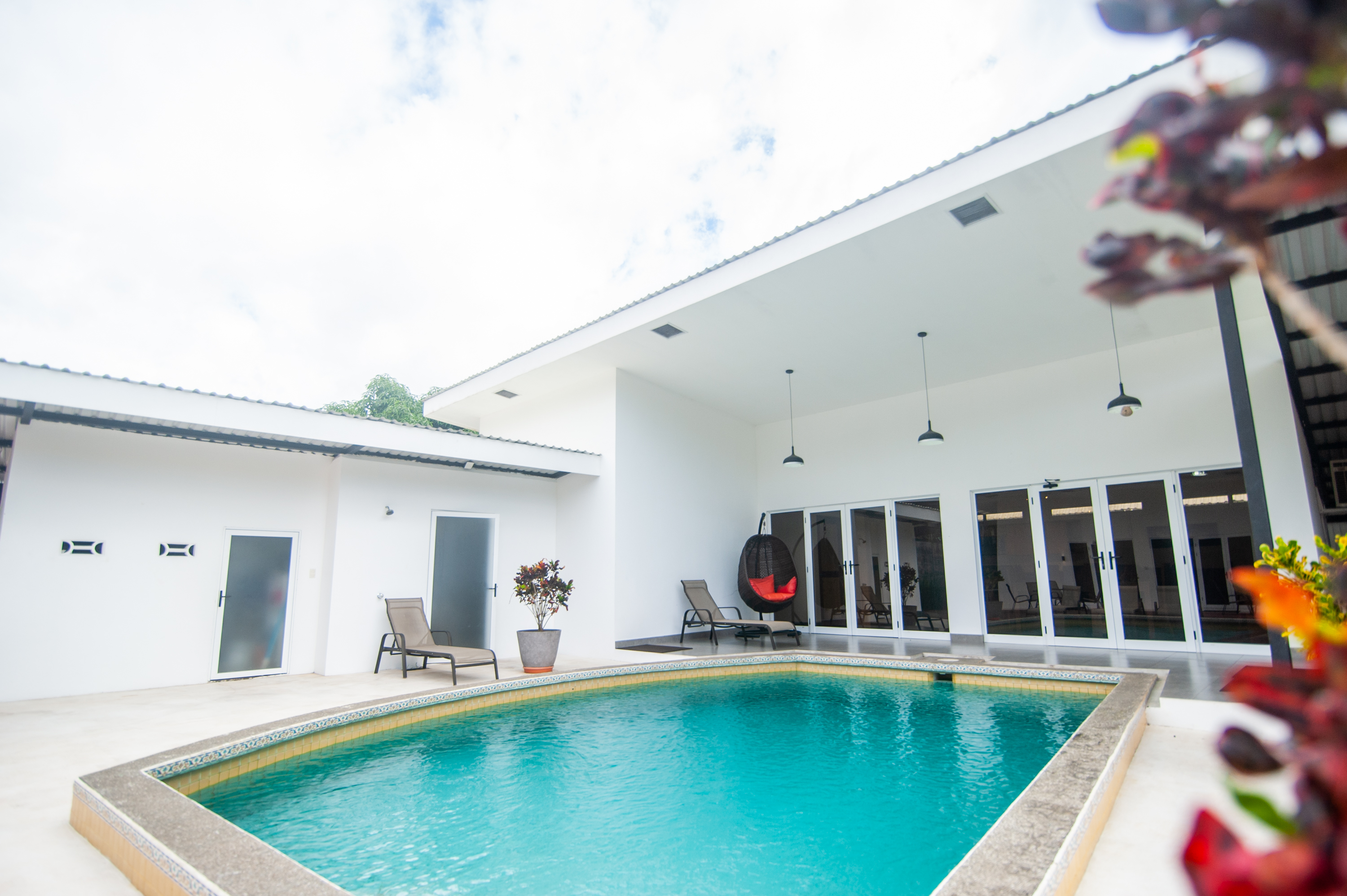Located in a quiet and safe neighborhood, this all furnished and brand new villa of 9842sfq, built in 2019-2020, is the perfect cocoon for a big family, with 5 bedrooms (2 king beds, 2 queen beds and 2 single beds), 5.5 bathrooms, and 3 covered parkings (and more uncovered), air conditioning, equipped kitchen and a private pool.