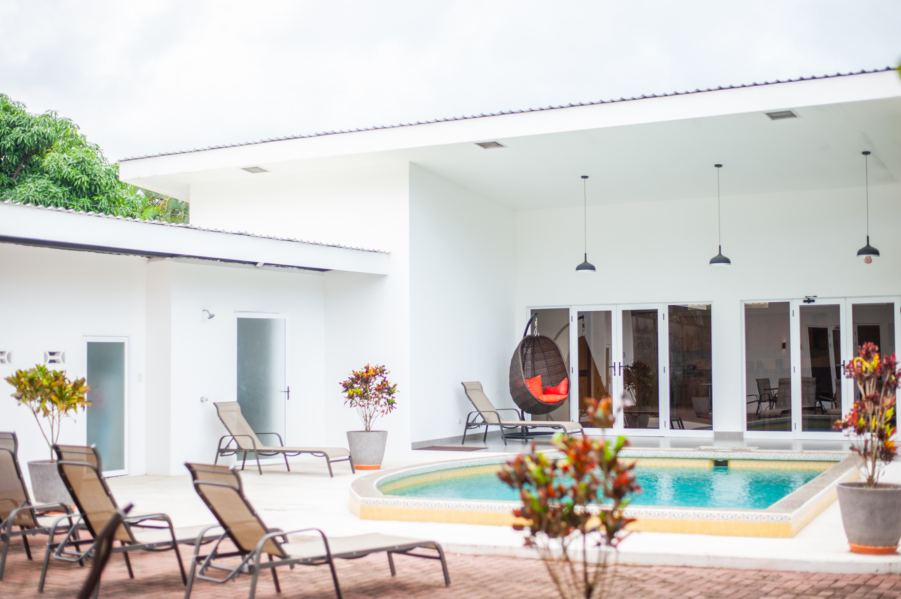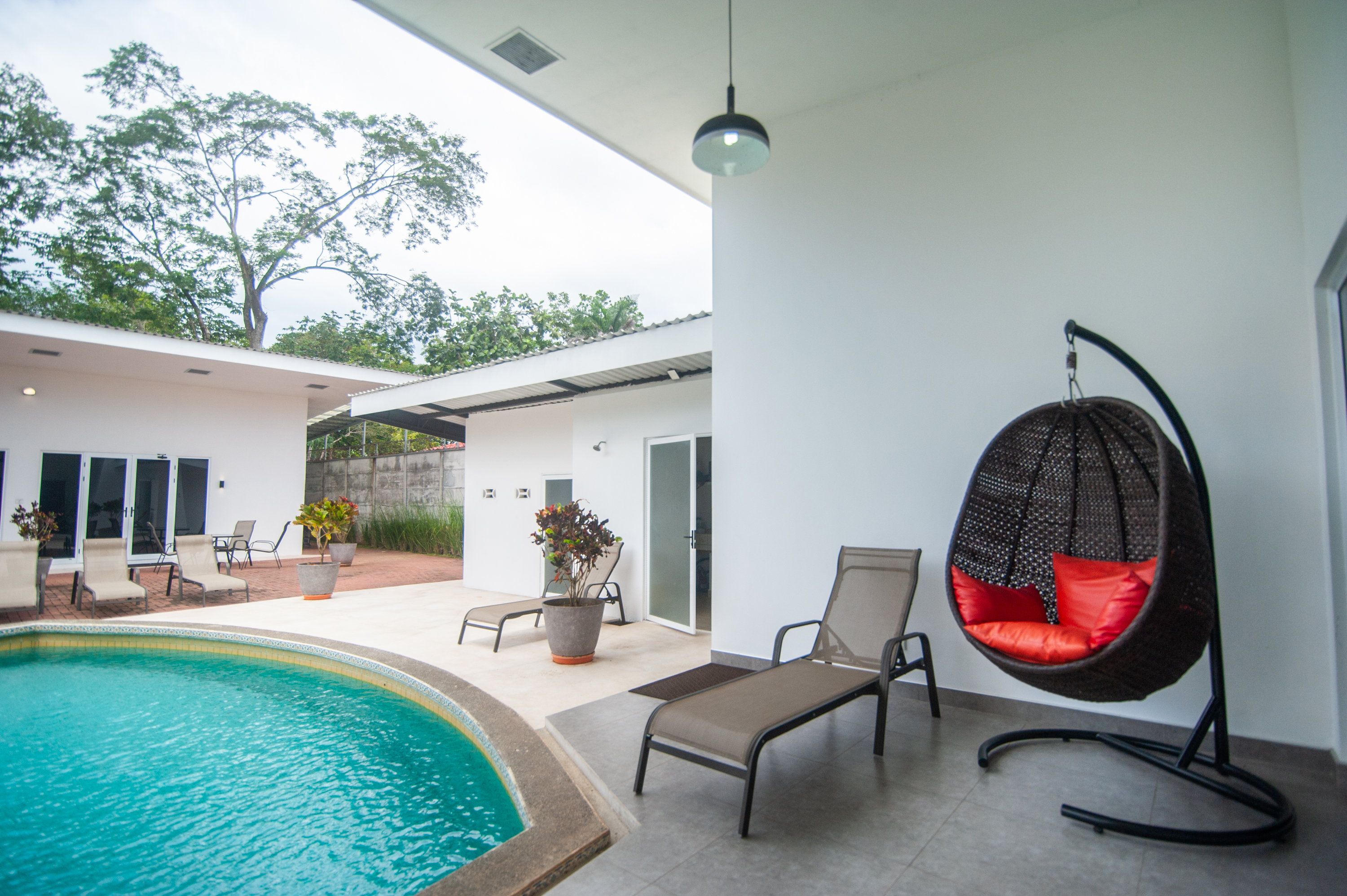 This stunning and luxurious villa is located in the heart of downtown Jaco.Its perfect location allows you to be close to the main airport of San Jose (1h15 drive) and all the commodities the city will give you access to: clinic, pharmacies, veterinarian, restaurants, shops, supermarkets etc… But also, at only 8minutes walk to the beach, you will have the “pura vida” and live-by-the-beach lifestyle.