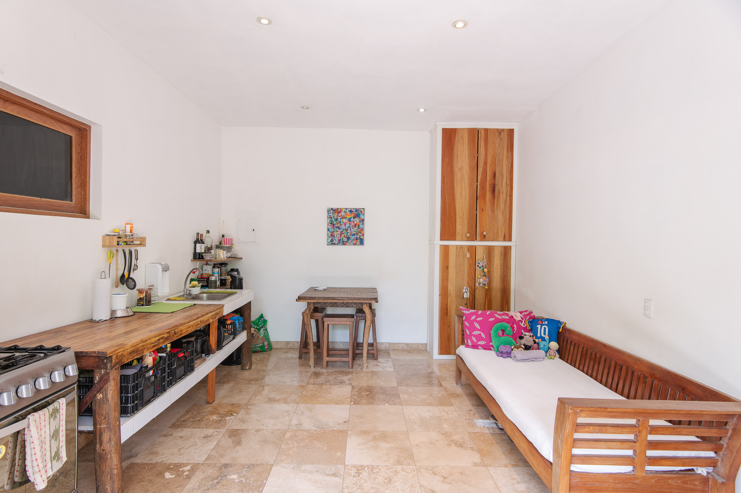 In addition to the main house, there is a delightful apartment featuring one bedroom and one bathroom. The apartment offers a garden terrace, providing the perfect spot to unwind and soak up the serenity of the surroundings. Similar to the main house, this unit showcases the same high-quality craftsmanship, with the use of concrete and almond wood, and exquisite travertine and coral marble flooring.