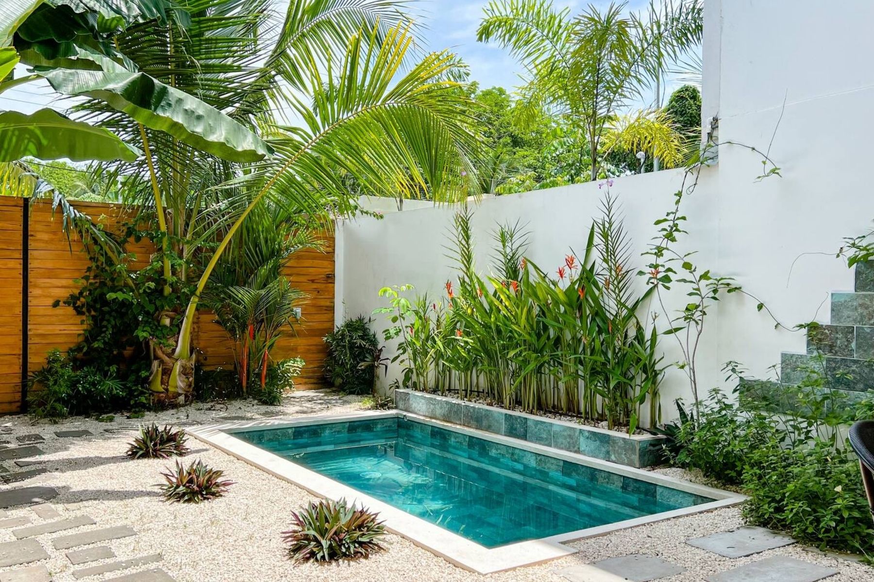 Private plunge pool surrounded by tropical plants