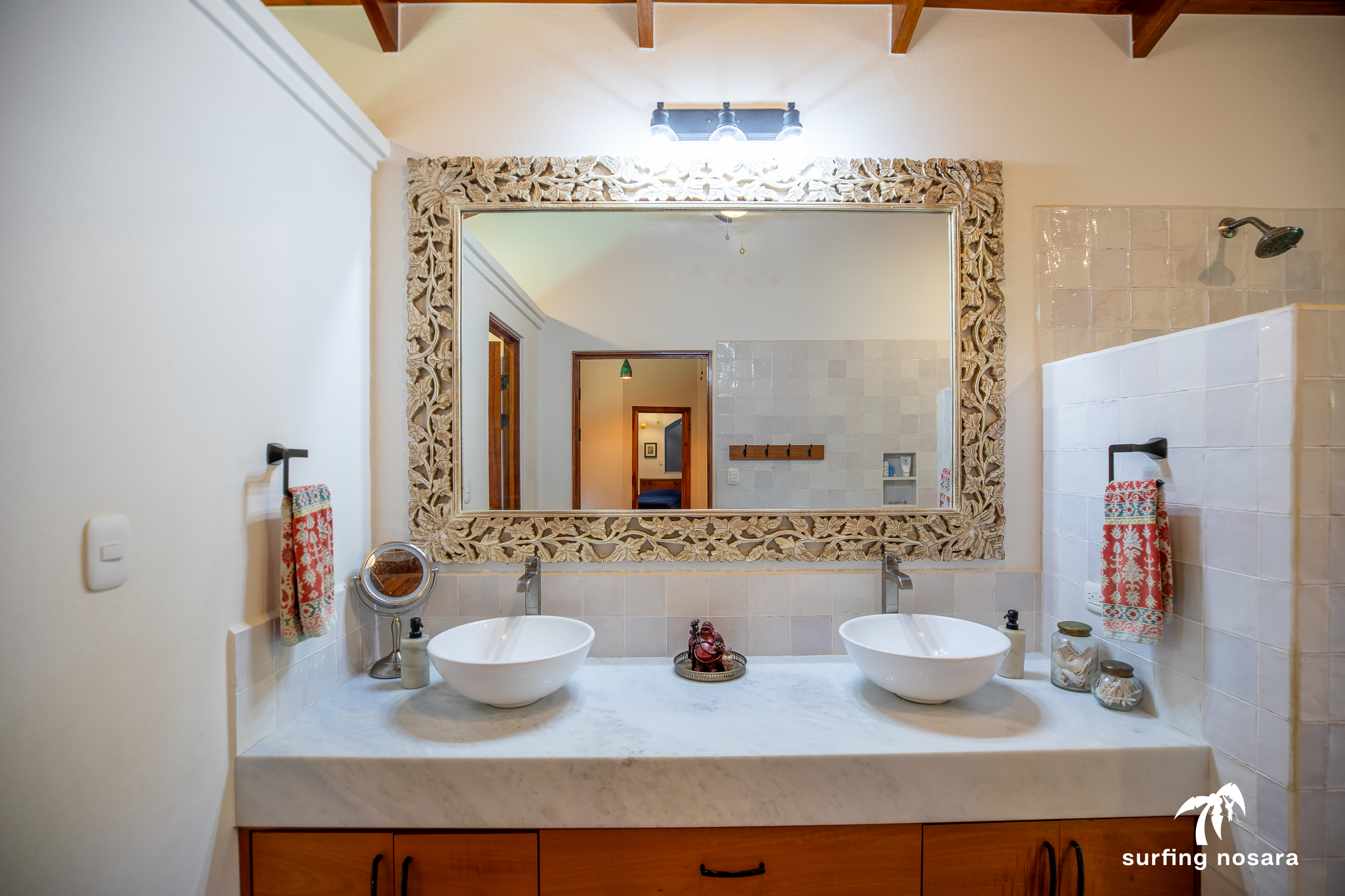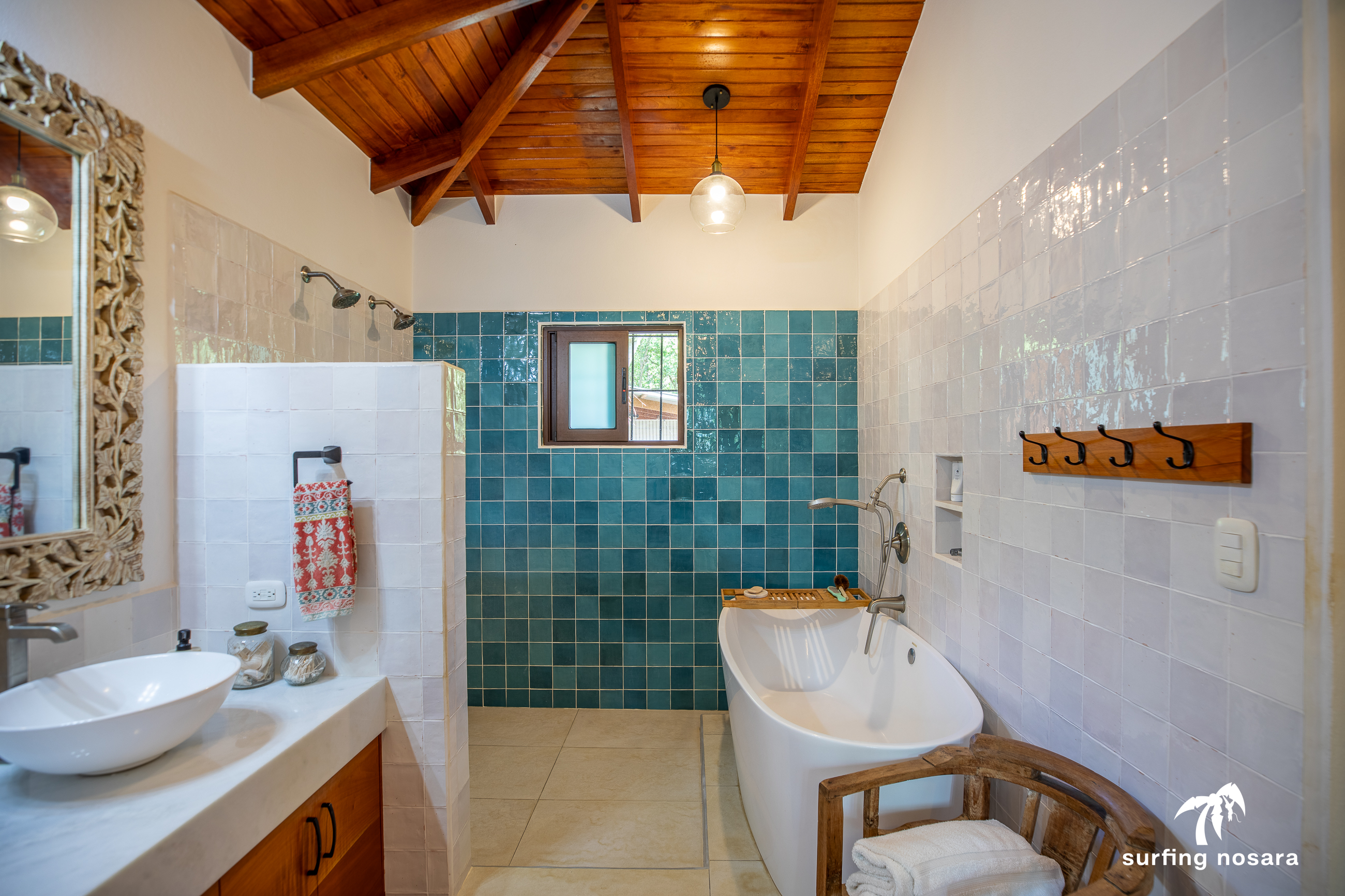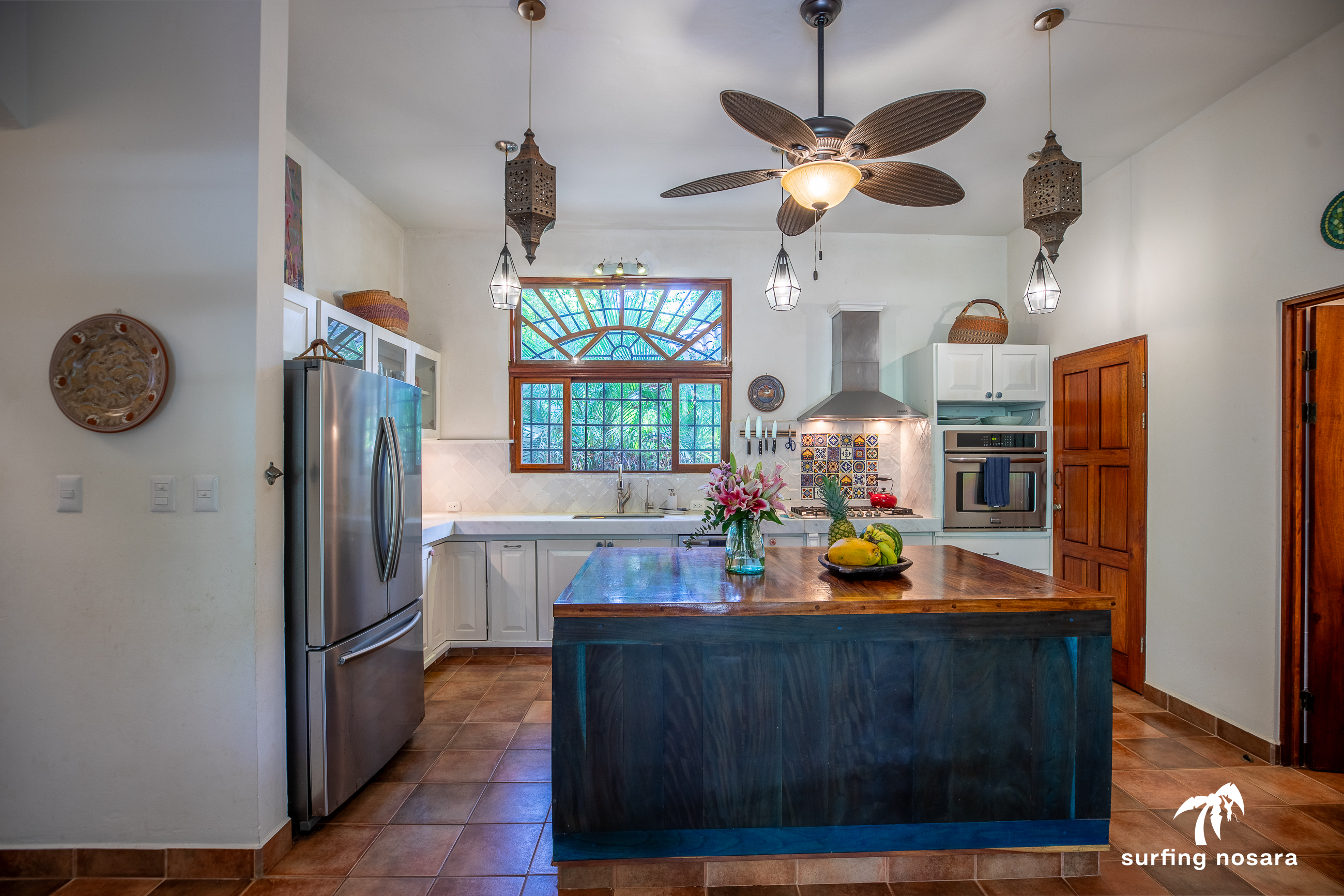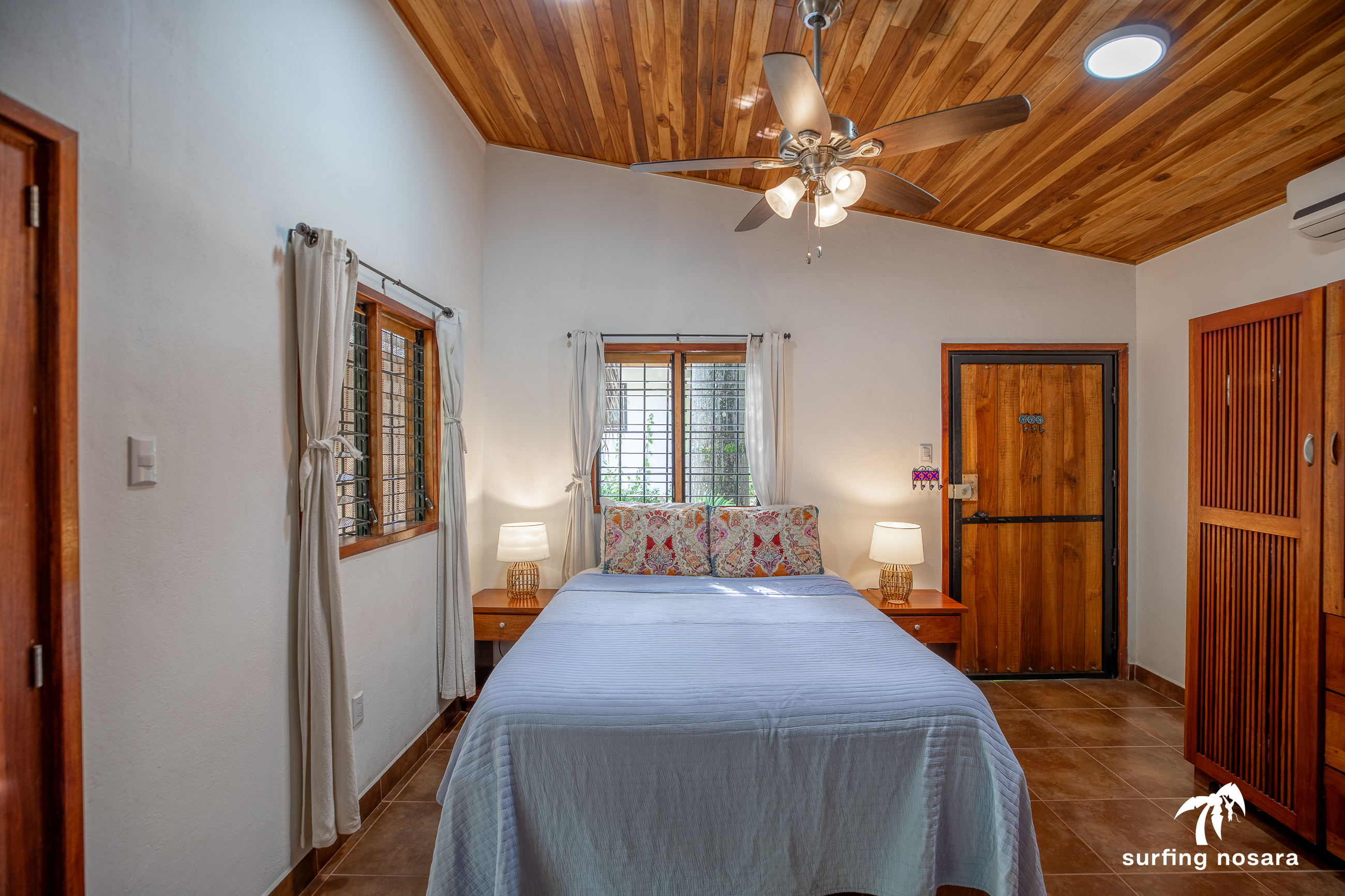 Casa Kiskadee is a charming estate near Playa Pelada beach, just a minute’s walk from “Boca Nosara,” a local hub for surfing, fishing, and nature hikes next to the preservation Lagarta Longe. The main house boasts 3 bedrooms, 2.5 bathrooms, and a beautifully decorated interior. A separate studio with a kitchen resides above the garage, and an additional apartment/office beneath the yoga shala offers flexible living or working space. The professionally used, elevated yoga shala overlooks lush jungle canopy, providing a private and serene view. The estate also features a spacious patio next to a saltwater pool, perfect for relaxing or entertaining while enjoying the presence of passing monkeys. Filled with tropical trees like banana, papaya, star fruit, and mango, the property is a verdant paradise. Additional amenities include extensive storage, a garage, solar hot water systems, AC in all bedrooms, a water storage tank.