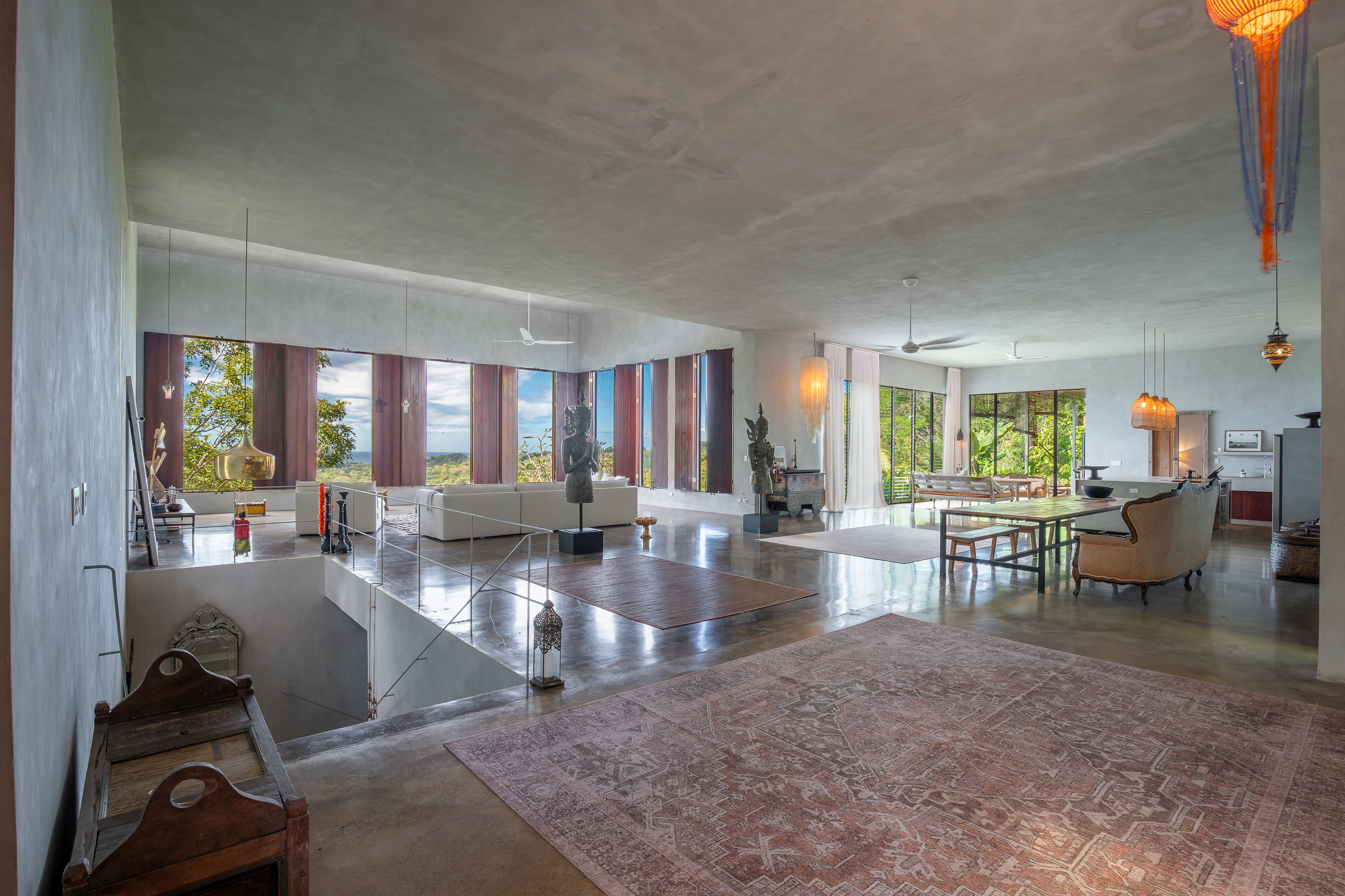 Beyond the existing residences, the property features multiple natural building pads with panoramic ocean and jungle views, allowing for further development such as guest villas, a retreat center, or additional private homes.
