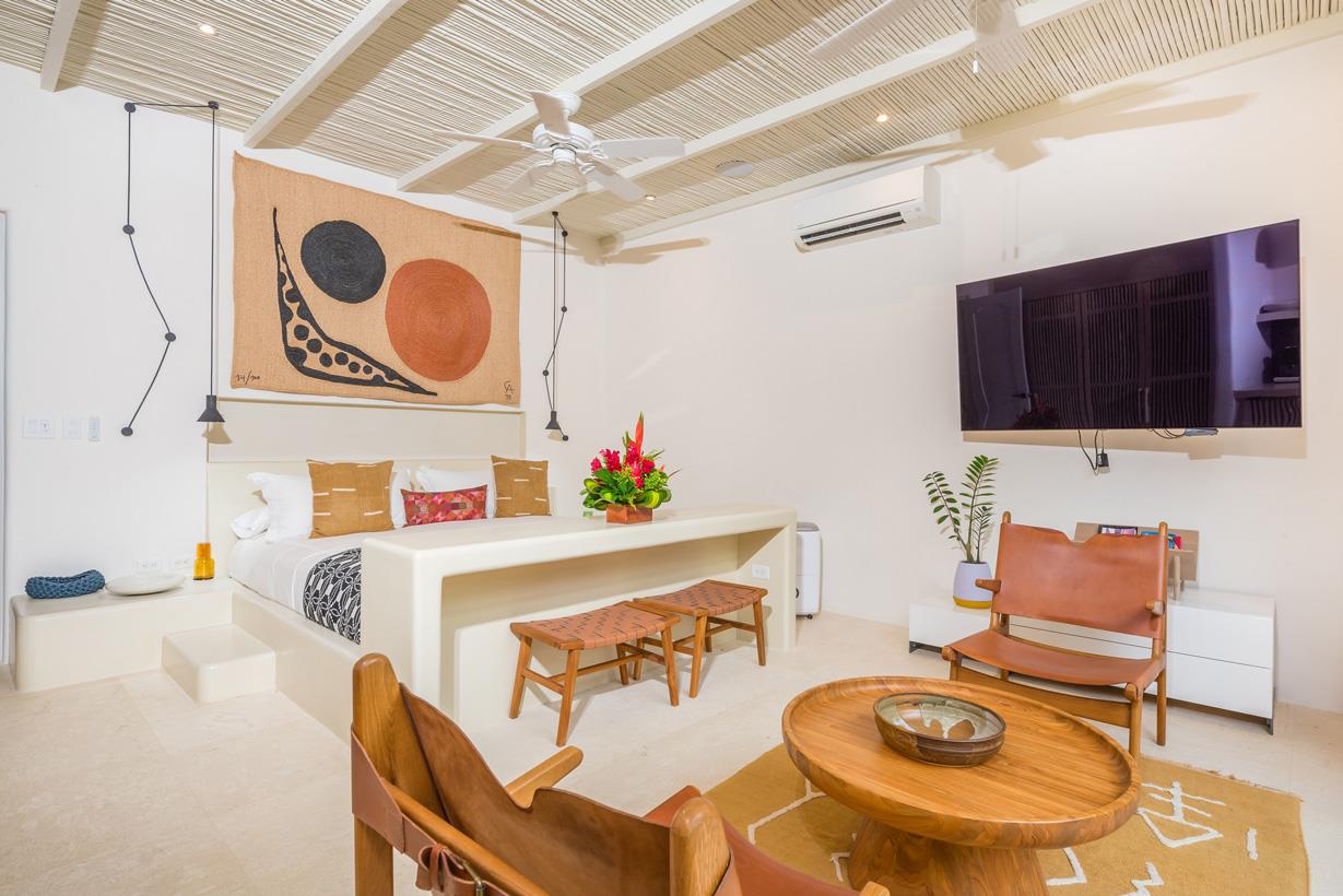 One of the distinguishing features of Casa Alegria is that it is one of the very few homes in Las Catalinas that offers both jungle and ocean views, allowing you to bask in the splendor of nature from every window. Each room has been thoughtfully and uniquely decorated, with an abundance of window and glass patio doors that flood the spaces with natural light and provide breathtaking views.