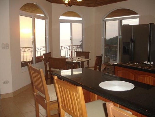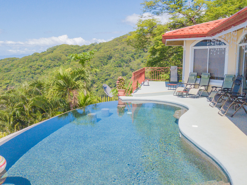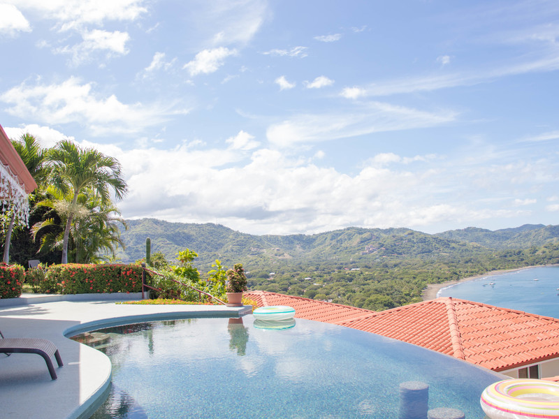Sleepy Cove is Villa Compound that consists of a multi-level complex of three private villas, and a separate main house with a modern, fully equipped kitchen, great room with entertainment center, and ample dining facilities; all intimately connected by well lit walkways and surrounding an exquisite infinity edged pool. The home sleeps 14 people comfortably with room for additional overflow in three queen-sized sleeper sofas. Each Villa has a master bedroom suite furnished with a king-sized bed, full bathroom and walk-in closet. The adjoining private sitting room contains a pullout queen-sized sofa bed. Additional sleeping quarters are located below each villa, where up to eight people may be accommodated in two rooms, each with a full private bathroom. There is a powder room in the main house, as well. All rooms are air-conditioned and have spectacular panoramic ocean views. The beach is situated at the foot of the hill, a short quarter mile (600 meters) from the compound. Playas del Coco, Guanacaste, Costa Rica, Central America (20 minutes from the New Liberia International Airport) easily accessible with modern paved roads. Playas Del Coco is located in the Northwest Pacific region of Costa Rica. "Sleepy Cove" is a brand new, accommodating compound nestled in the beautiful hillside with stunning panoramic ocean views of the Pacific that words cannot describe and a picture does not do justice. Access to the town of Playa del Coco is less than a mile from "Sleepycove". Playas del Coco, a soft sand beach nestled in the midst of two rocky headlands. Located 35 kilometers west of Liberia, this active beach village is easily accessible. Playas del Coco has been a retreat destination for many years and it draws global travelers. Part of the draw of Playas del Coco is the extraordinary scuba diving, with turtles, various species of sharks, rays and angelfish among the diverse marine life that inhabits the local waters. In addition to being a scuba destination, Playas del Coco also offers some of the best sport fishing. Yellow fin tuna, marlin, mahi mahi, rooster fish and Pacific sailfish are bountiful. There are a wide variety of activities available in Playas del Coco; most of the action in town is centered on the sea. Local shops offer boating excursions out to the small islands off the coast for surfing, sport fishing, scuba diving, and snorkeling. Horseback riding, tennis, kayaking, and hiking are also popular. Many National Parks are in the vicinity as well.