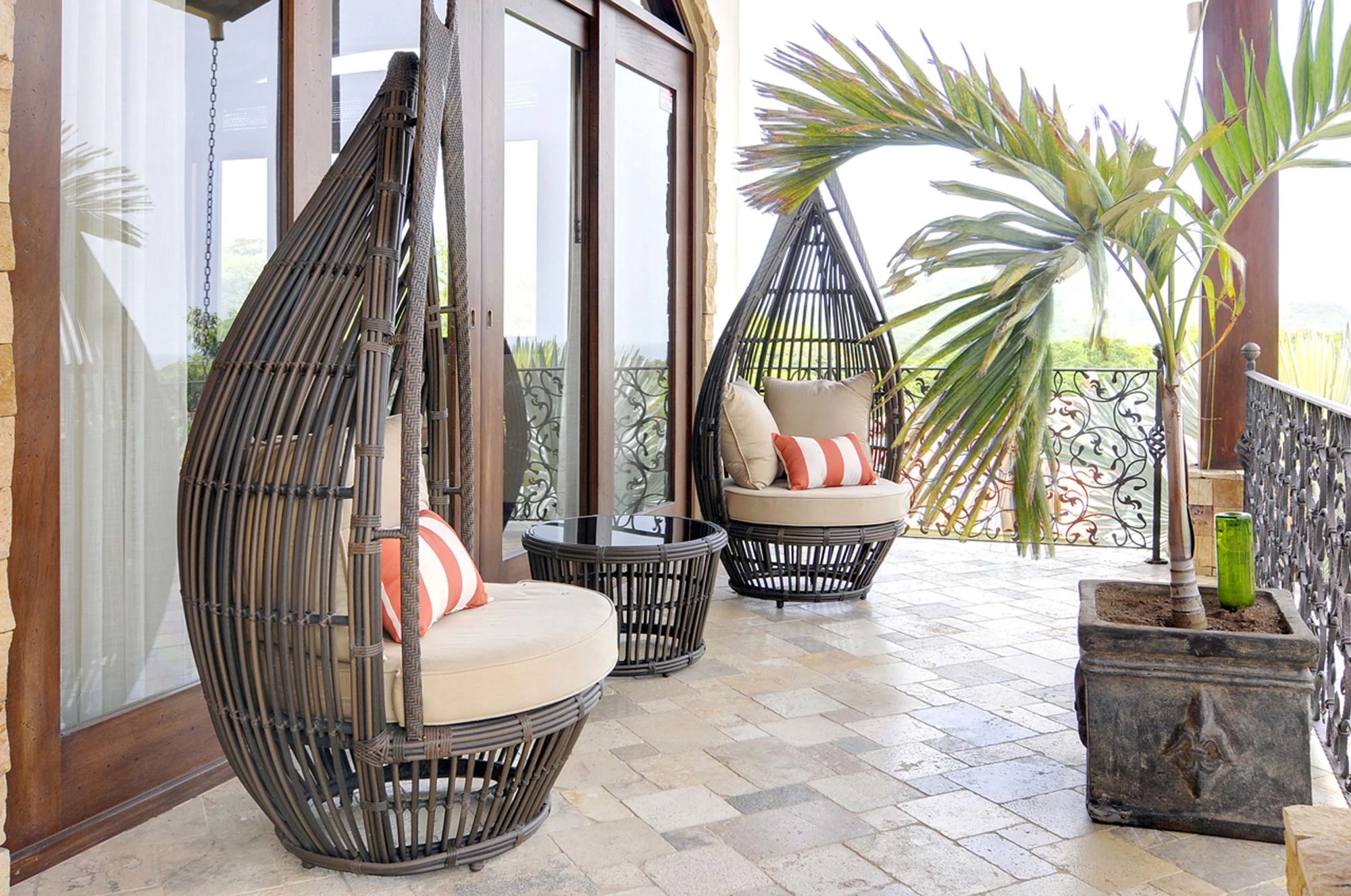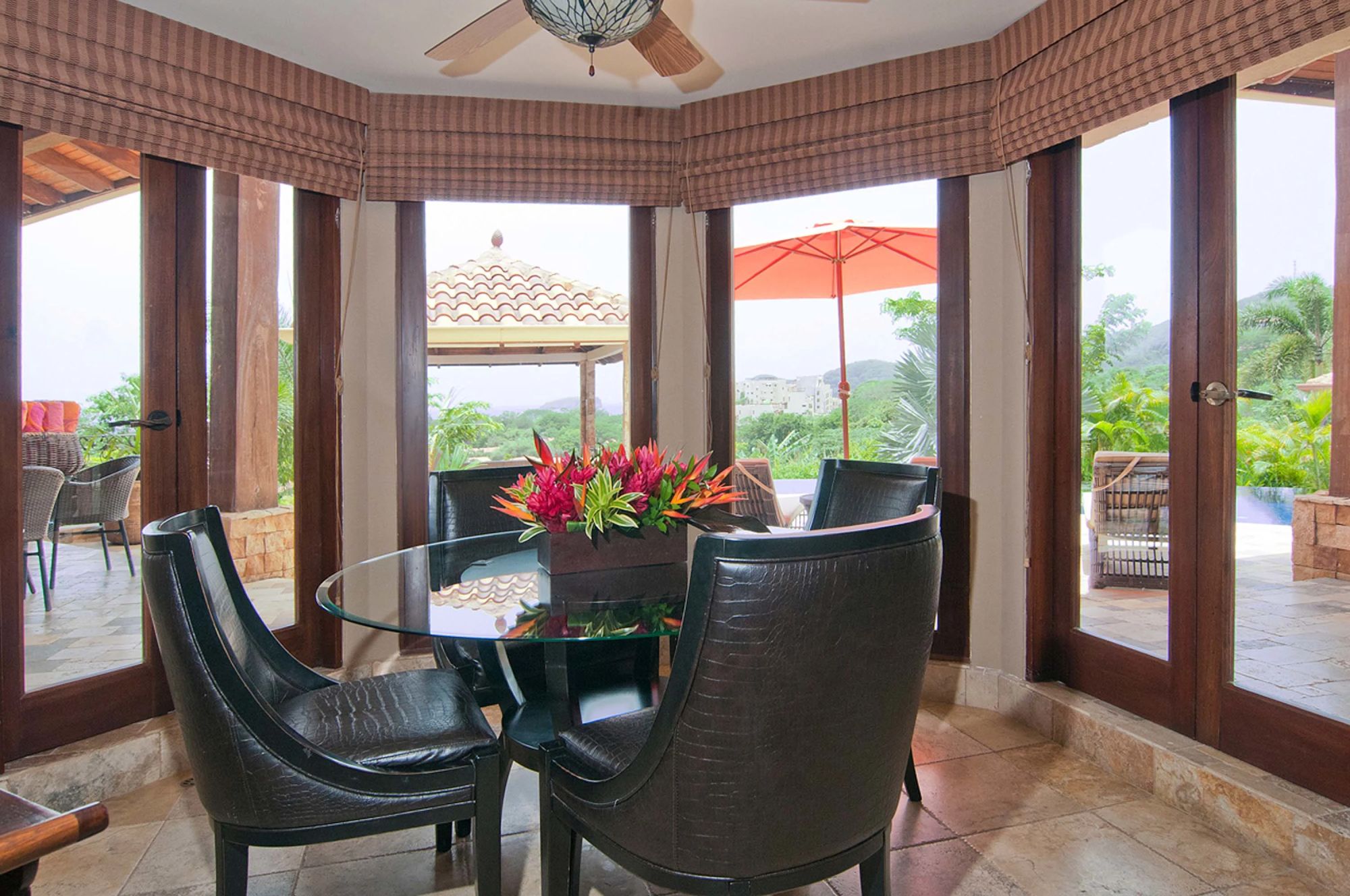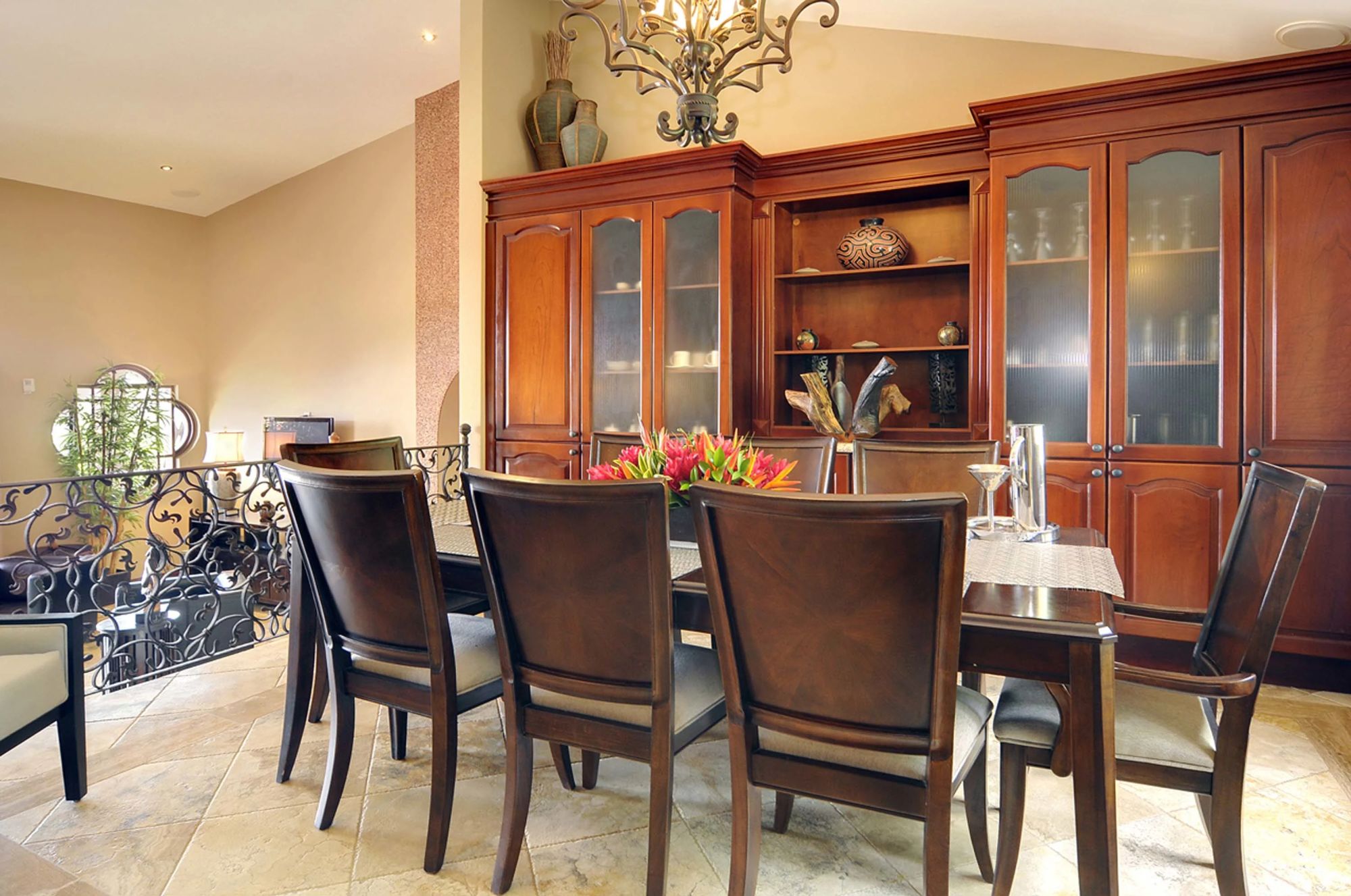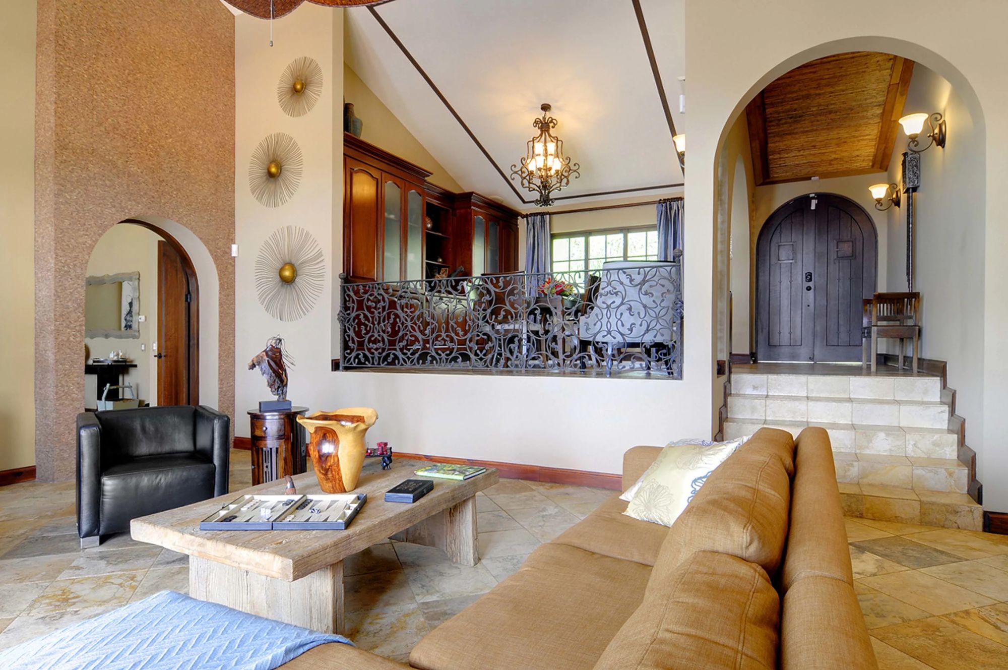 The home was built with a great eye for detail, visible in the high ceilings, terraces spilling from the living spaces and into the pool, while also practical with a main kitchen, second kitchen in the casita, and a third kitchenette. The floors are large, elegant tiles, and the countertops are solid granite, easy maintenance and high quality. Large windows with quality frames bring in lots of natural light throughout. The house has well selected nice wooden furniture pieces throughout, gracing the living areas and bedrooms.