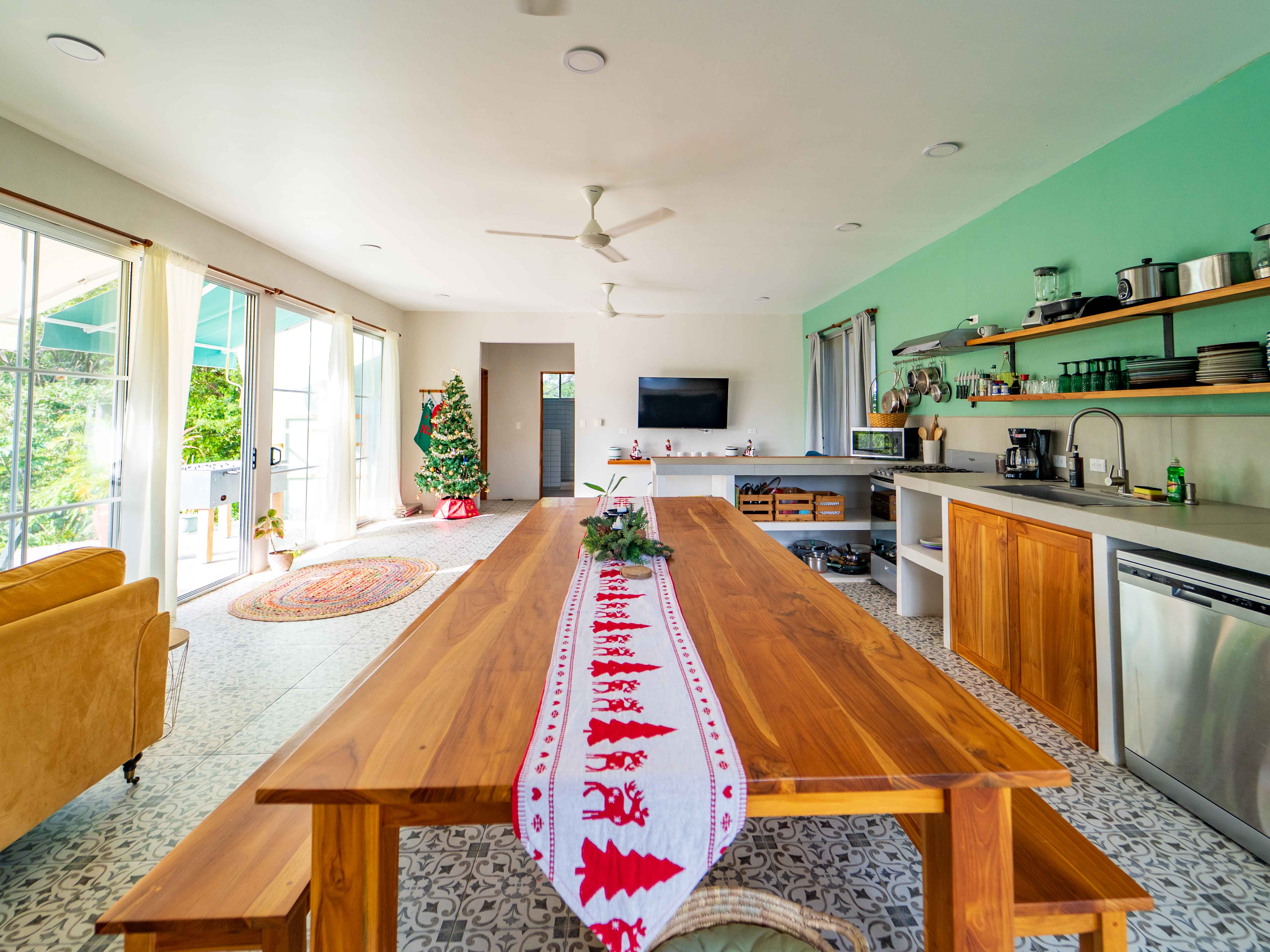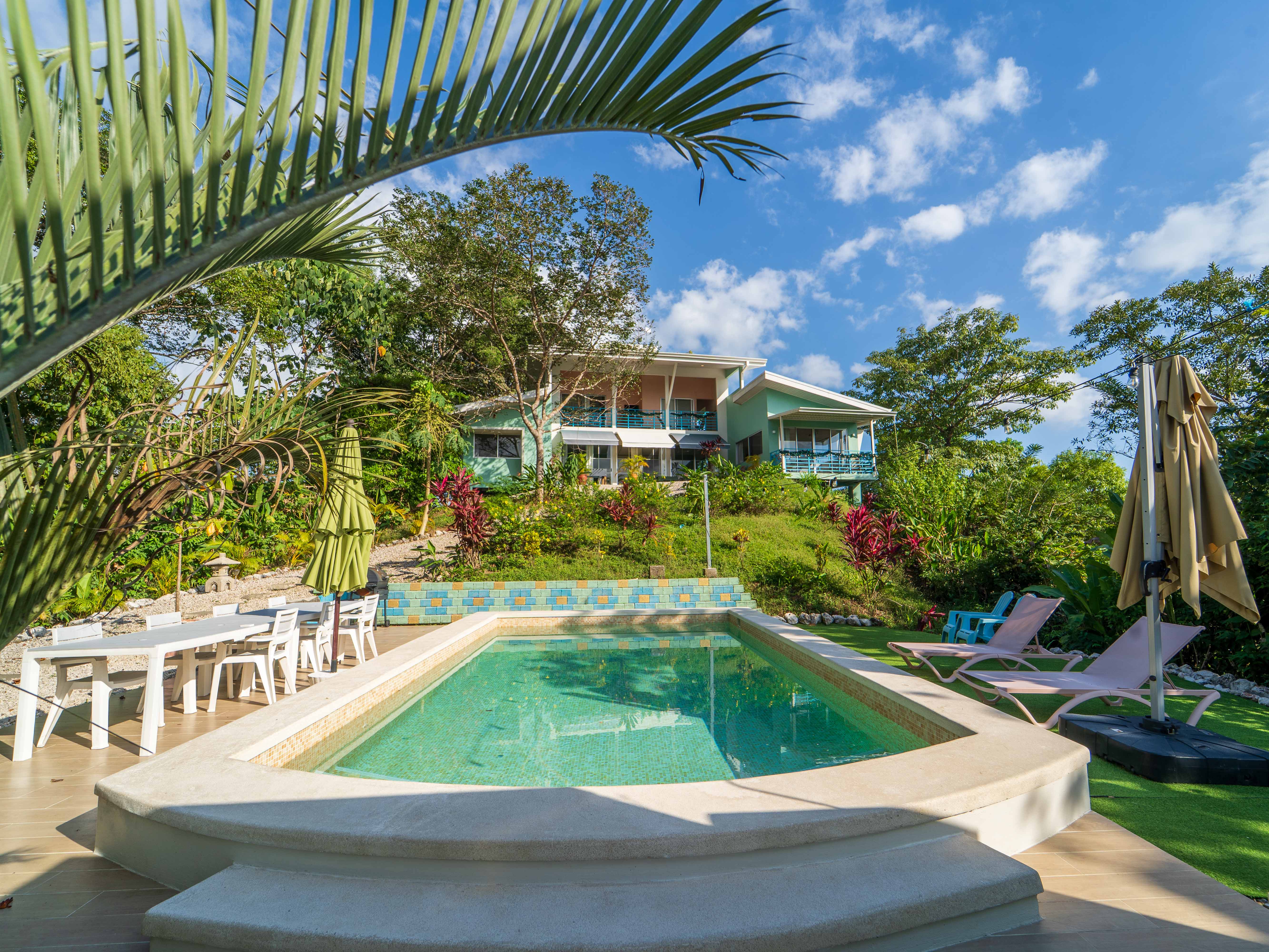 Inside, the residence opens to sweeping mountain views and a contemporary open-concept layout accented by eclectic retro-modern décor. High-quality finishes and carefully curated design elements create a space that feels both refined and welcoming—perfect for relaxed tropical living.