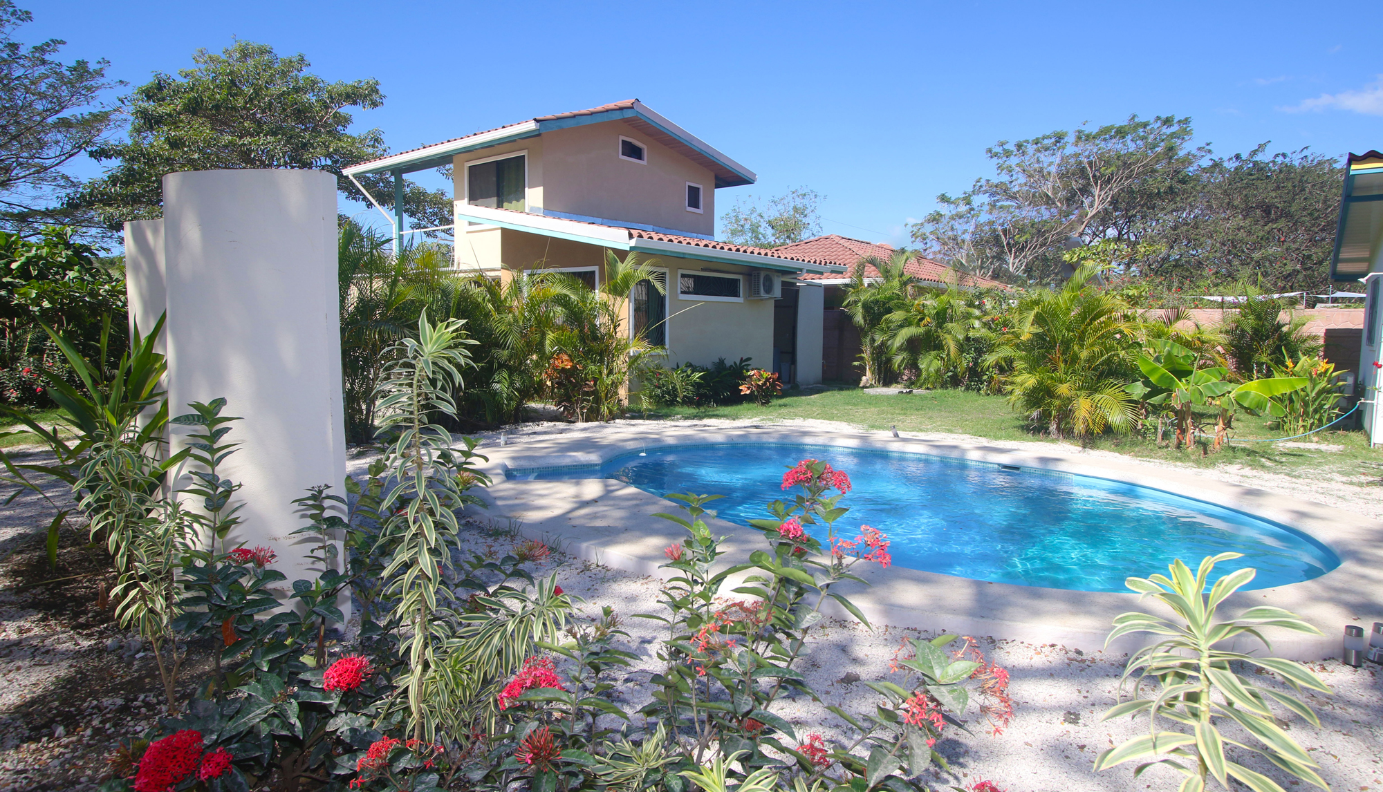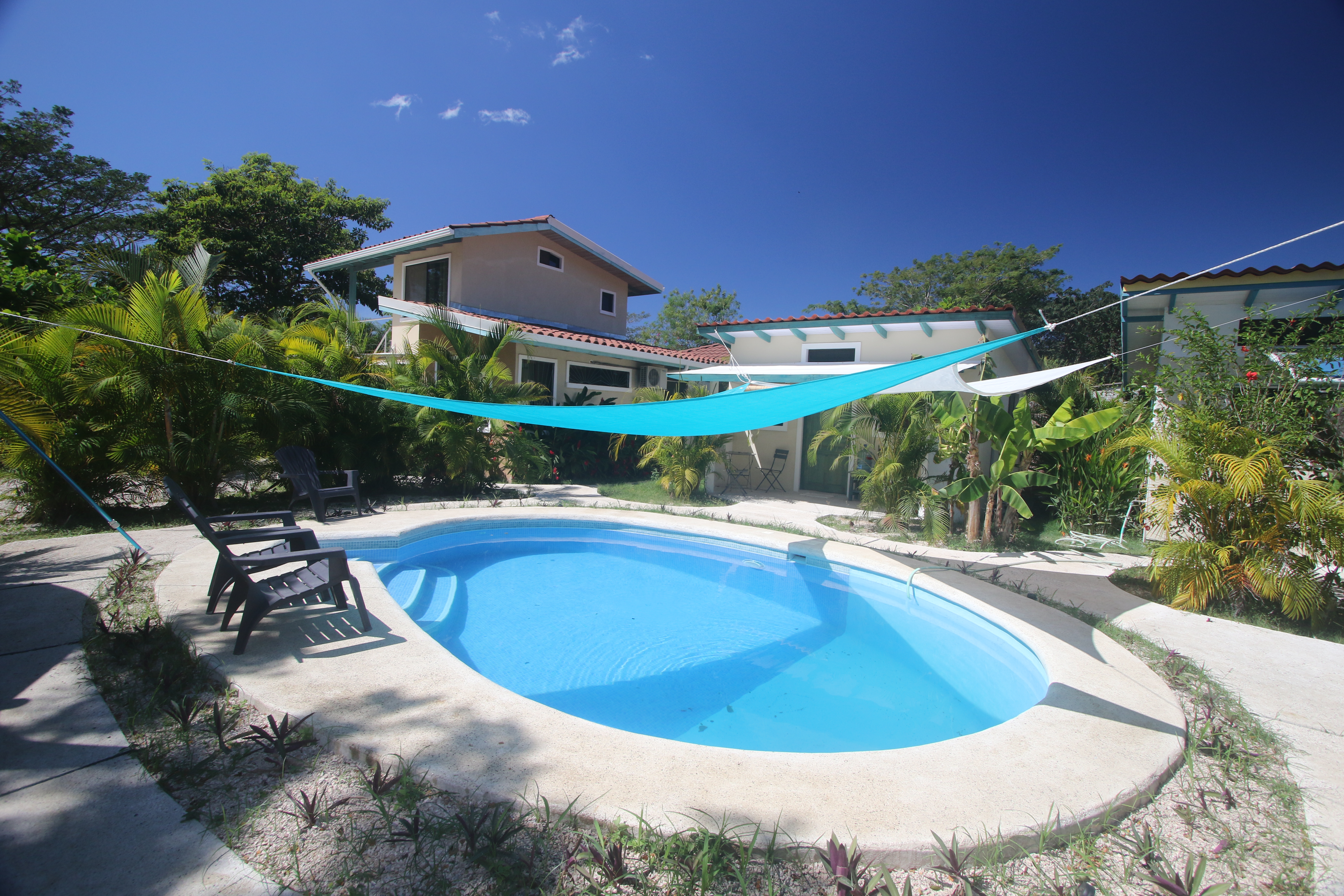 Casa Bonita is a turn key vacation rental business located on the edge of Samara. Located in Cantaranna, this business is perfectly situated and walking distance to both downtown and three beaches. One side of the property is a brand new, beautifully designed, two-story house; on the other - a 1 bedroom, 1 bath cottage AND 2 studio cabinas each with a private bathroom and kitchen. All of this and a brand new swimming pool amidst a beautiful tropical garden.