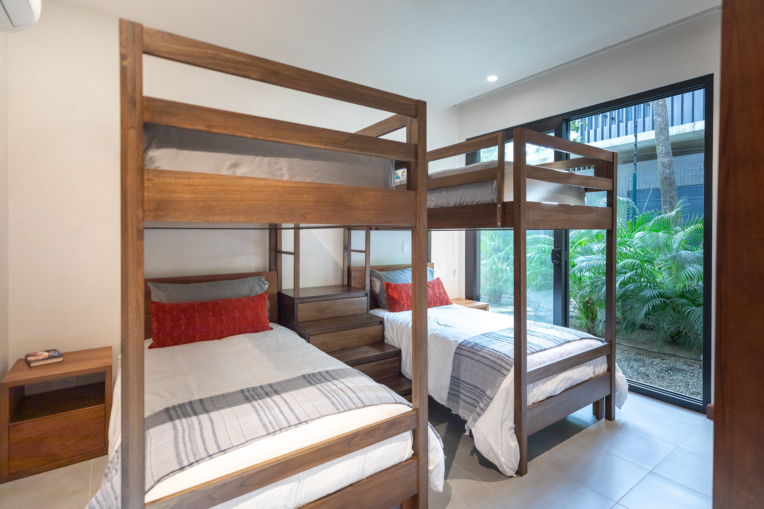 Casa Bonita's unusually large garden offers its guests privacy and seclusion. In it, a charming outdoor seating area verges on a sukabumi stone-lined pool. All is surrounded by lush vegetation, which reveals the occasional wildlife spotting of birds, iguanas, howler monkeys, coatis and crabs.