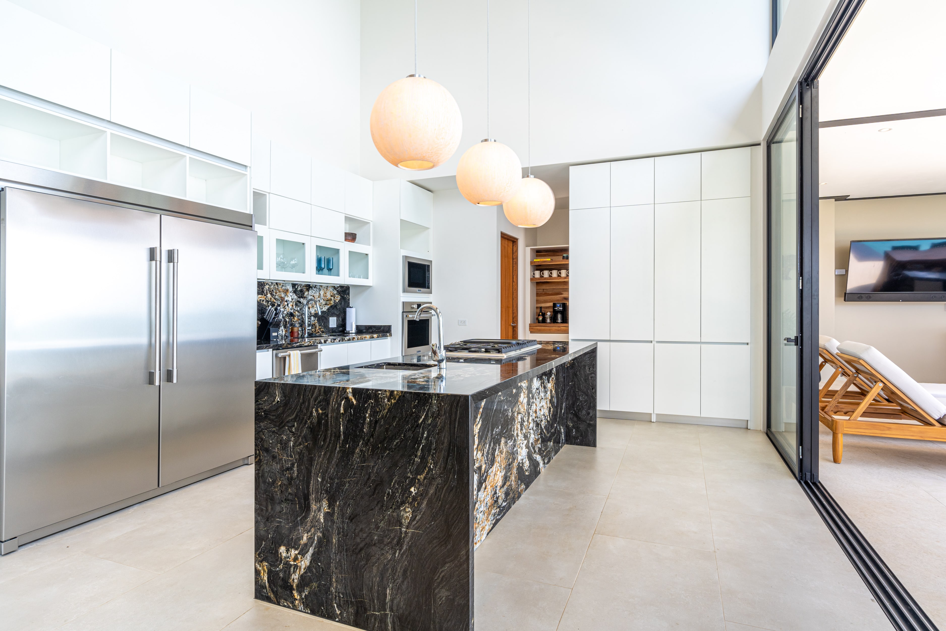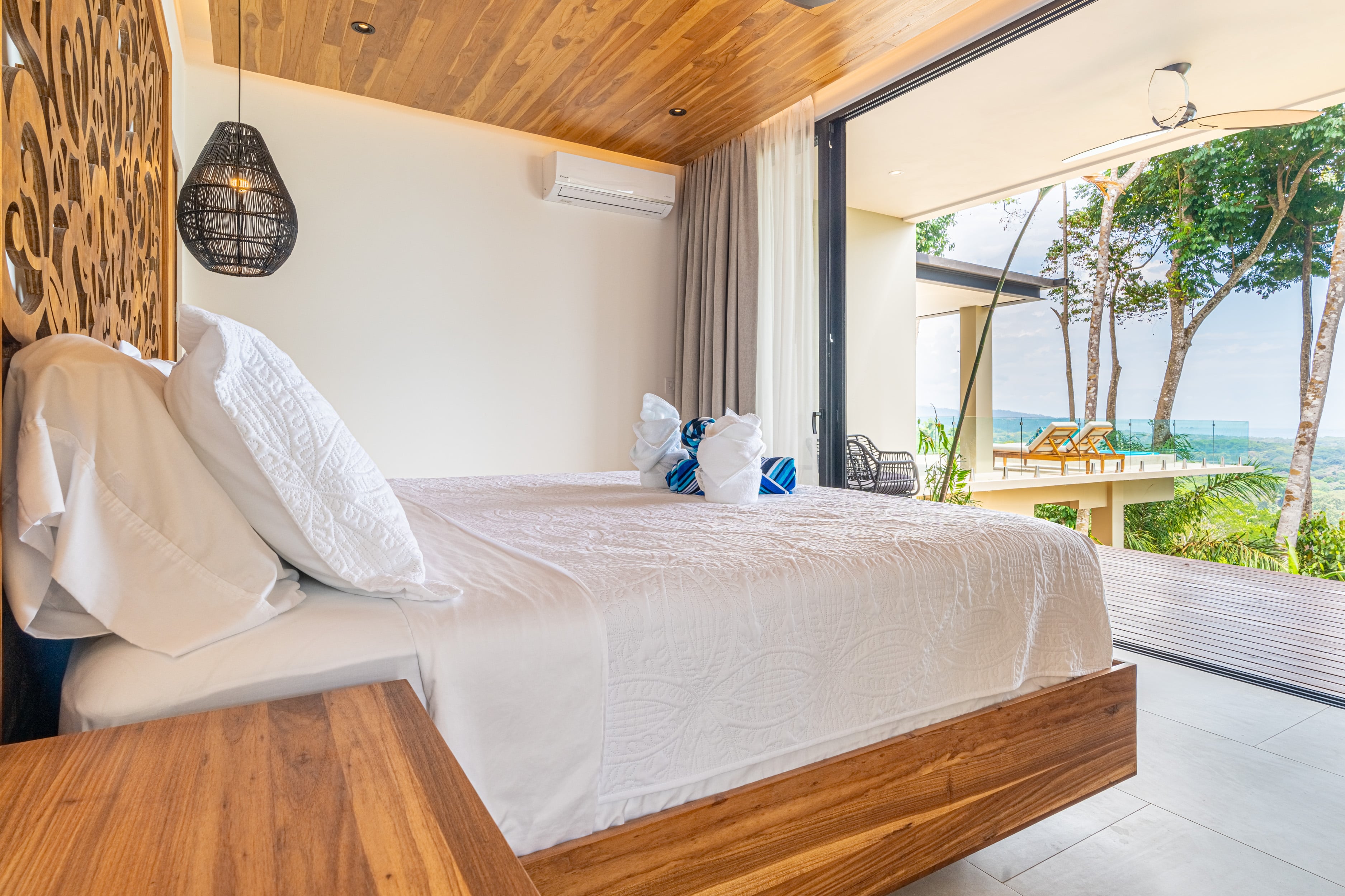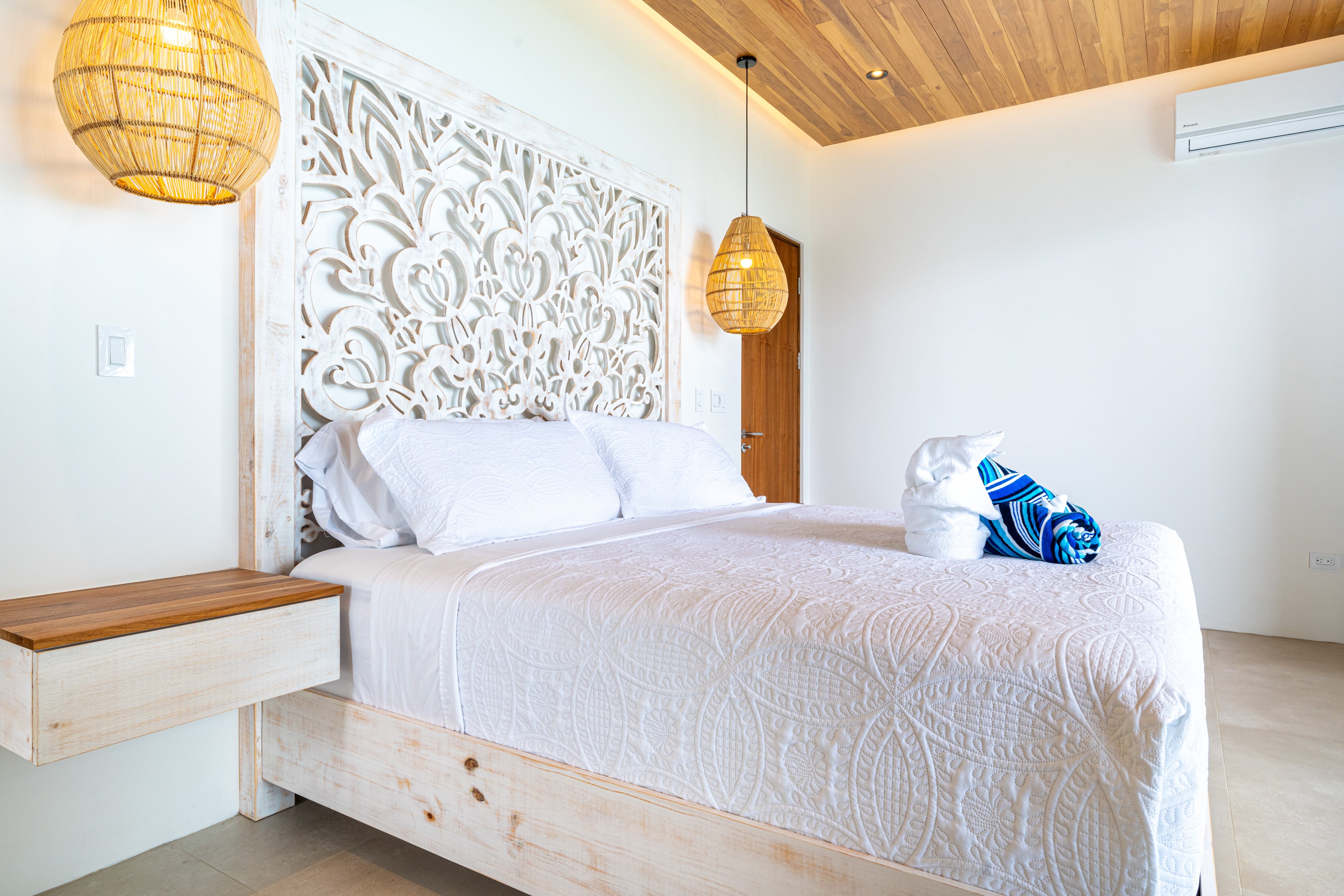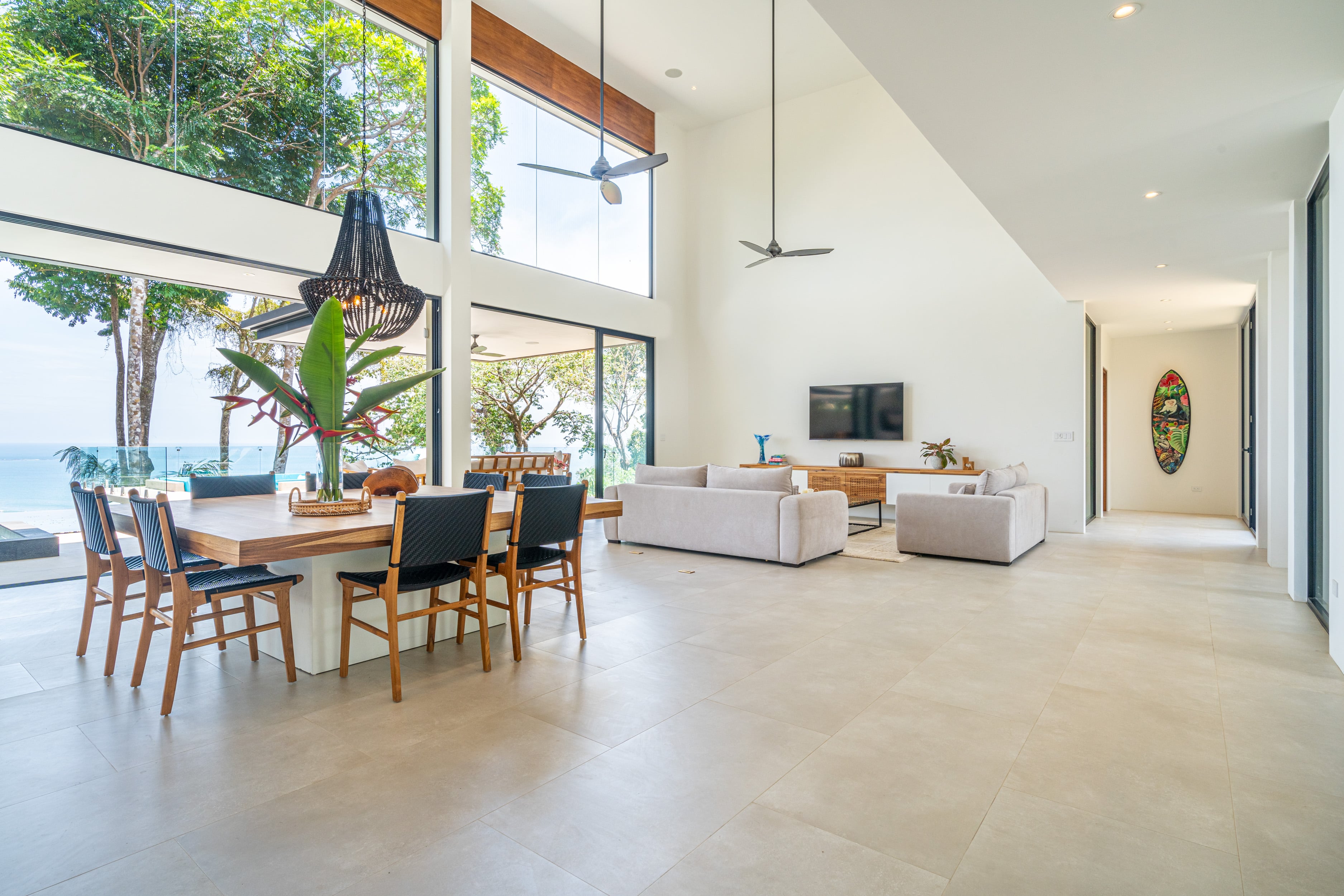 Entering Casa La Vista, you’ll find yourself surrounded by a harmonious blend of local and international artwork, setting the tone for a culturally rich and visually inspiring stay. Each of the four well-appointed bedrooms is adorned with floating king-size beds, each boasting its own distinct design elements, ensuring privacy and comfort. Additionally, the Oceanview office transforms seamlessly into a guest room with a full-size Murphy bed, perfect for relaxation or catching up on work while gazing out at the expansive sea.
