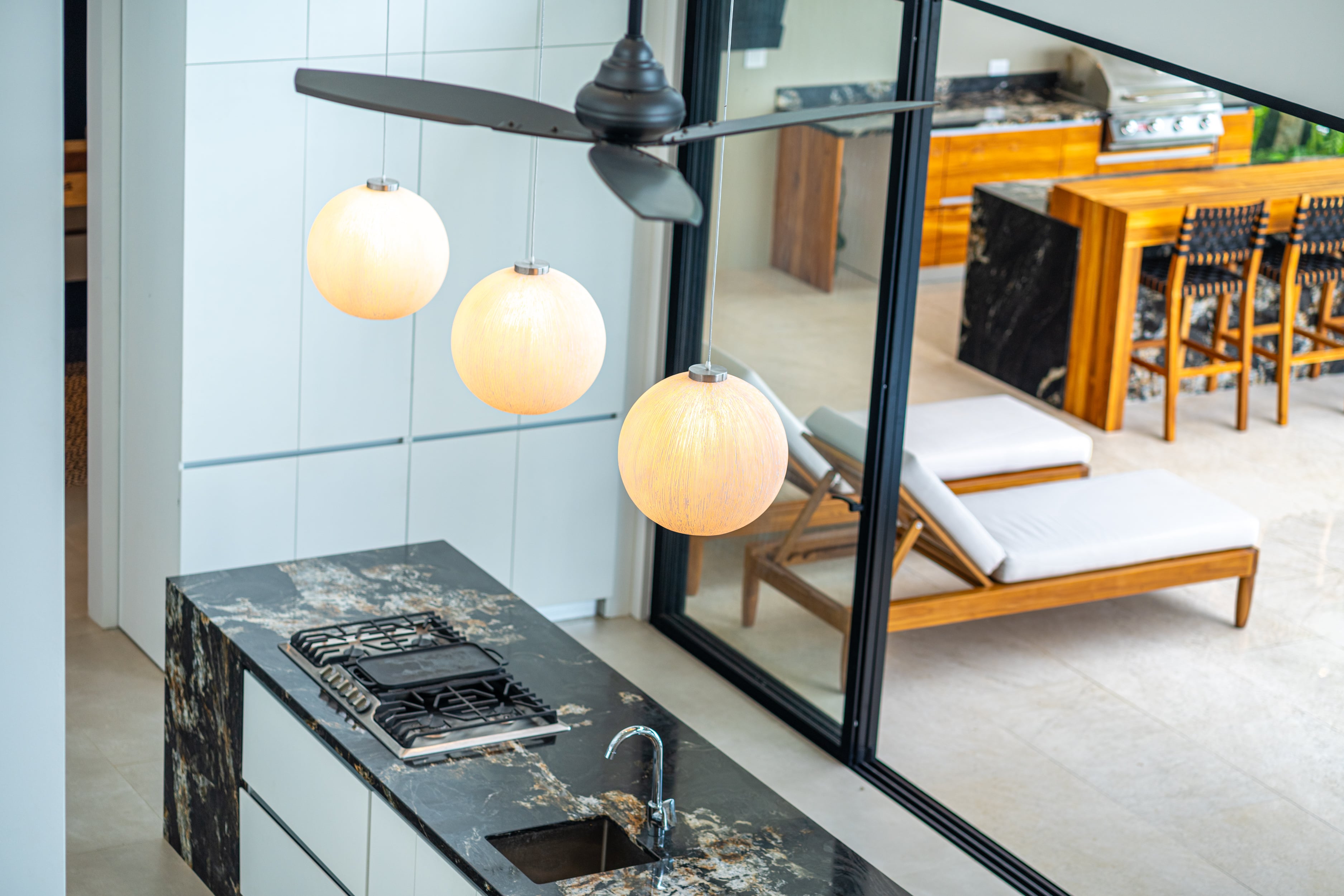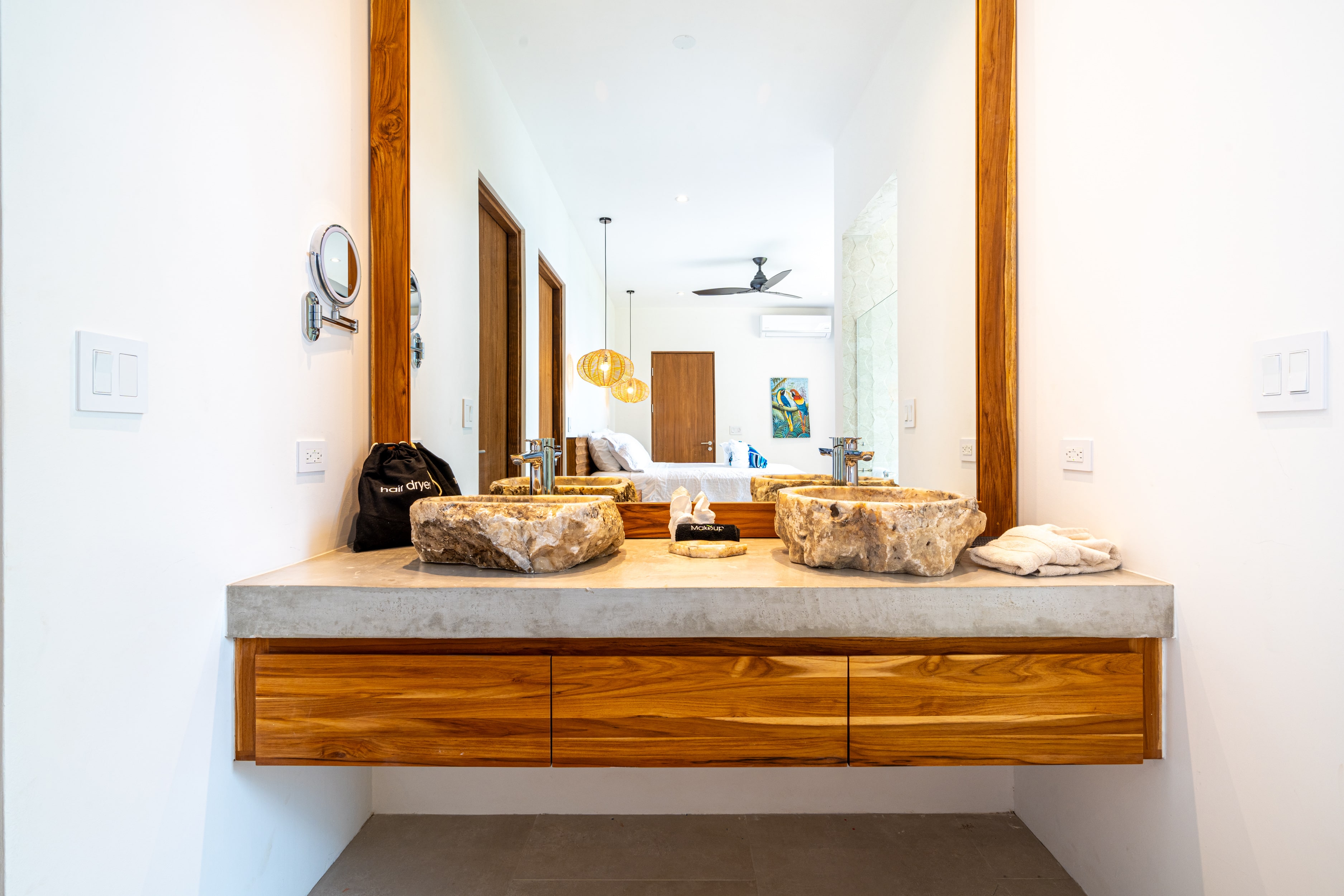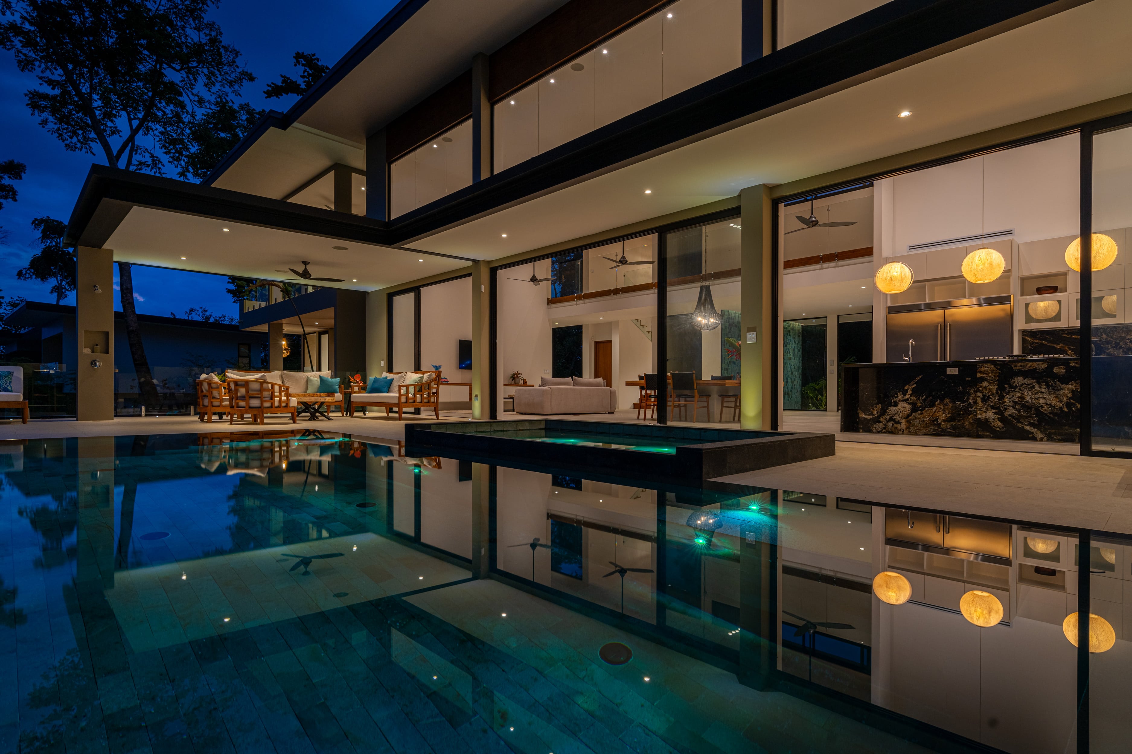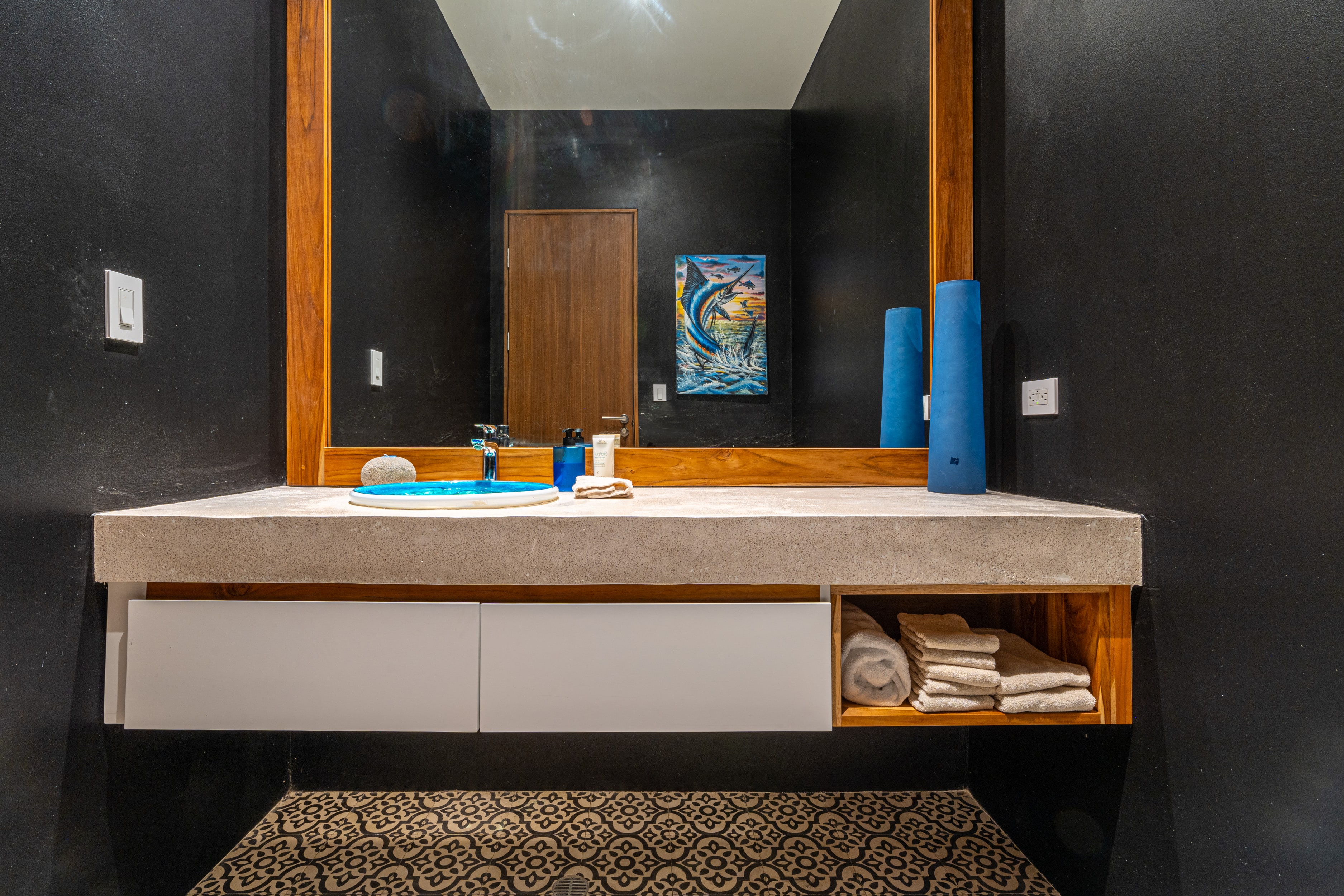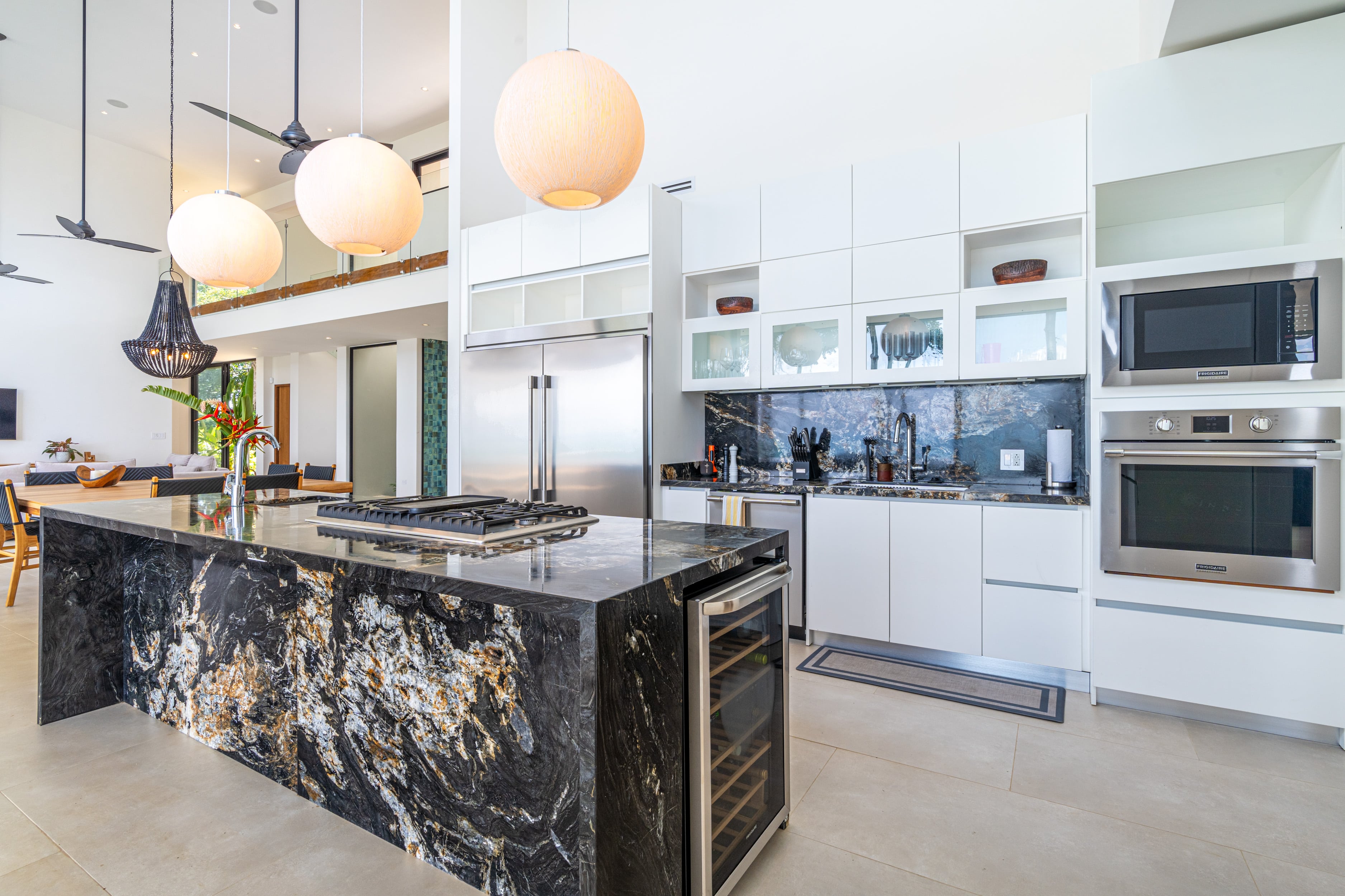 Entering Casa La Vista, you’ll find yourself surrounded by a harmonious blend of local and international artwork, setting the tone for a culturally rich and visually inspiring stay. Each of the four well-appointed bedrooms is adorned with floating king-size beds, each boasting its own distinct design elements, ensuring privacy and comfort. Additionally, the Oceanview office transforms seamlessly into a guest room with a full-size Murphy bed, perfect for relaxation or catching up on work while gazing out at the expansive sea.