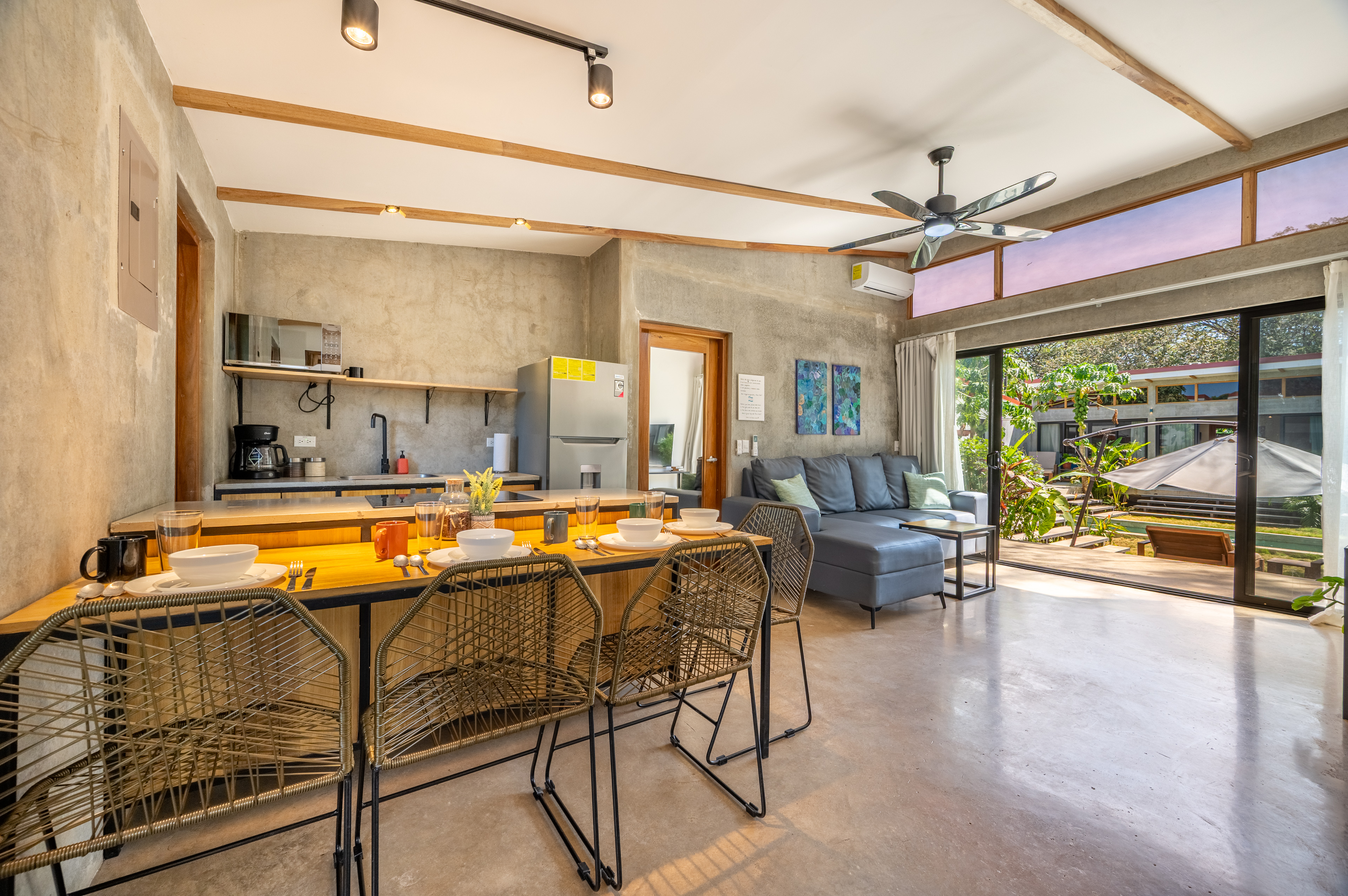 Each unit comes with its own private terrace or patio, allowing residents to enjoy the natural surroundings and extend their living space outdoors. The property also includes a designated parking lot, ensuring secure and convenient parking for both residents and guests. The peaceful neighborhood of Refundores offers a welcome escape from the hustle and bustle of Tamarindo, yet it is conveniently close to all the amenities the town has to offer.