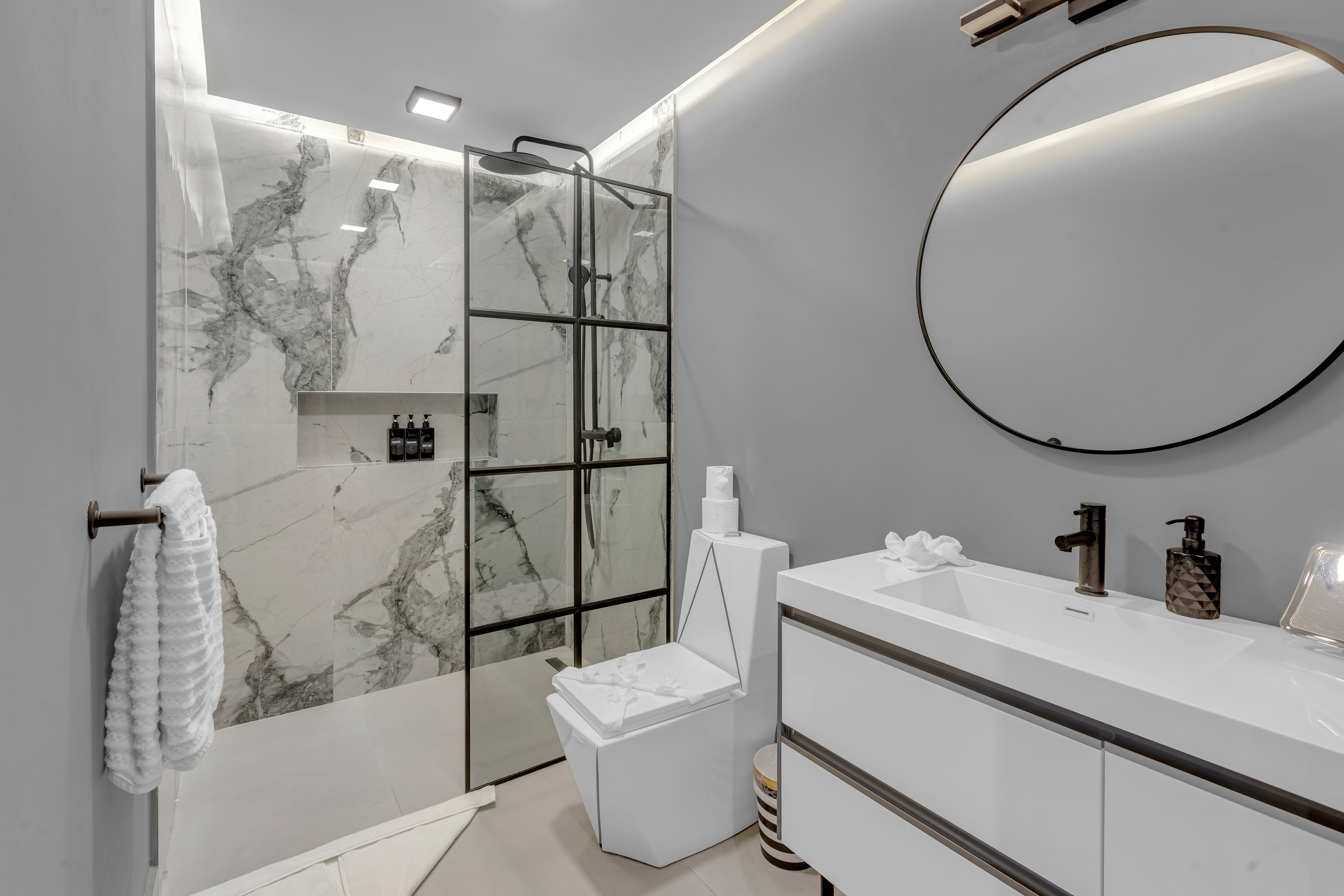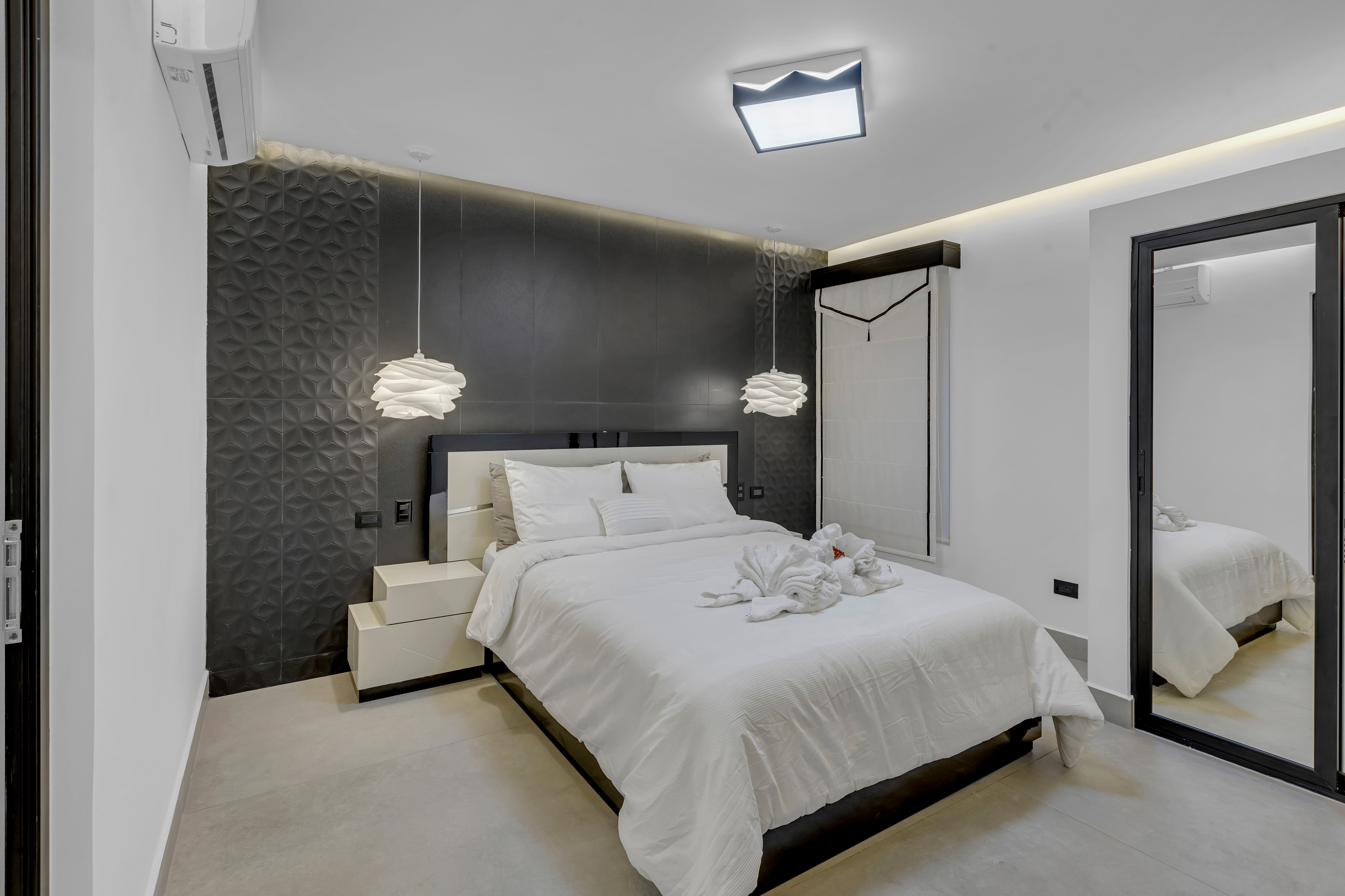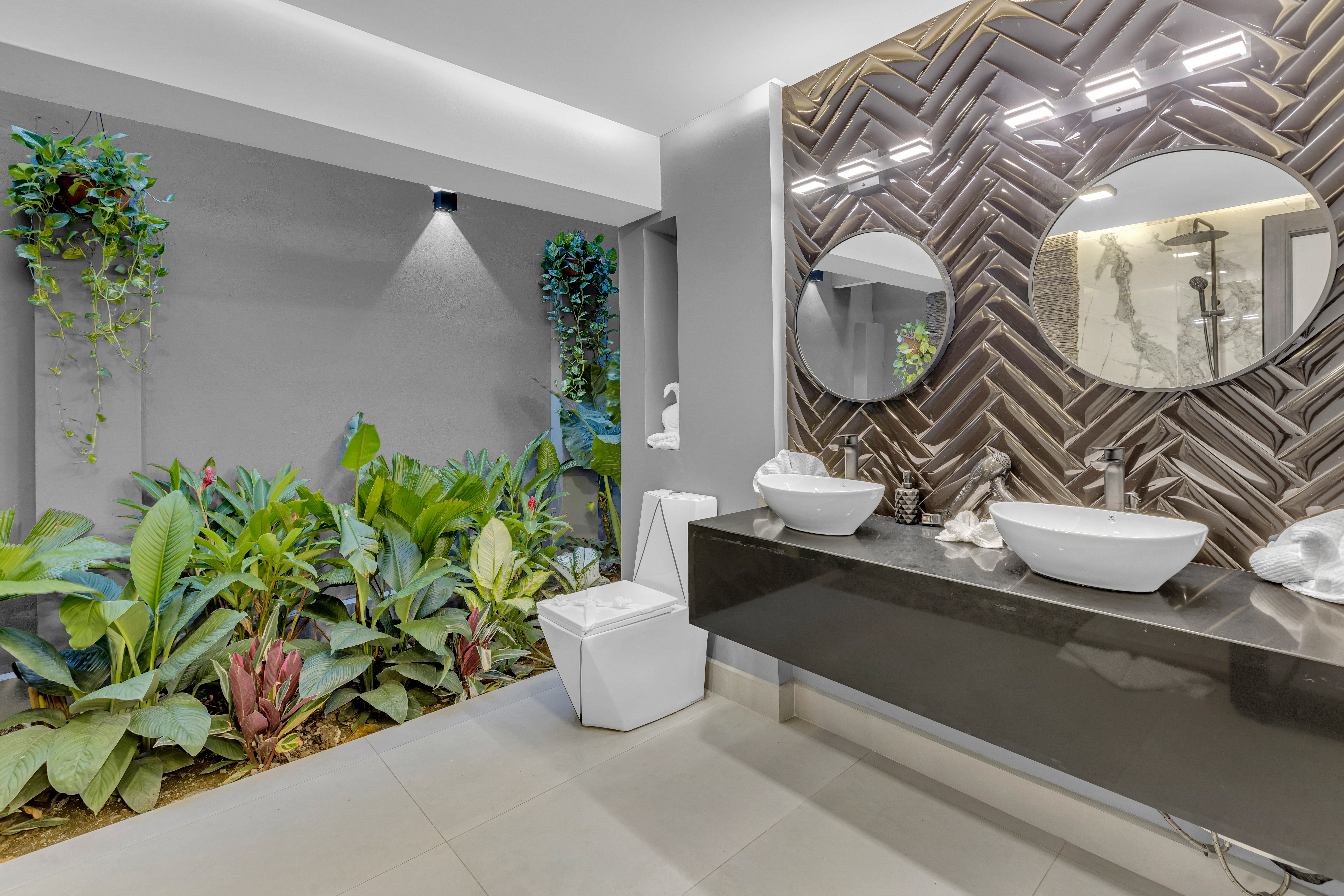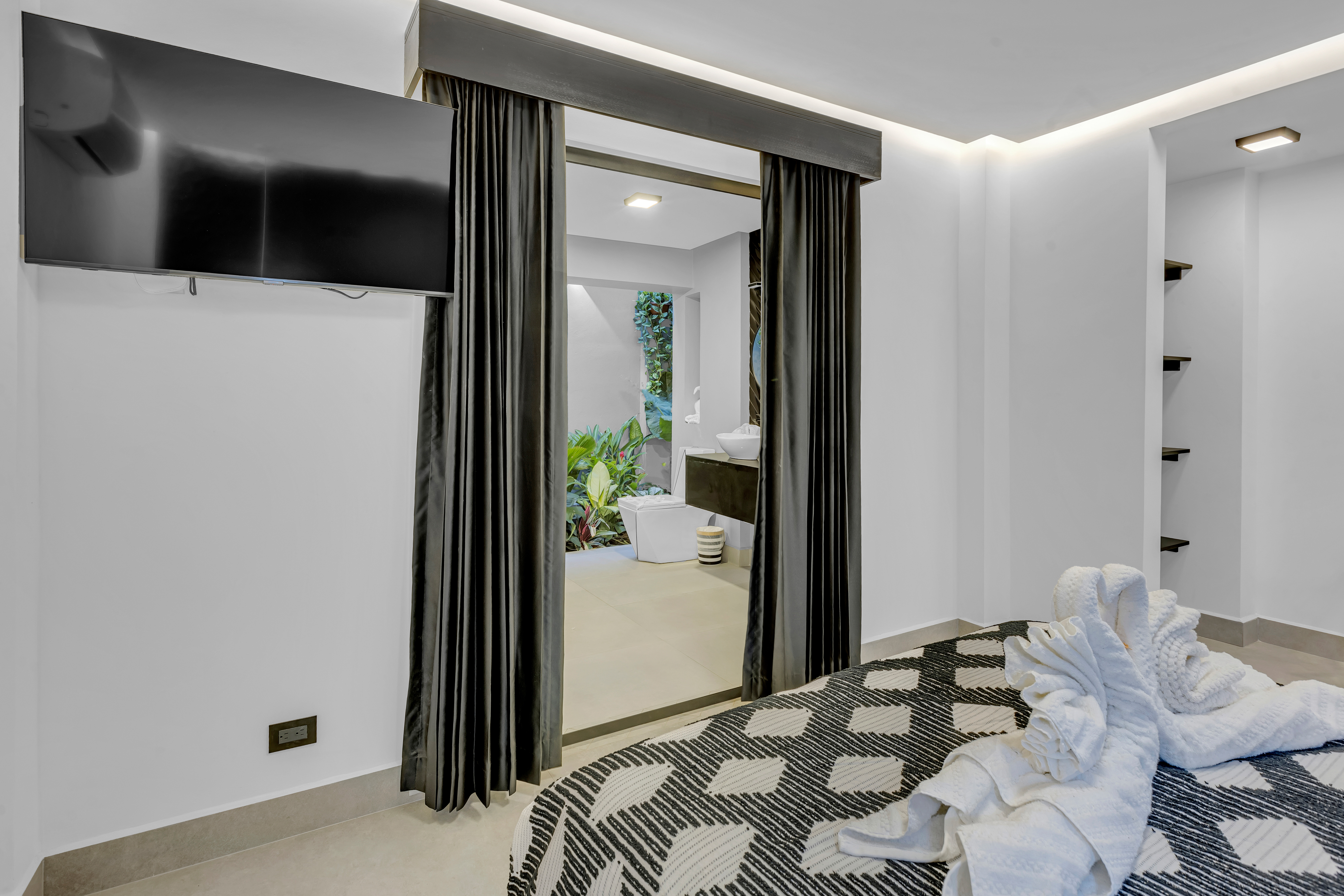 đ€ About the Villa Black & White: A luxury estate where sophisticated design meets natural tranquility. The villaâs sleek interiors, polished finishes, and minimalist style are balanced by the warmth of wood accents and the lush tropical setting. Upstairs, the oversized entertainment deck features a waterfall wall and ambient lightingâperfect for hosting dinners under the stars. The rooftop jacuzzi offers panoramic views of the surrounding hills and skyline.