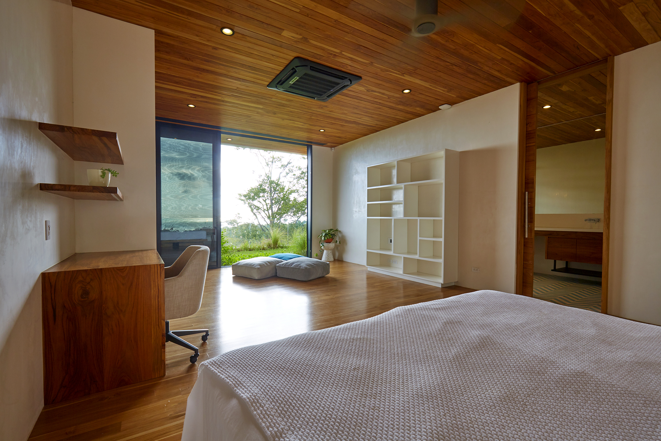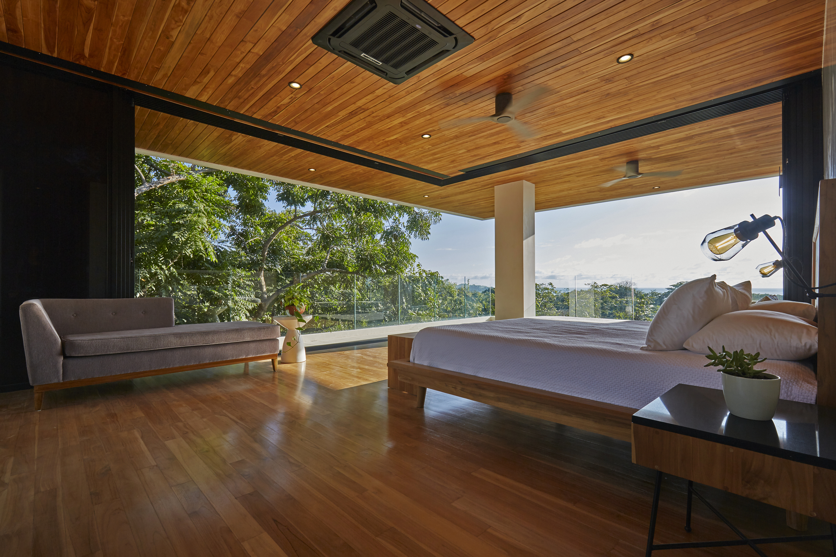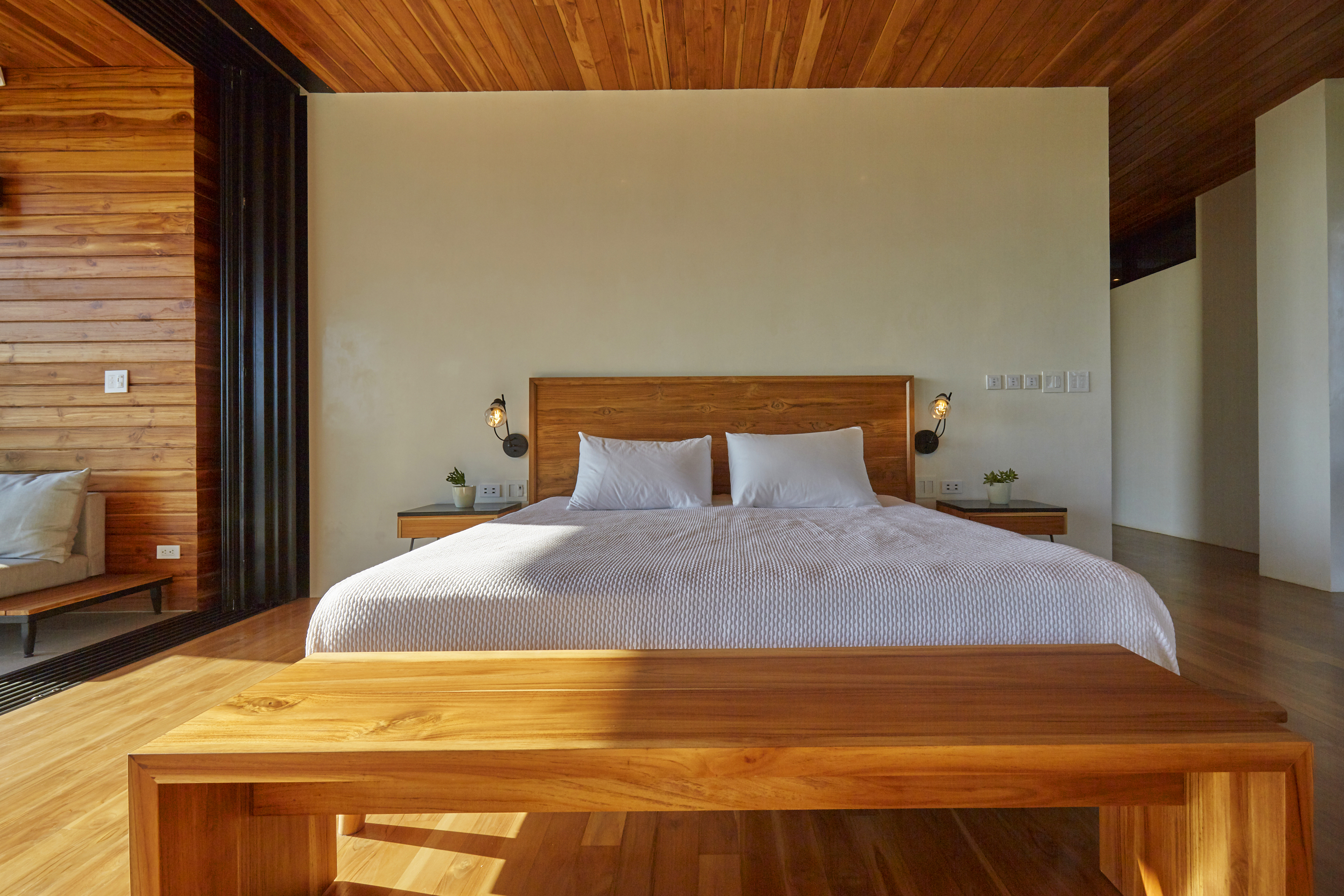 On the second floor, sit back and take in the view of the ocean from all of the three master bedrooms. Each has its own perspective of the southern point of Playa Guiones and the waves breaking on the reefs. On the 3rd floor there are two more bedrooms and a private rooftop Yoga Shala to meditate, breath and stretch. As a bonus, there is a secluded jungle apartment for guest or if you just want your own private living space to chill.