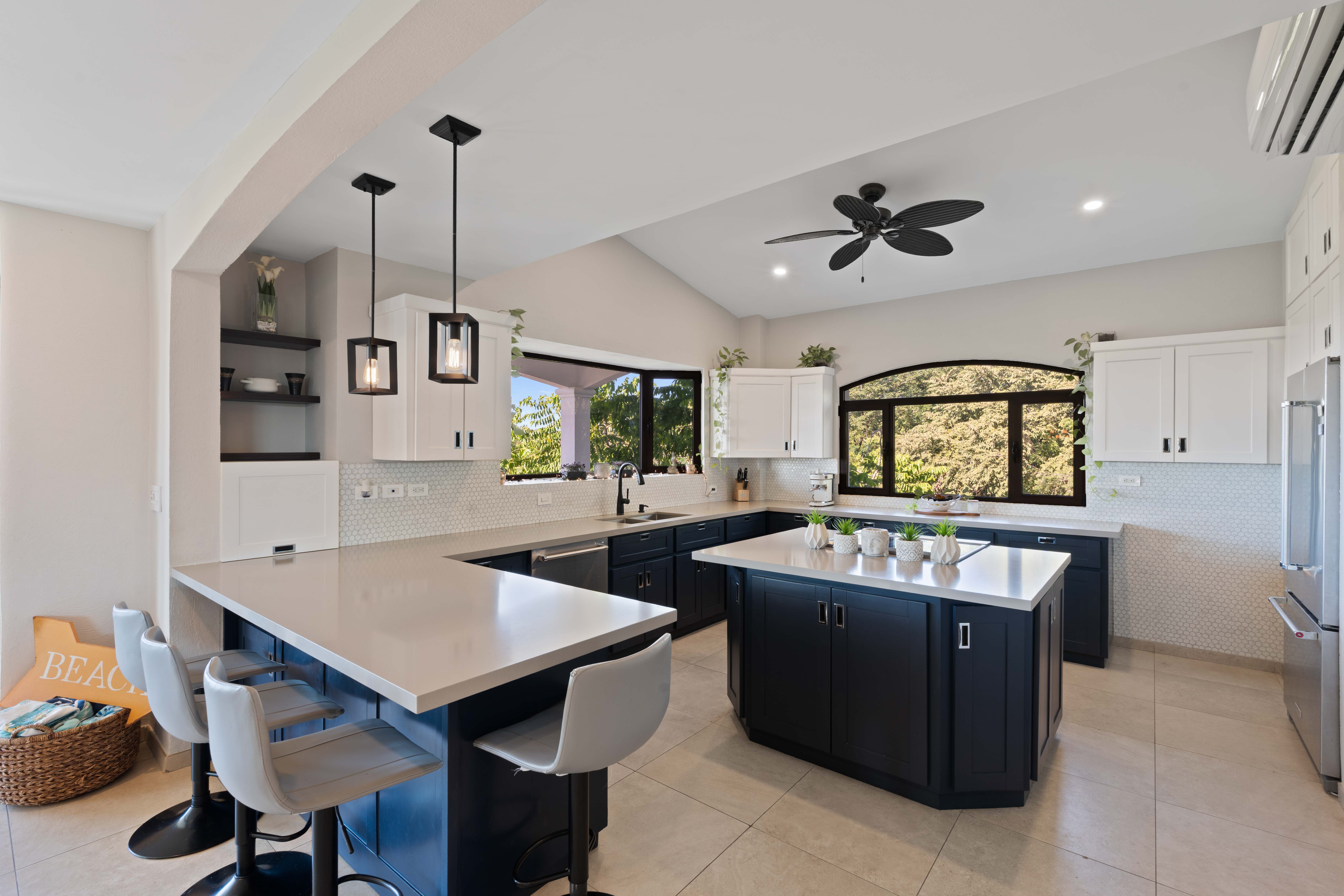 A separate lower-level garden suite adds valuable flexibility. With its own private entrance, this self-contained space includes two bedrooms, one bathroom, a full kitchen, laundry area, and ocean views, making it ideal for guests or rental use. The thoughtful layout and strong rental appeal make this property a standout option within Reserva Conchal.