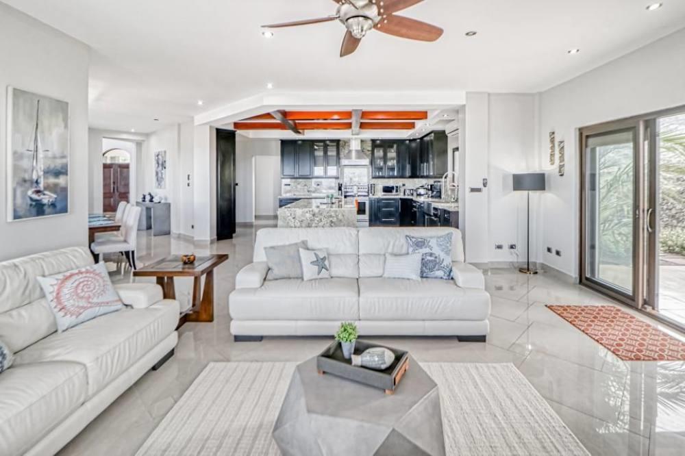 The house has LED lighting, a camera security system, and central air conditioning. In addition, each bedroom has a ceiling fan for climate control. This home also has an owner's closet and wine cellar that can be locked to keep private matters safe during rentals, as well as an oversized 3-car garage and a bodega. The Mar Vista community has been around for over 15 years and provides residents with 24-hour security, paved roads, underground utilities, and hiking trails around the beautiful green areas. Residents can also enjoy a delicious farm-to-table menu and a swim-up pool bar at the renowned restaurant Gracia.
