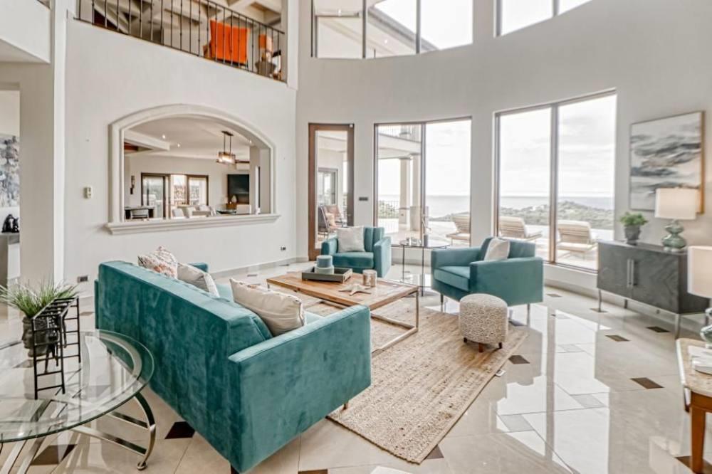 Casa Armonia is a custom-designed and recently updated home meticulously planned around breathtaking views of Costa Rica's most famous white sand beaches. This home's capacity to accommodate large groups is unparalleled, with 6 bedrooms, 6.5 bathrooms, large open spaces, and multiple living and lounge areas. The home has over 8400 square feet of living space, two heated saltwater pools, and multiple outdoor seating areas with stunning views of Playa Flamingo and Catalina Islands, making it ideal for relaxing and enjoying the beautiful seaside setting.