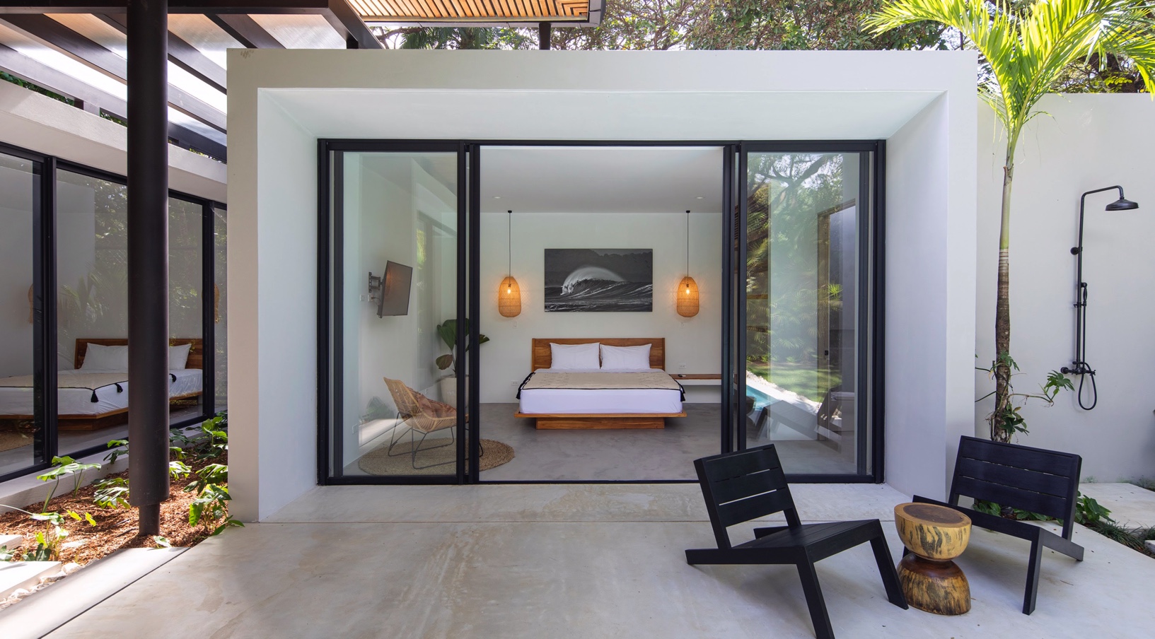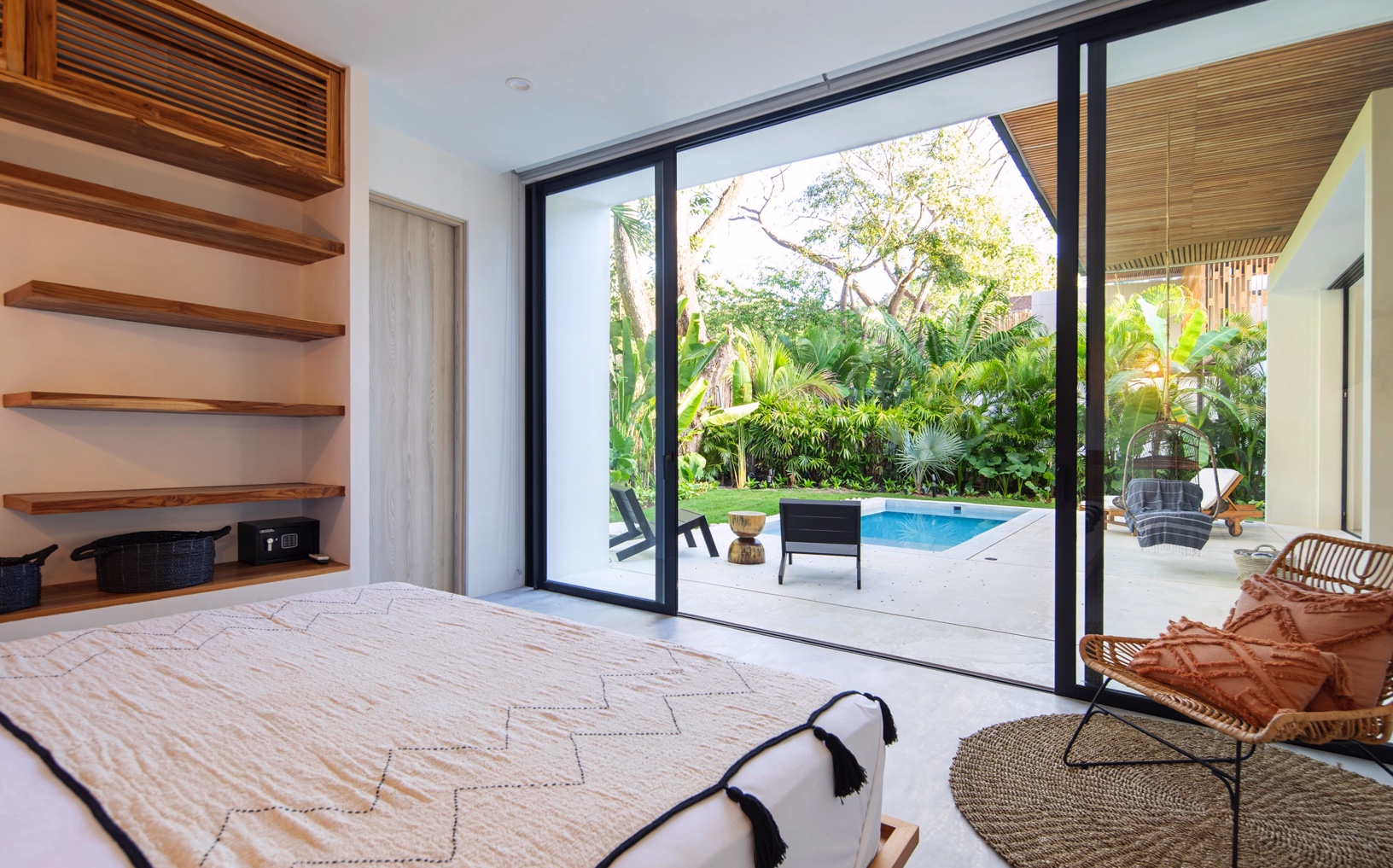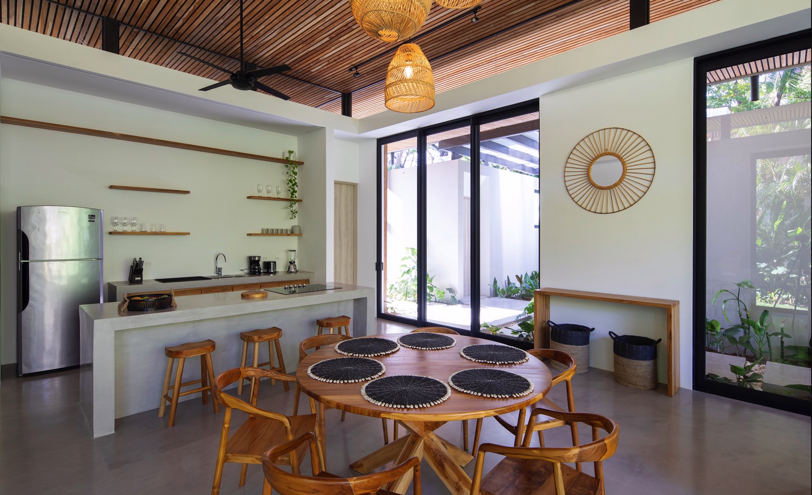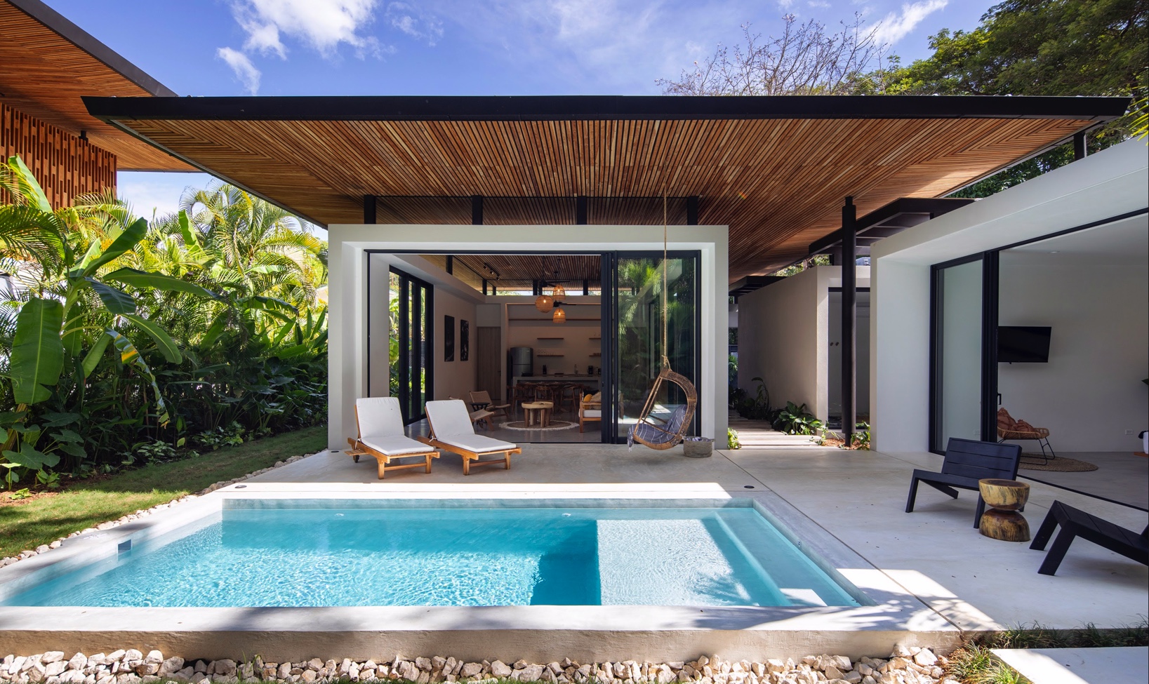 The design combines luxury with nature, creating open plan areas in both homes and luxurious finished throughout the common areas and bedrooms. They are located walking distance to the beach in the peaceful neighborhood of Playa Hermosa, making them a great family compound and a great rental property to generate income.