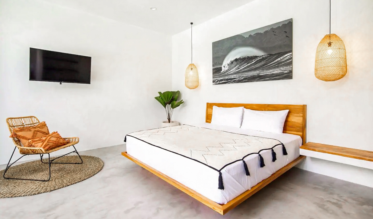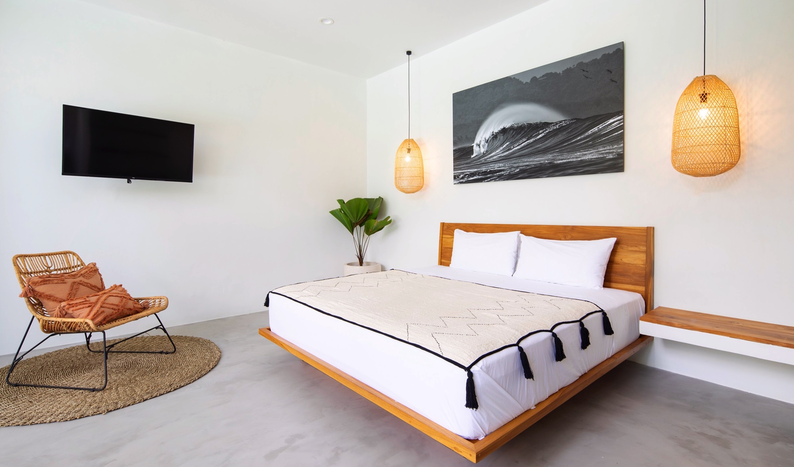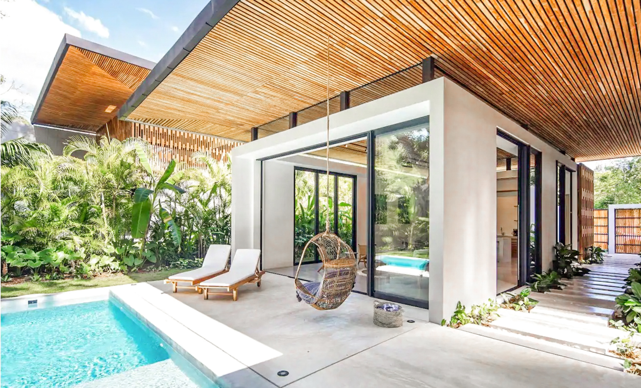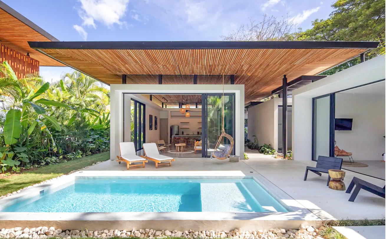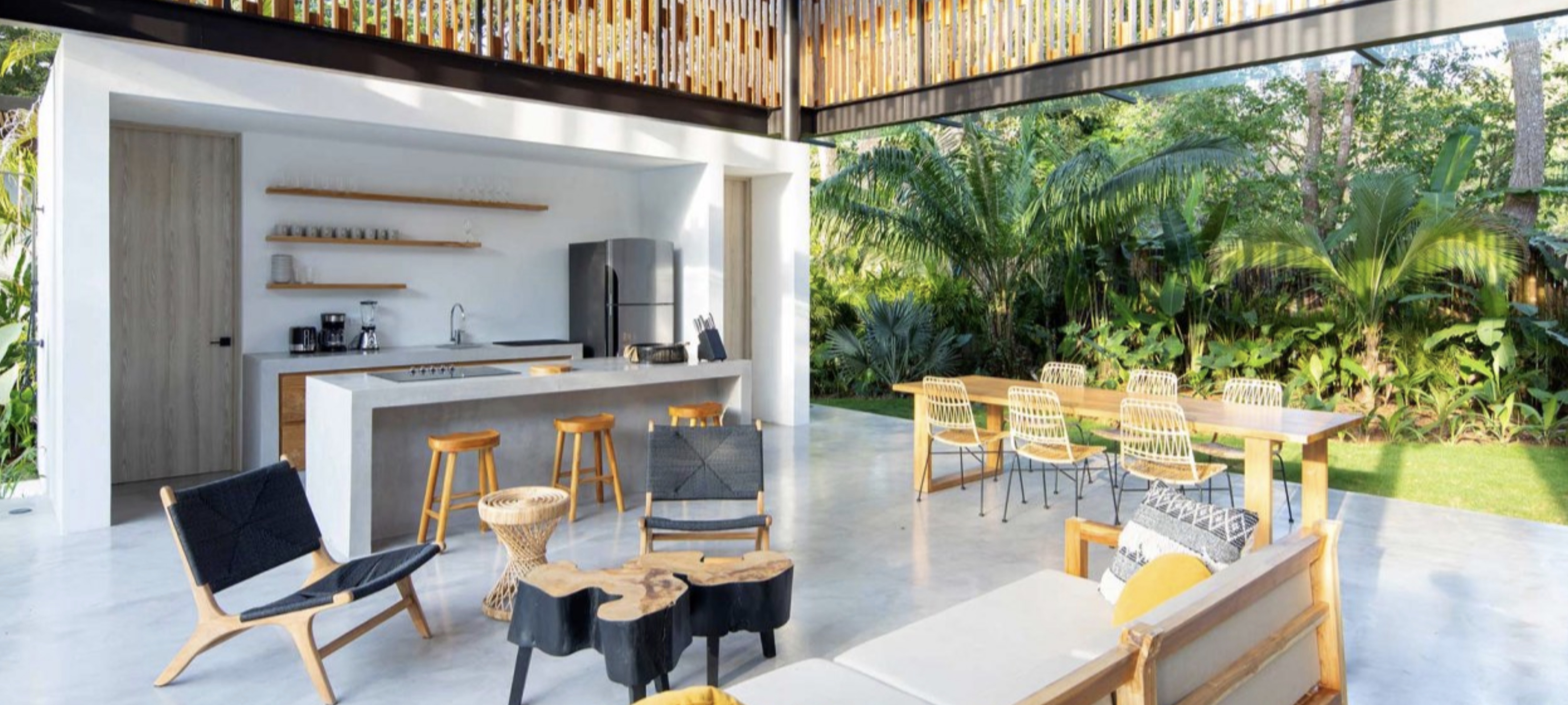 The design combines luxury with nature, creating open plan areas in both homes and luxurious finished throughout the common areas and bedrooms. They are located walking distance to the beach in the peaceful neighborhood of Playa Hermosa, making them a great family compound and a great rental property to generate income.