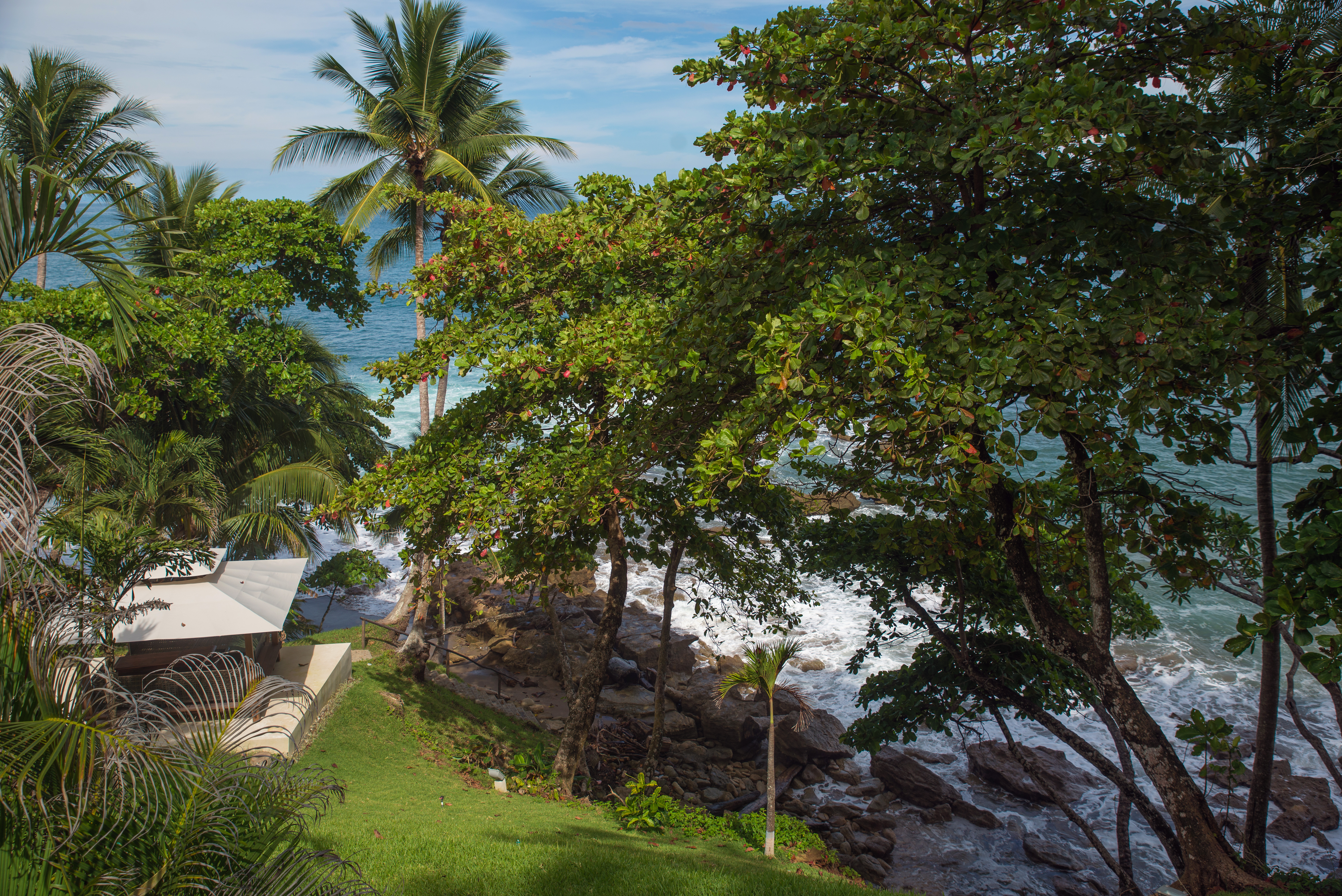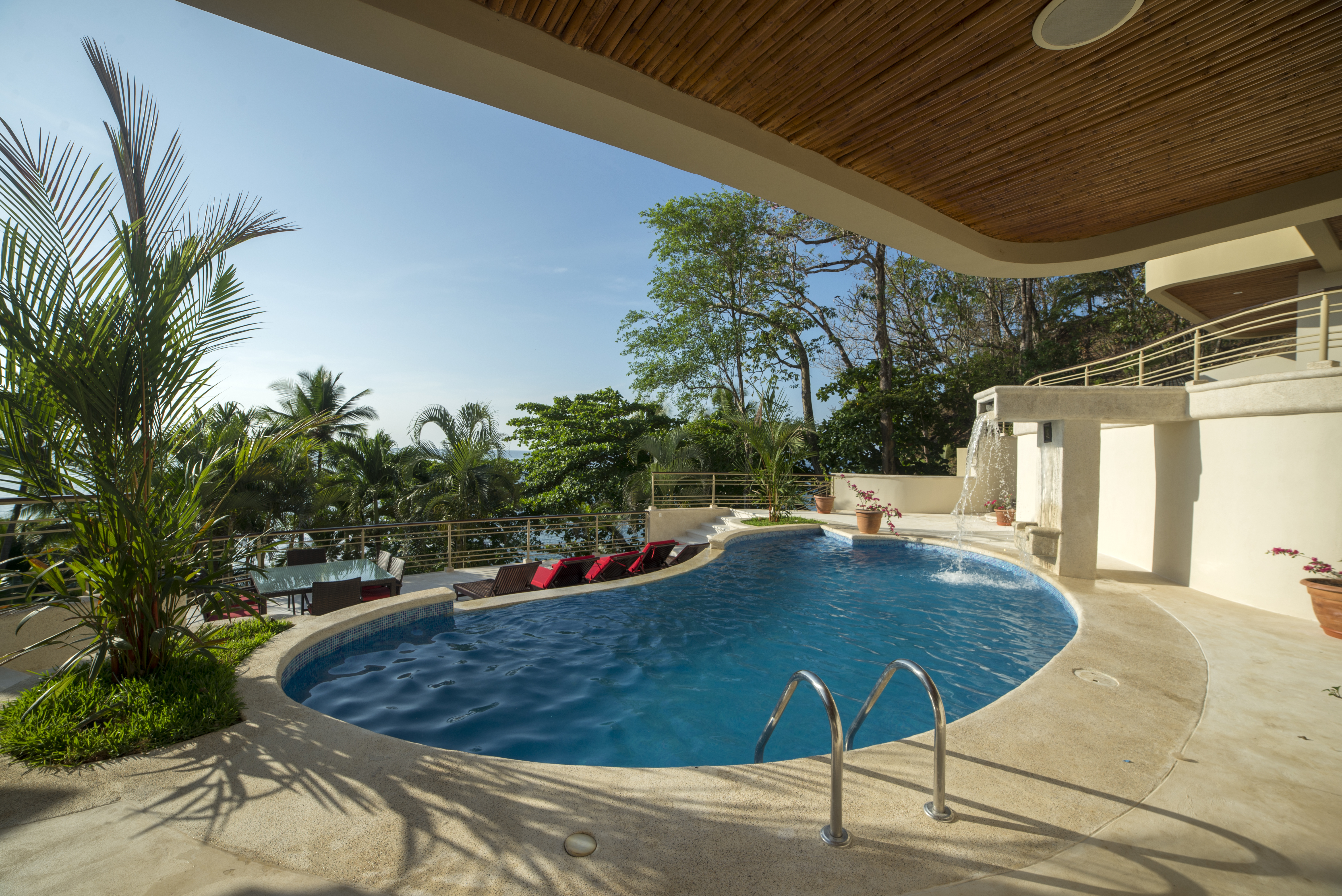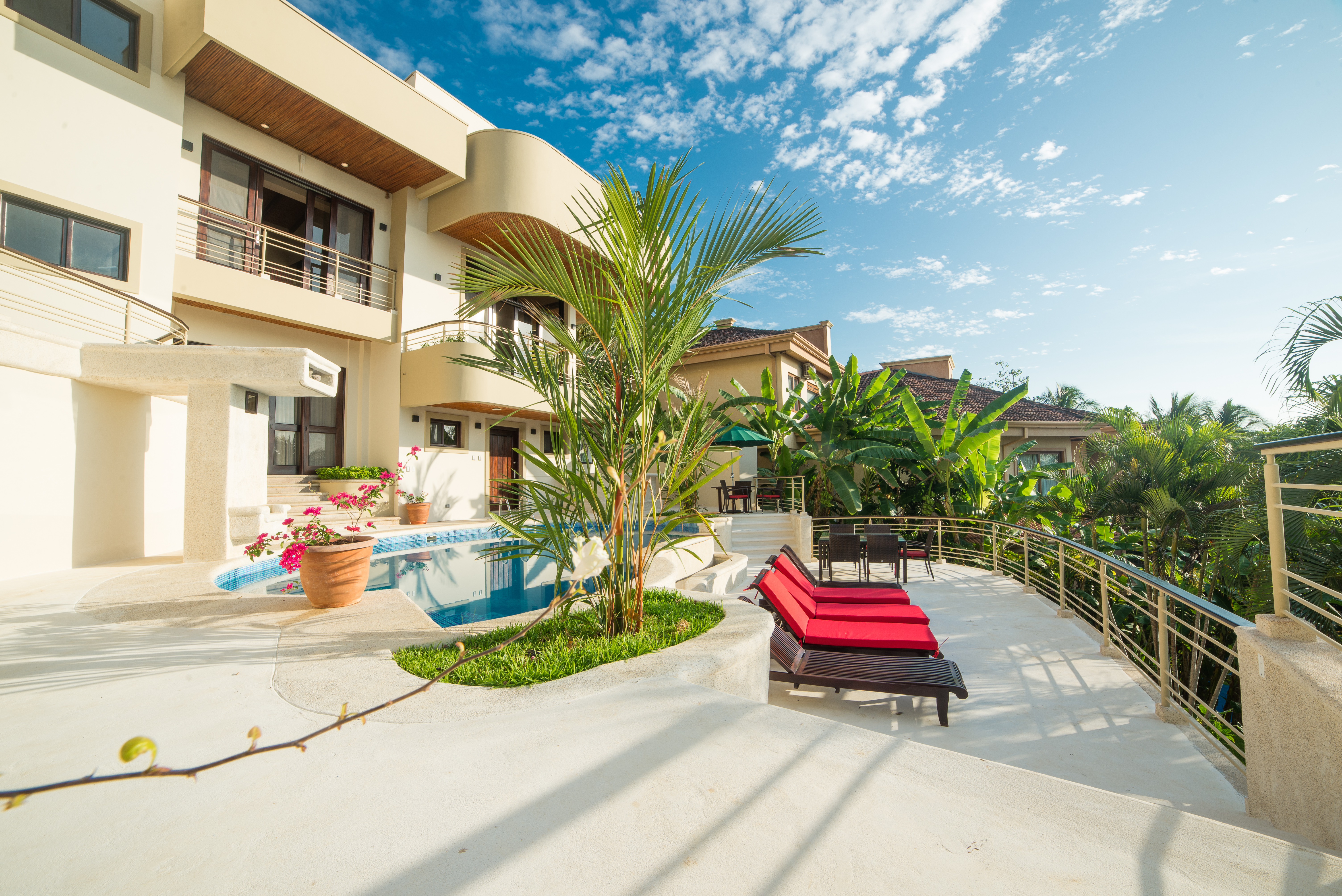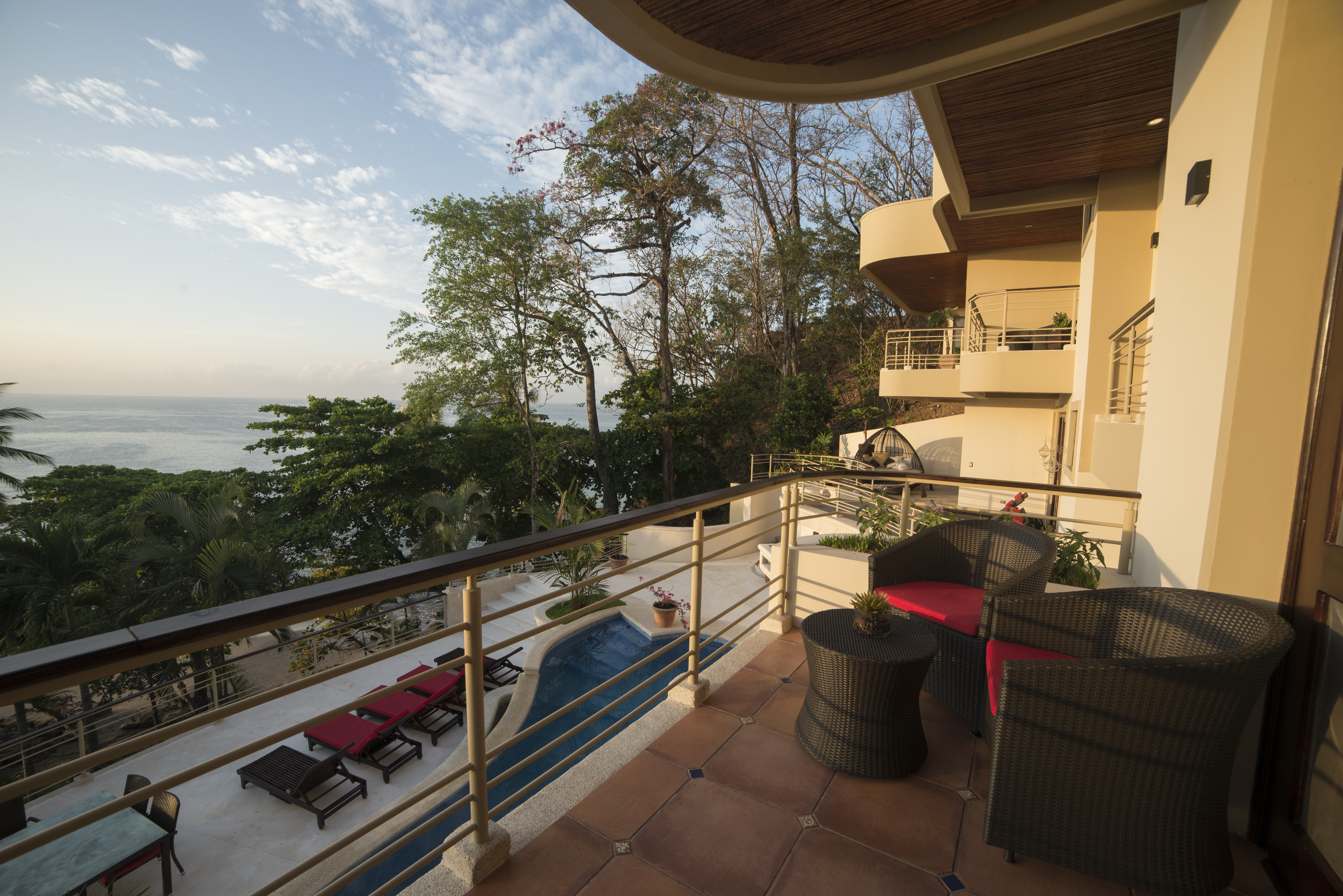 An Exceptional Modern Beachfront 3 Story Luxury Villa with 6 Private Bedrooms, 6.5 Baths & Large Pool -That Touches the Sand – In a Private Golf Resort Community Designed by a renowned architect, this Villa offers gorgeous blue water panoramic views from every room in the house. The separate bedrooms assure privacy and solace while being just steps from the lovely pool. From the pool there a just a few more steps to the sandy beach. The quality of construction and use of exotic hardwoods is obvious throughout the home. There are separate social areas for BBQs as well as a large living room for larger gatherings. The roomy chef’s is equipped with the most modern equipment of the highest quality. This gated community has its own water supply and 9-hole golf course and a beachfront luxury hotel. The restaurant in the Club House is excellent, overlooking the beach and sea. Nearby towns offer all the services such as hardware stores, supermarkets, gas stations, clinics, restaurants and much more Each bedroom has its own private bathroom and outdoor veranda to enjoy the ocean views. The photos do not do it justice. This house is a dream of comfortable living that looks out over unbelievable ocean vistas and the sound of the waves on the shore. People who visit this house just pause and take in the lovely feeling of being on the edge of the sea and surrounded by luxury. Here is a quick slide show video of the property and separate photos below – https://www.youtube.com/watch?v=--bk97a6ebQ