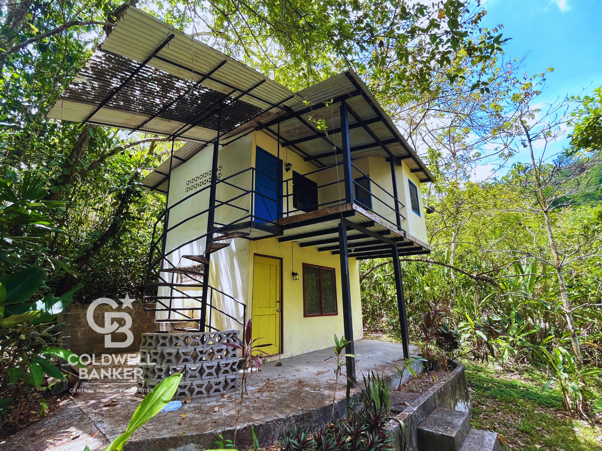 The 2-storey cabina building has a one-room apartment with bathroom (shower), kitchenette, and shady covered porch on the lower level. A spiral staircase leads to the upper level apartment, with 2 rooms, bathroom (shower), kitchenette and covered balcony porch with an amazing view, great for bird-watching. The cabinas are also excellent rentals.