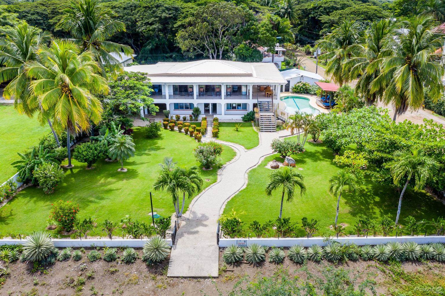 SOLD! One of the only few large beachfront estates! Also great bed-and-breakfast or boutique hotel opportunity! This 6-bedroom, 4-bathroom home is built on two beachfront lots, allowing for ample space for additional building, landscaping, and meandering through the grounds. There are very few beachfront lots left on Playa Potrero, and there is value of $900K in the land alone. This is a great deal!