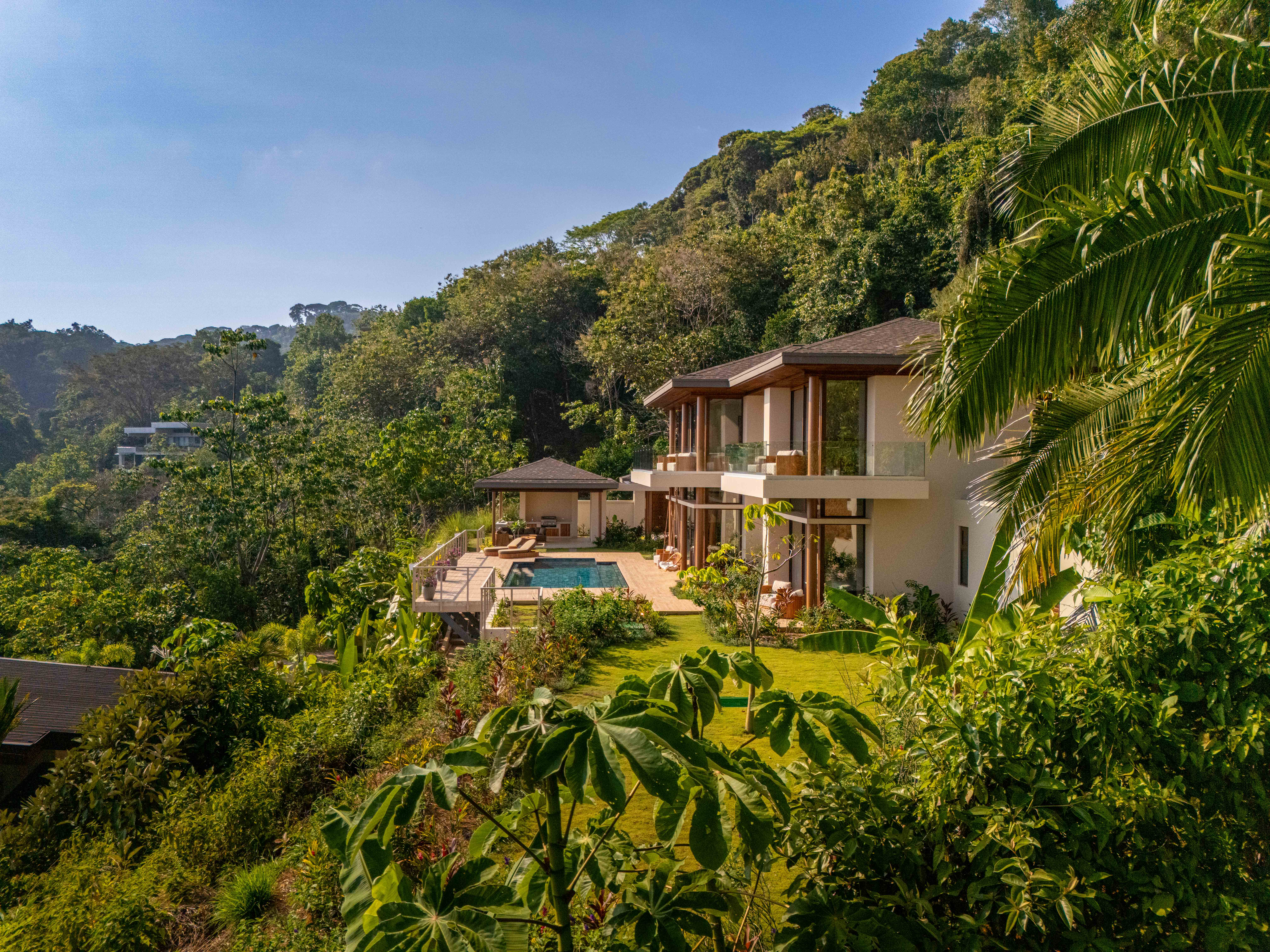 Tucked between the emerald embrace of the rainforest and the endless blue of the Pacific, Casa Bella Viña is not just a villa—it’s an experience. Located just minutes from the golden beaches and the vibrant surf town of Dominical, this five-bedroom retreat is where nature, luxury, and adventure blend seamlessly, inviting you to step away from the ordinary and into a world of warmth, wonder, and unforgettable memories. Imagine waking up to the soft hum of the jungle—birds calling from the canopy, waves rolling in the distance, golden light filtering through the trees.