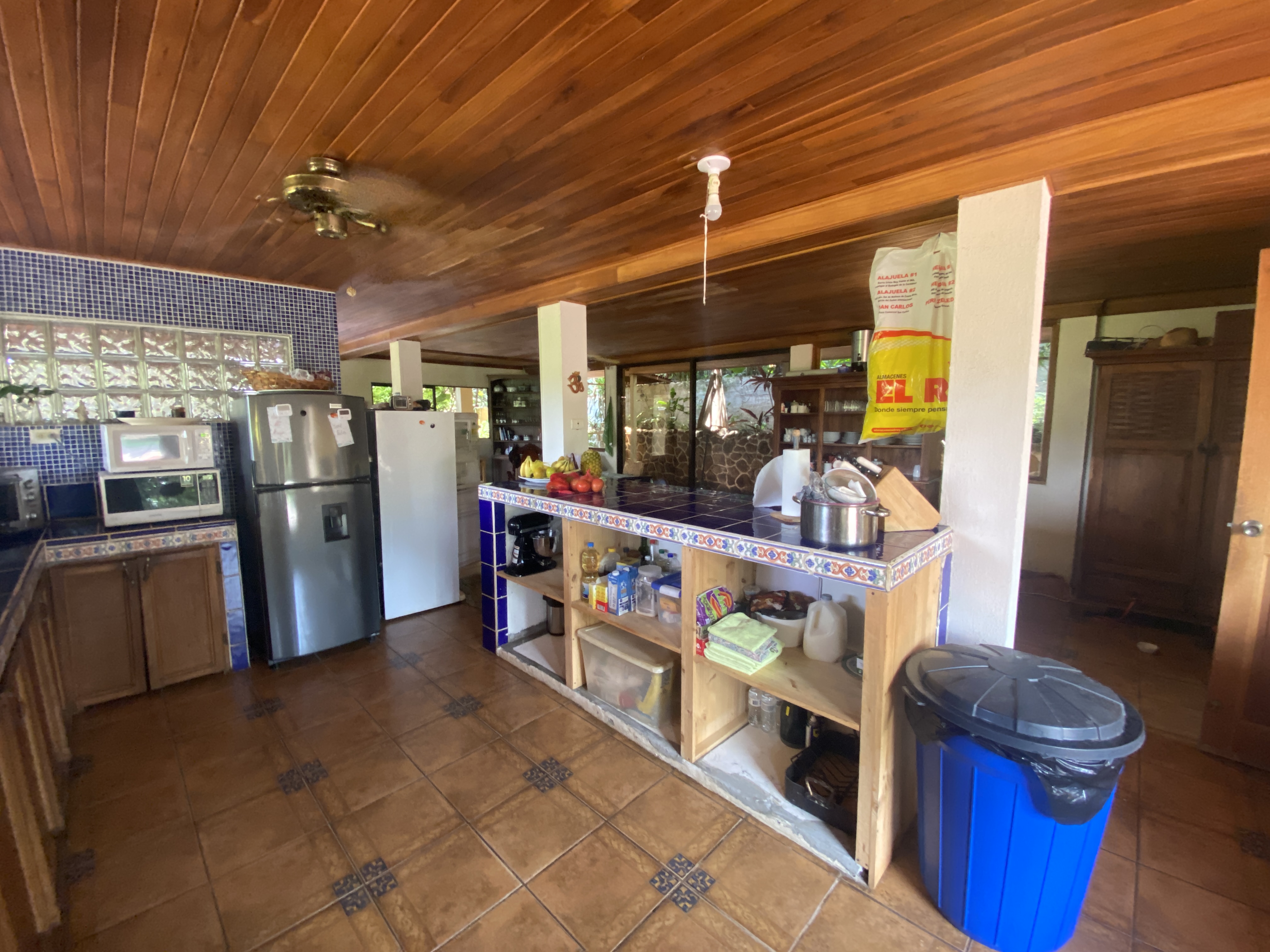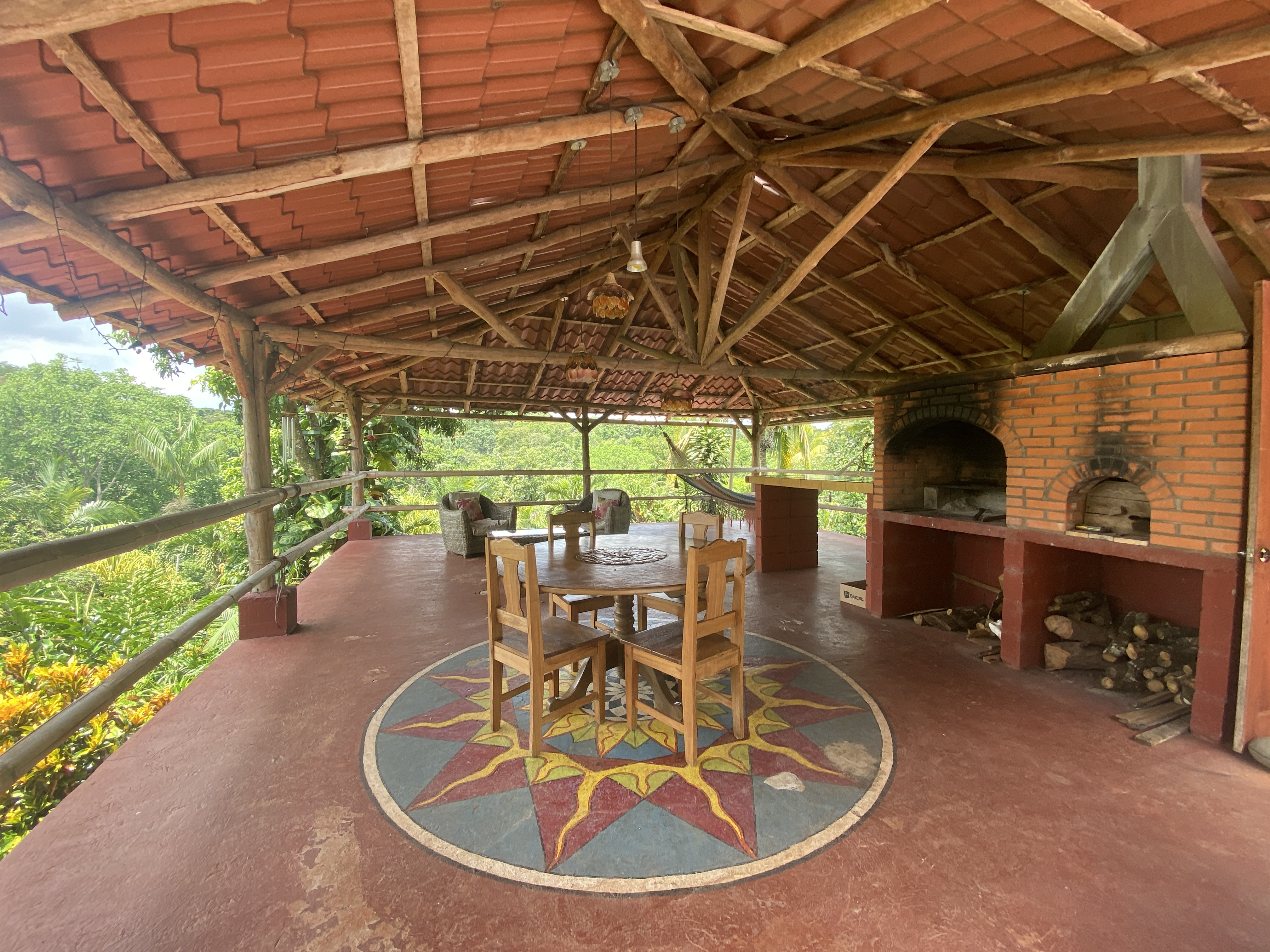 Guests can relax by the large swimming pool, enjoy meals in the expansive rancho complete with a full kitchen and pizza oven, or wander through the organic greenhouse growing fresh veggies. Additional amenities include a private well, solar-powered hot water, an irrigation system, and ample guest parking.