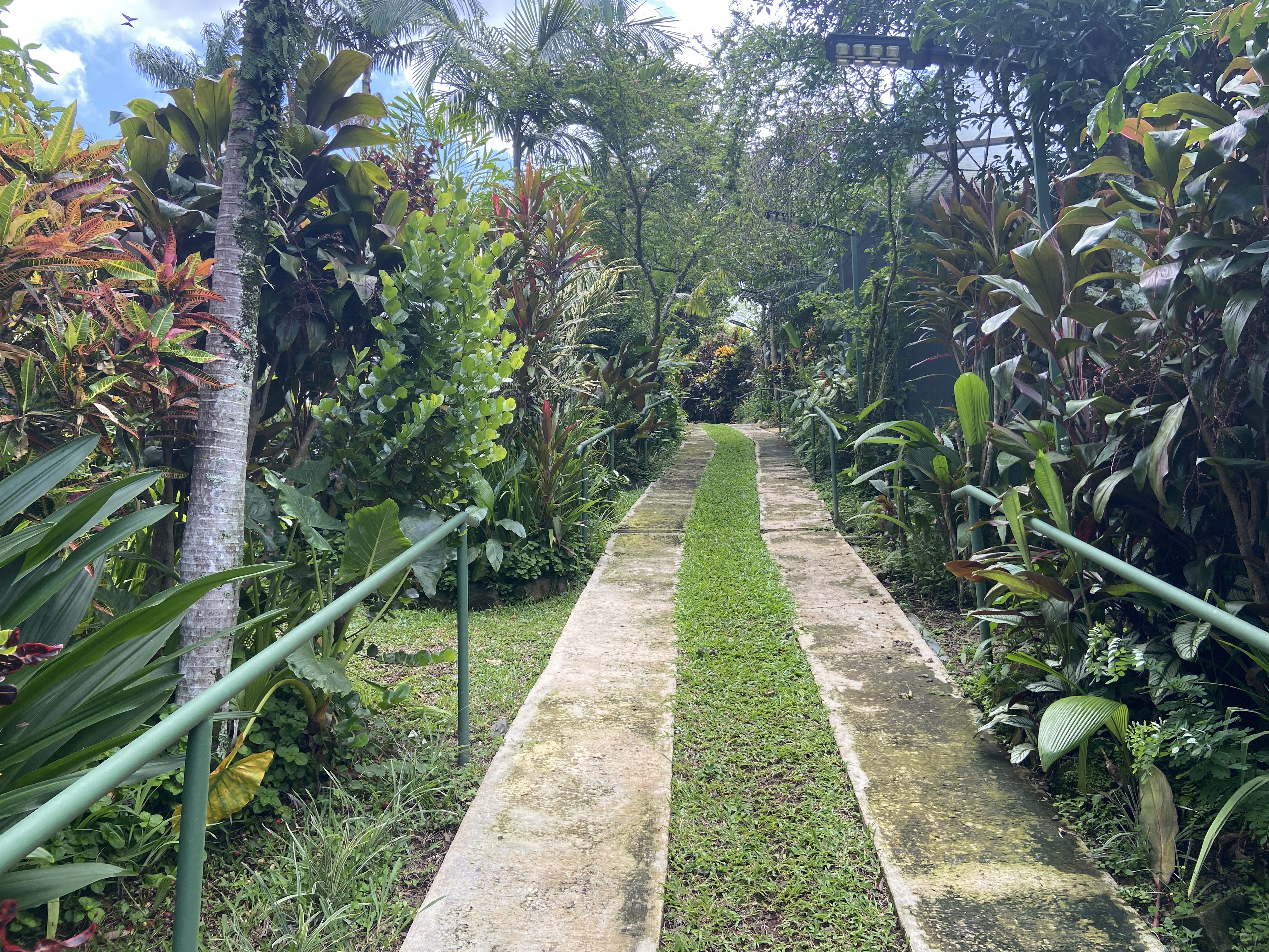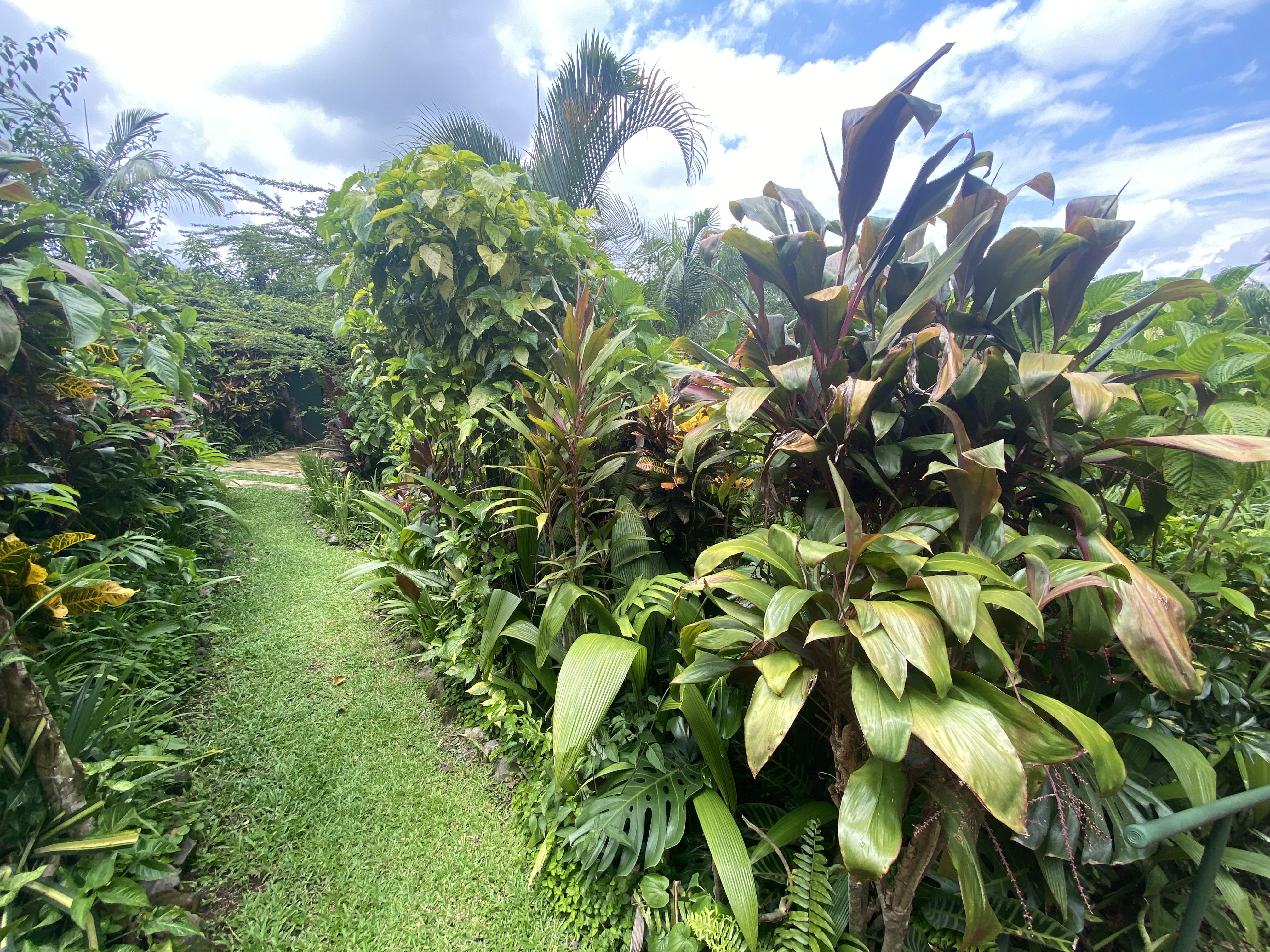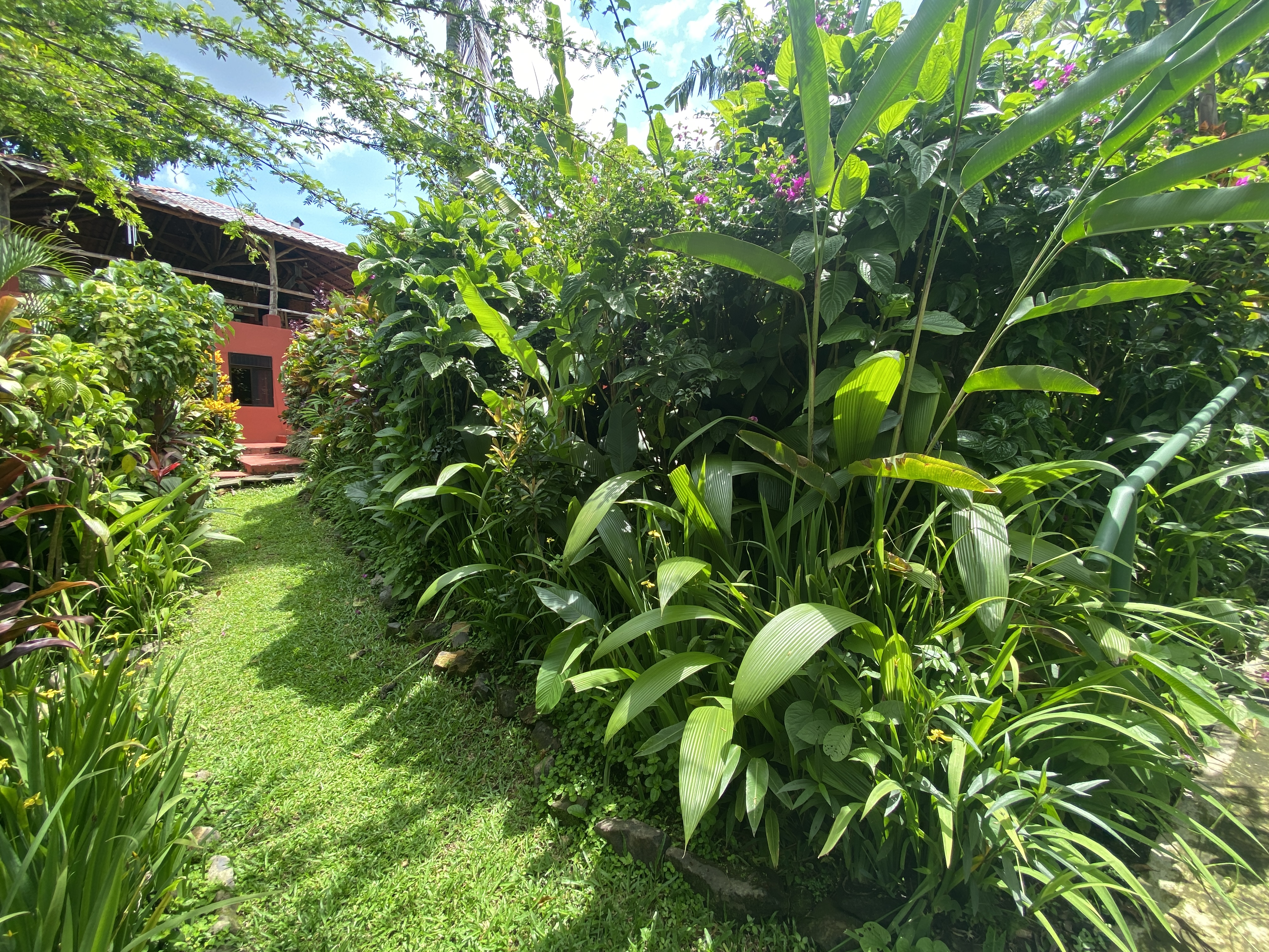 Nestled within a lush, tropical garden filled with a wide variety of fruit trees—mango, papaya, orange, lime, avocado, and more—this property exudes a serene, nature-filled ambiance.