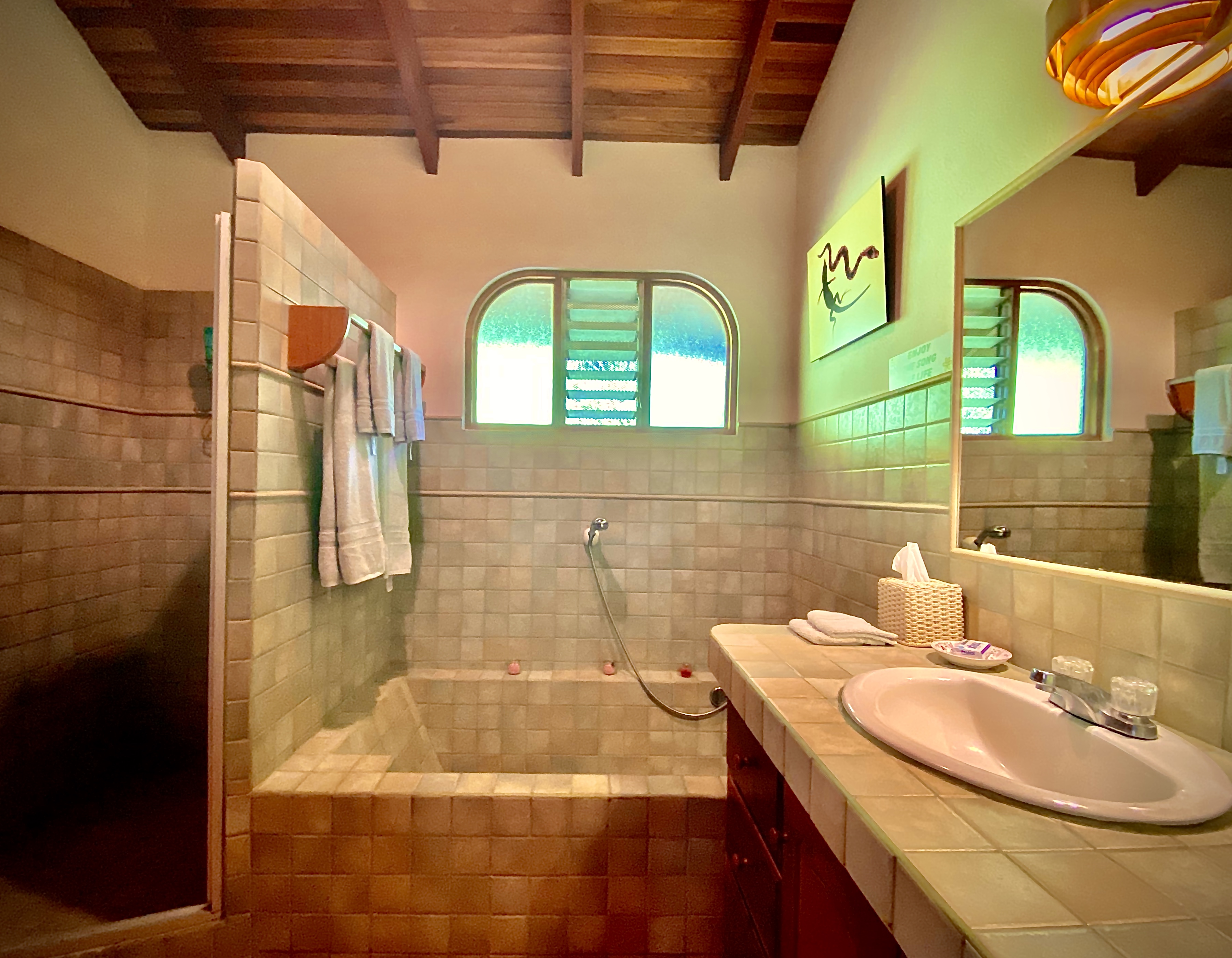 • Guest Home 1: 3 bedrooms, 2 baths, artisanal wooden ceilings, globally inspired decor