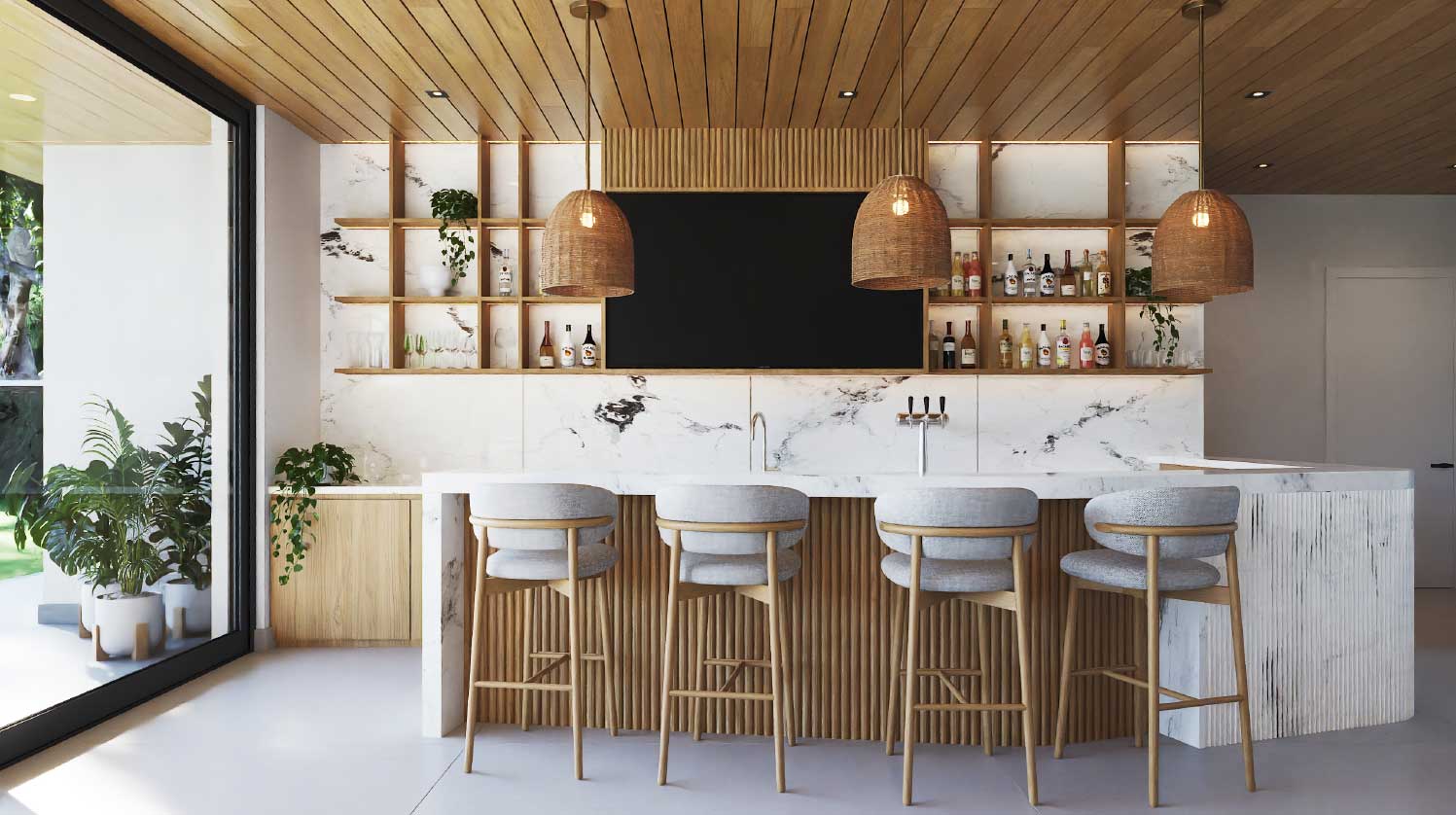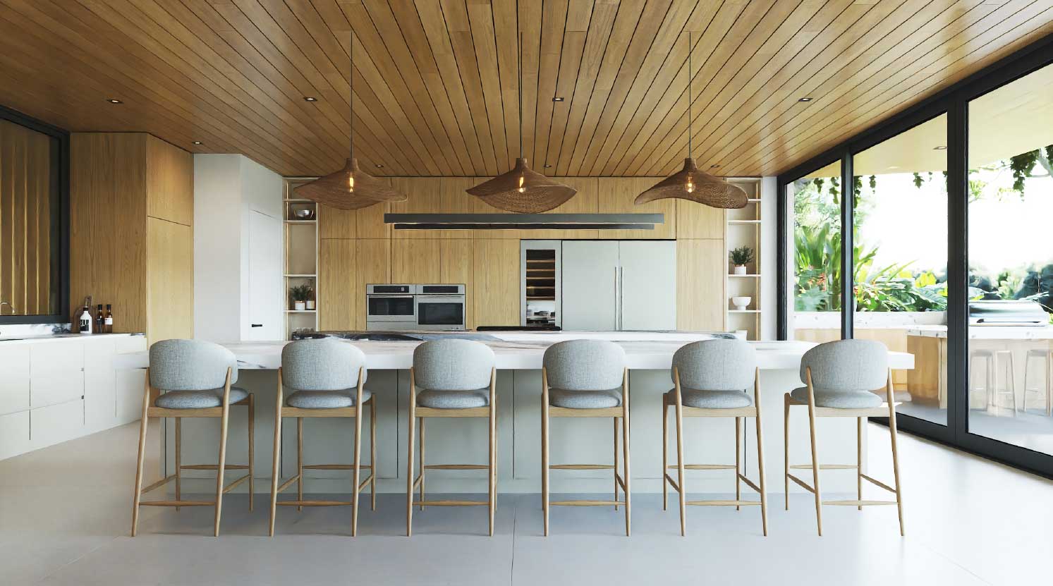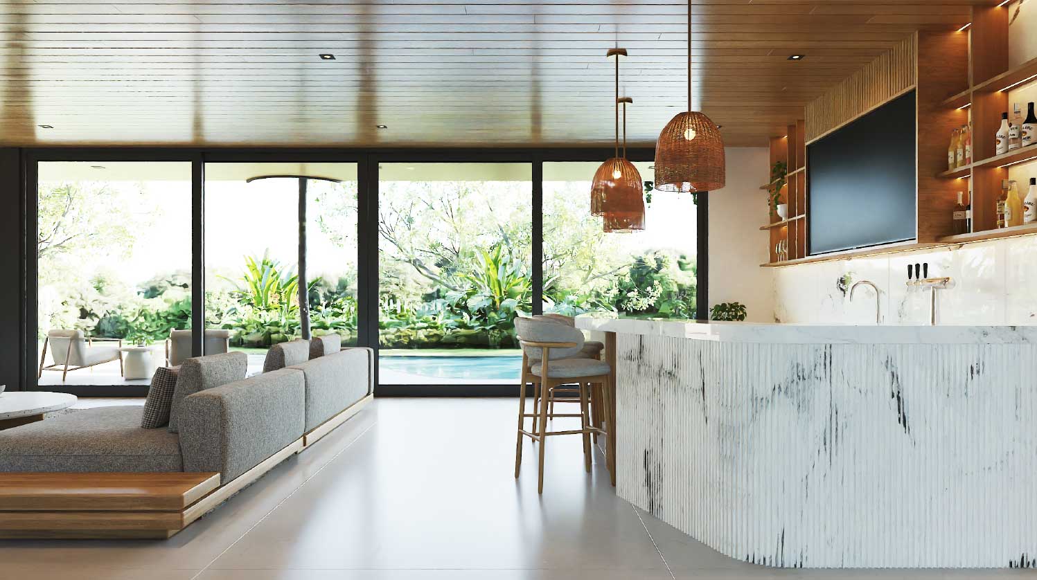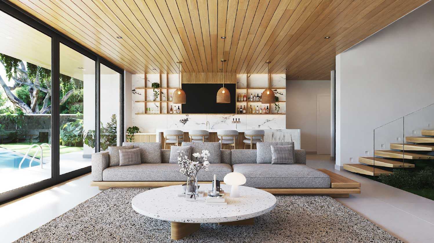 This stunning tropical masterpiece spans 14,080 sq. ft. on a 1,801 m² lot, featuring 8 spacious bedrooms and 8 luxurious bathrooms. The home is built for entertainment and comfort, with a dual kitchen, expansive bar area, private cinema, coffee and beverage station, and a dedicated TV lounge. Open living spaces, high-end finishes, and carefully crafted details ensure every moment in this home is infused with elegance and sophistication, making it perfect for family gatherings or hosting friends.