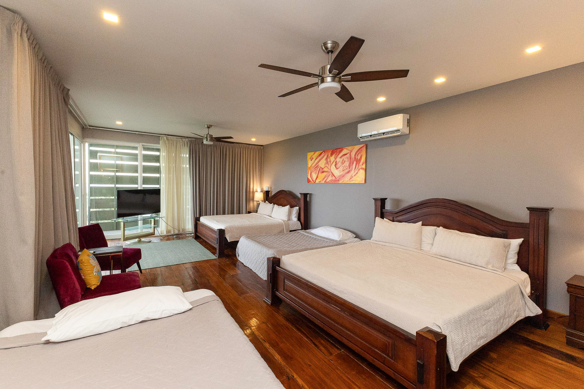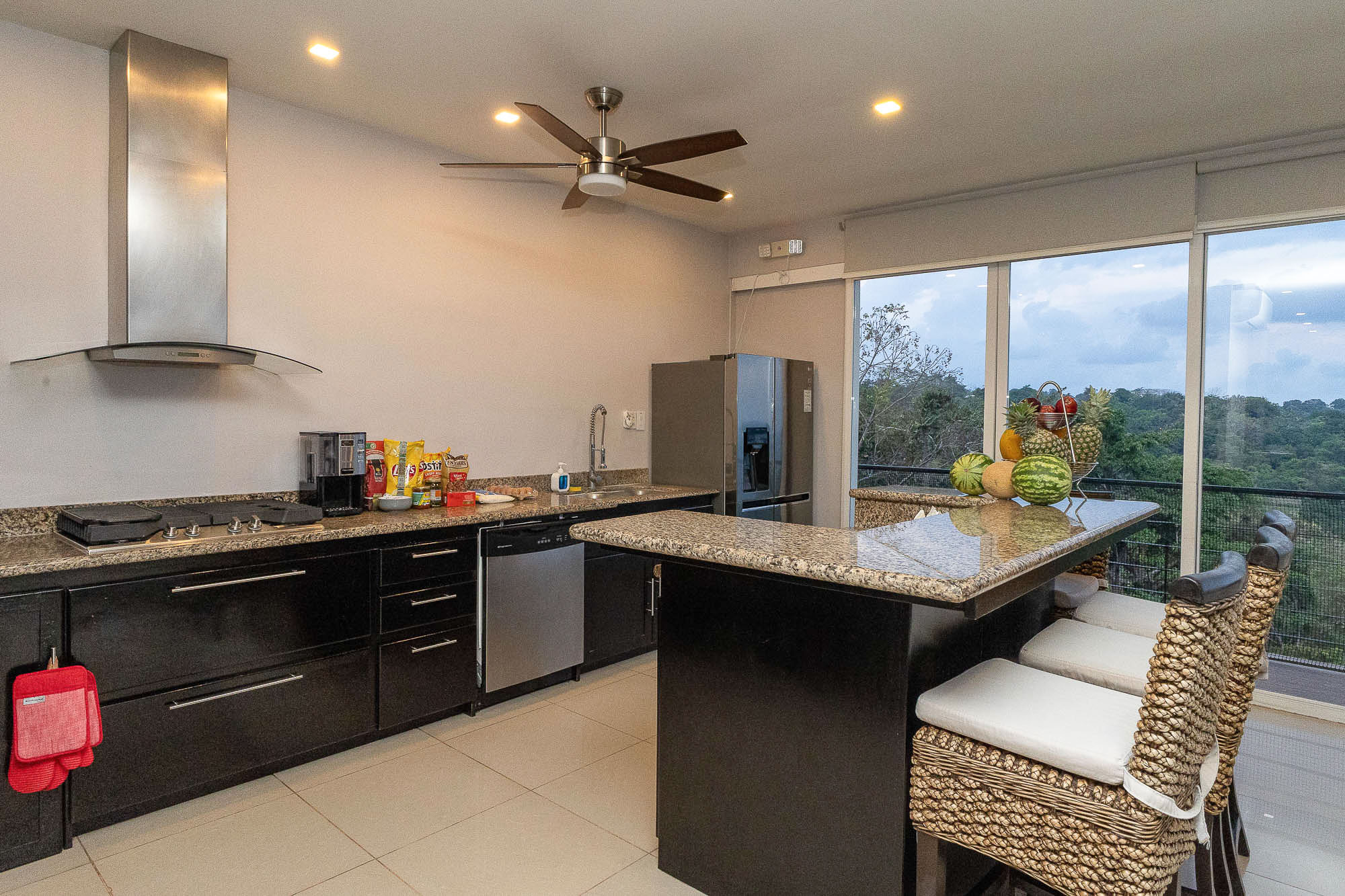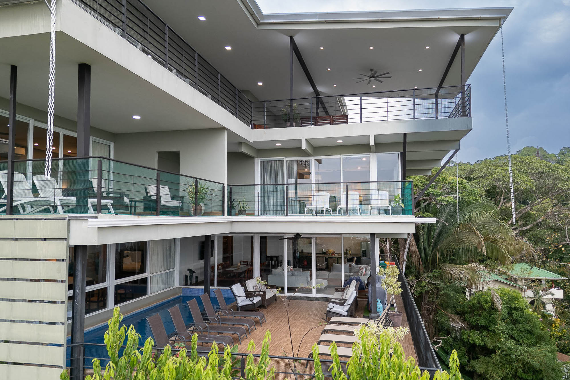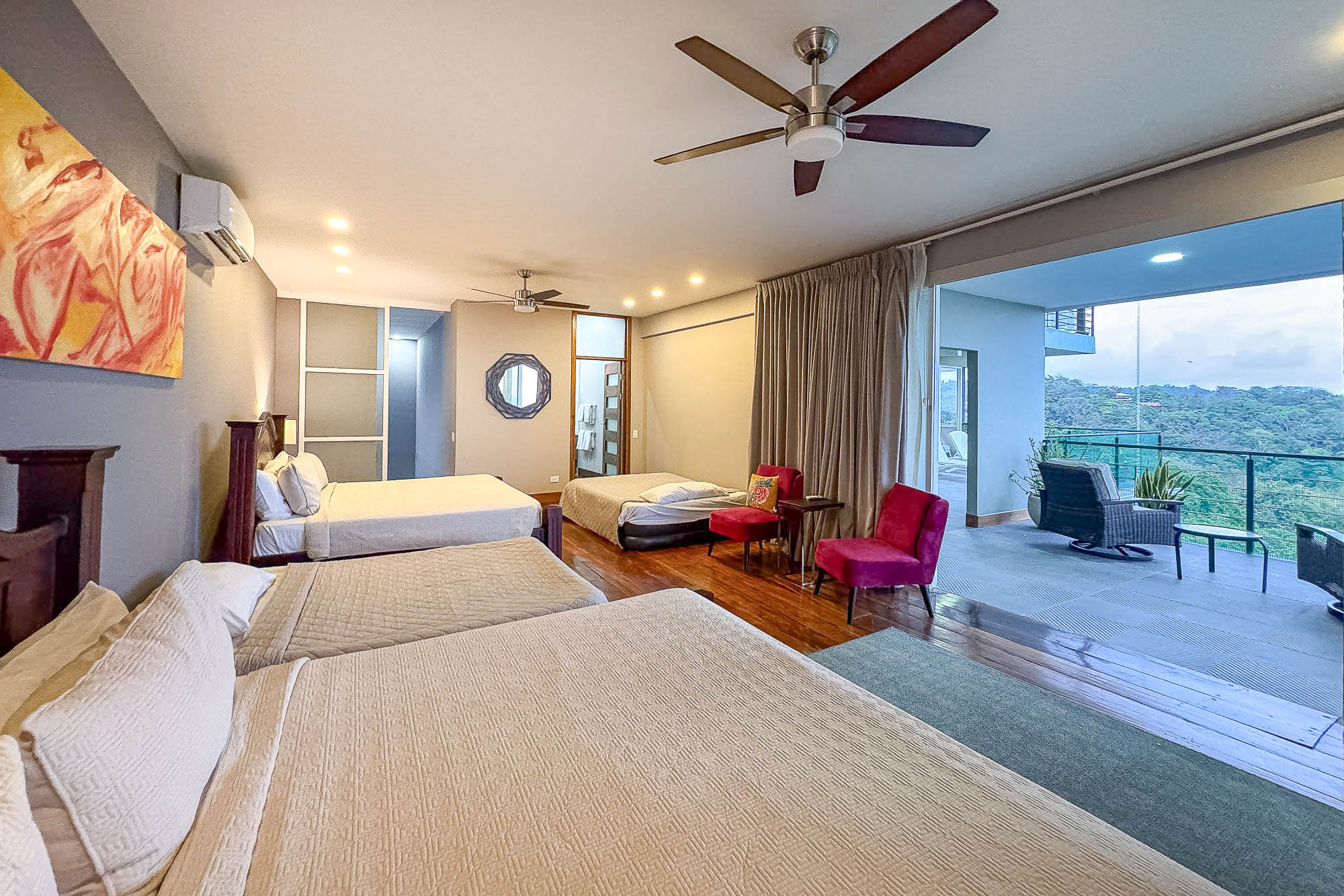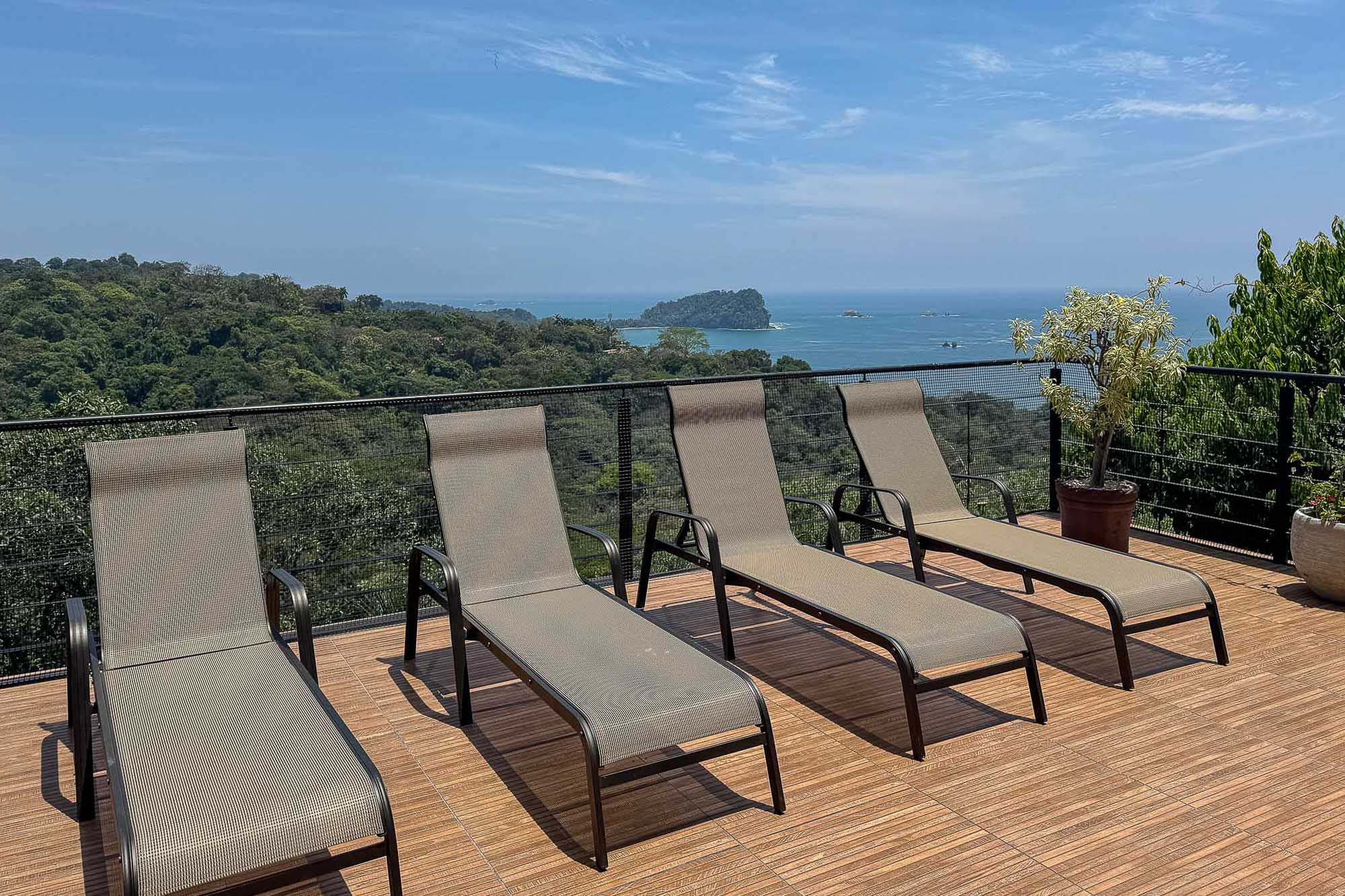 Upon entering, you'll be immediately captivated by the breathtaking views. The villa boasts large sliding glass doors, beautifully reconditioned hardwood floors, and a spacious, modern kitchen. Nestled in the heart of Manuel Antonio, this home is just a short walk from excellent restaurants and bars. It provides top-tier, flexible accommodations. The generous outdoor spaces further enhance the connection to the stunning natural surroundings.