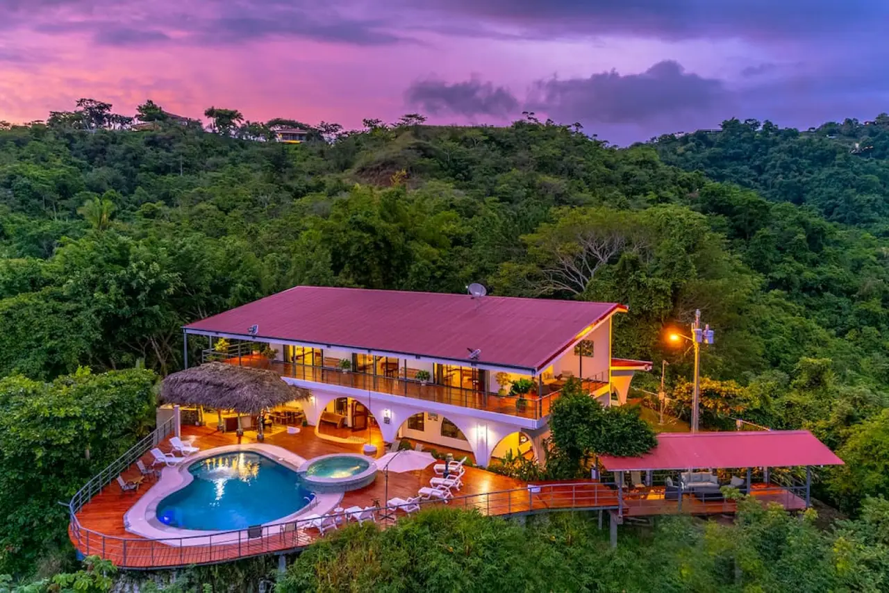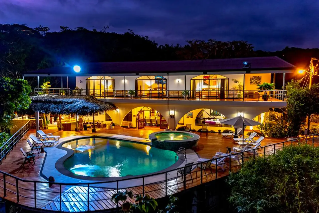 Discover this extraordinary investment opportunity in Playa Hermosa! This stunning estate features a spacious 6-bedroom, 6-bathroom main home with breathtaking panoramic ocean views, a private pool, and a two-car garage. Additionally, the property includes a 2-bedroom, 1-bathroom manager’s home, offering convenience and flexibility for on-site staff or additional rental income.