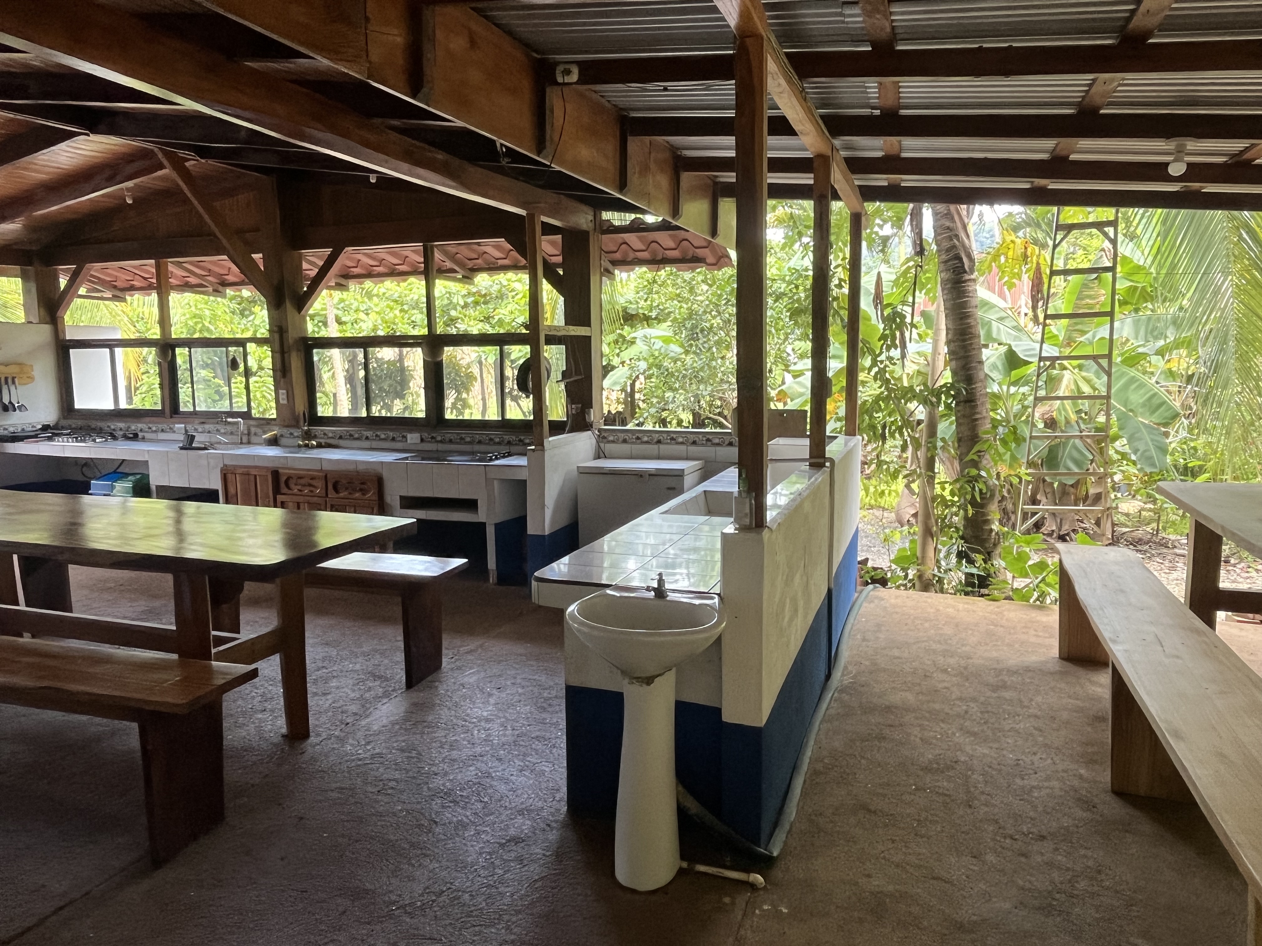 The property also has a large ranch that serves as a communal kitchen and dining area, complete with two cooking stations and a freezer, making it suitable for larger groups.