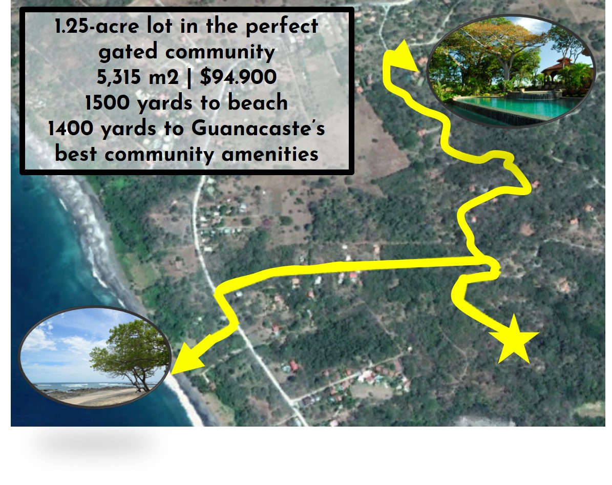 Lot #68, measuring 1.3 acres, is located very close to the community's beach access trail - the distance to the sand is just under a mile - on a tranquil spur off the main road. It has enormous flat spaces for construction, with the potential for lovely jungle views from a second or third-story terrace. Its motivated seller has lowered the price and is willing to hear any reasonable offers.