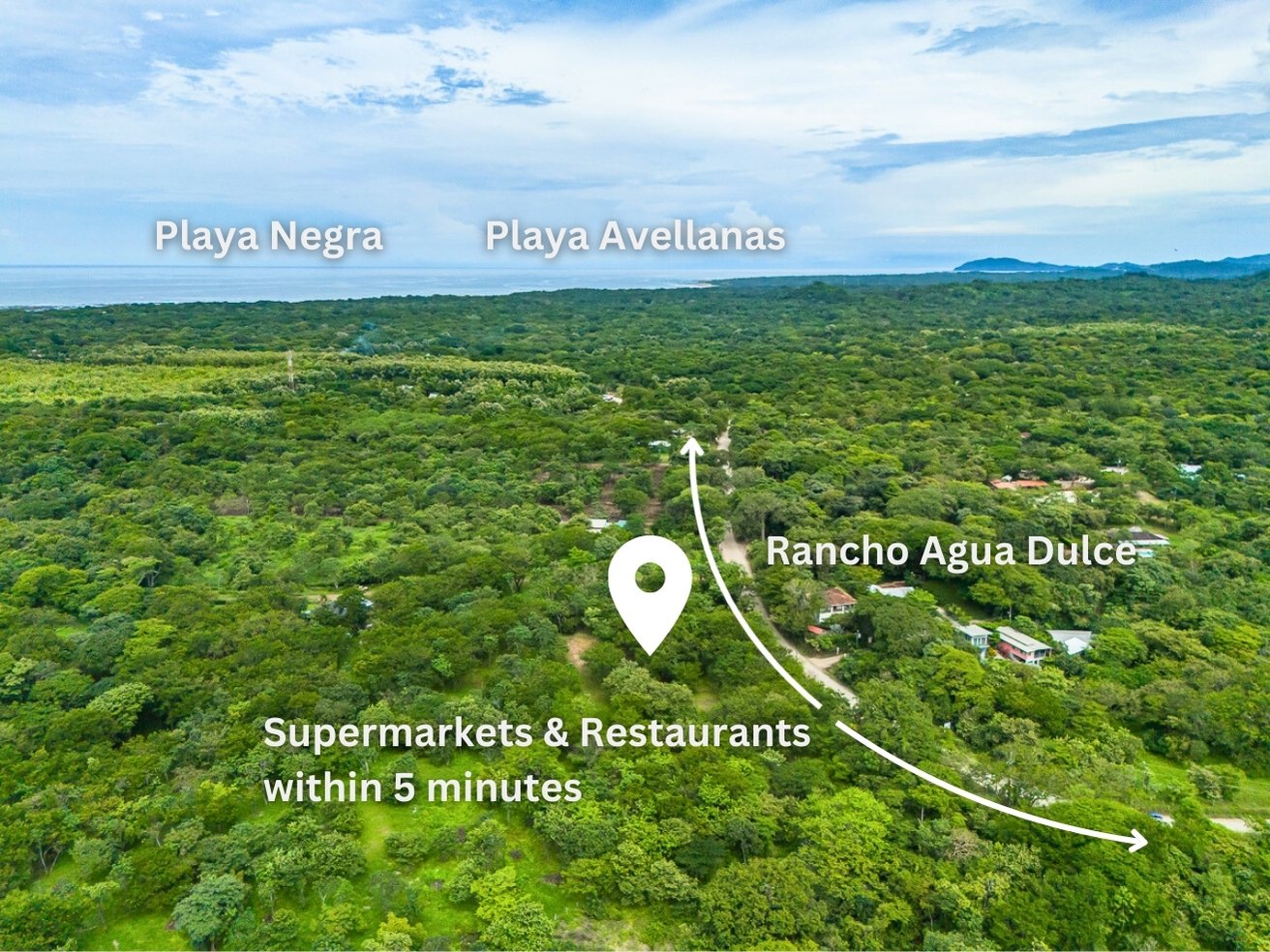 Playa Negra "downtown" is 1.5km and the lots are located on the naturally developing stretch of this beach town and only 700m from the most popular Mini Supermarket and Skatepark.